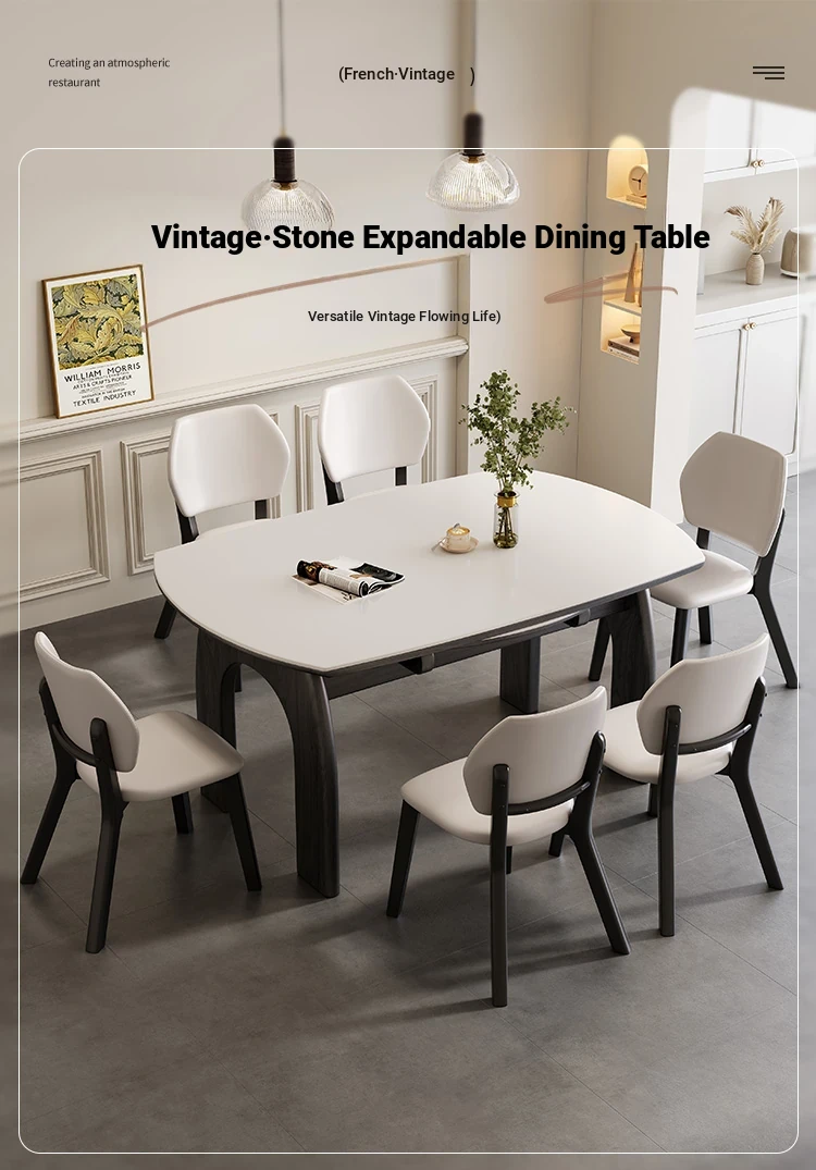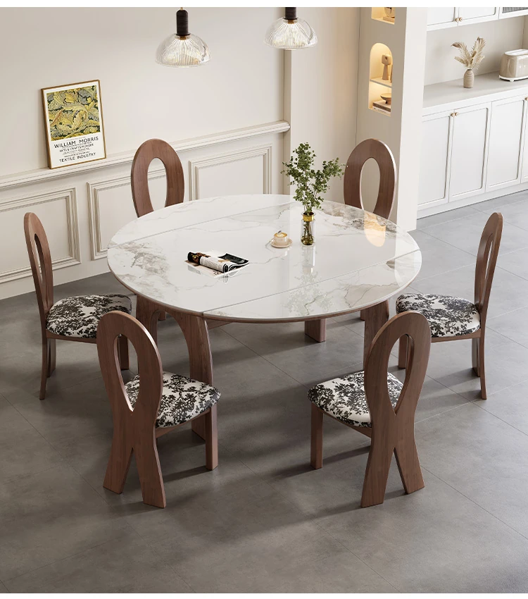Solid Wood Rock plate telescopic dining table + key chair * 6