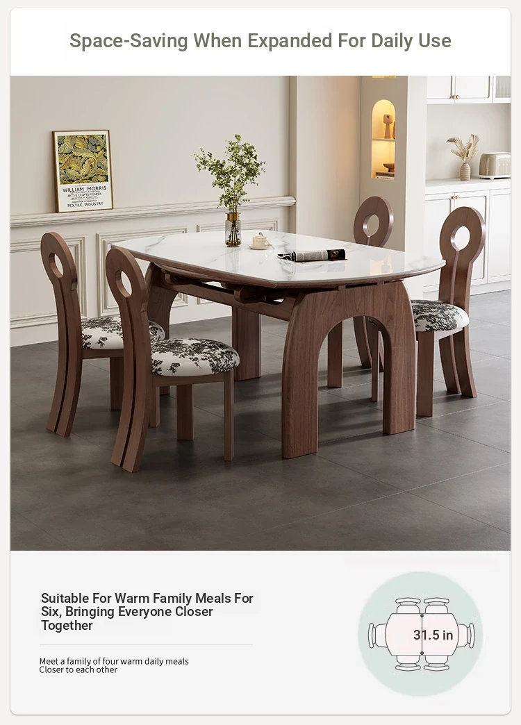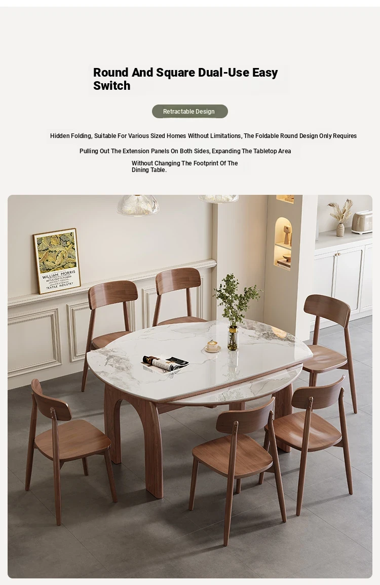 Solid Wood Rock plate retractable table + Apple chair * 6