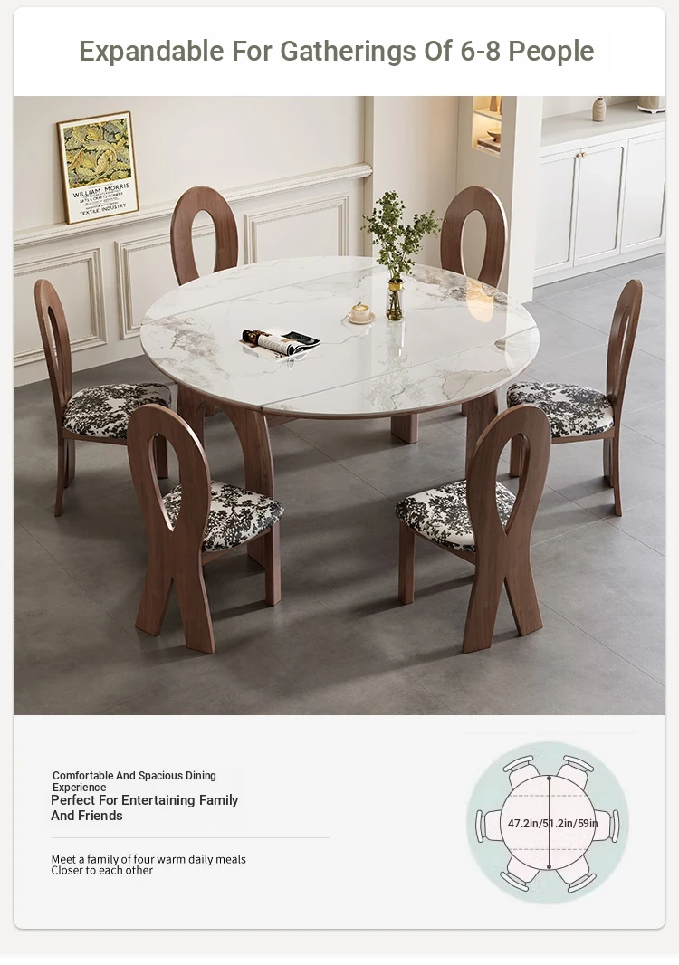 Retro Solid Wood Expandable Folding Dining Table and Chair Set - Versatile Round and Square Design for Small Spaces, Perfect for Dining and Entertaining