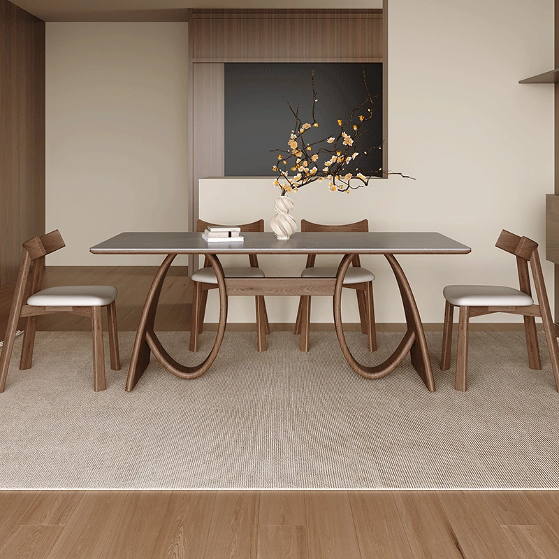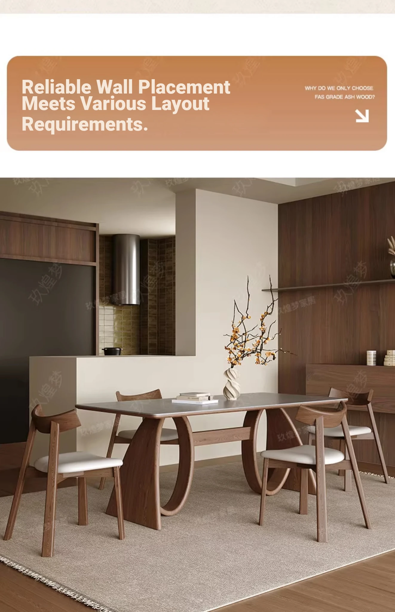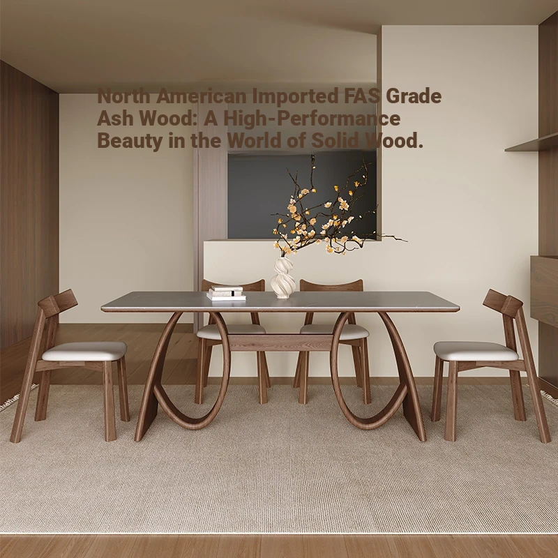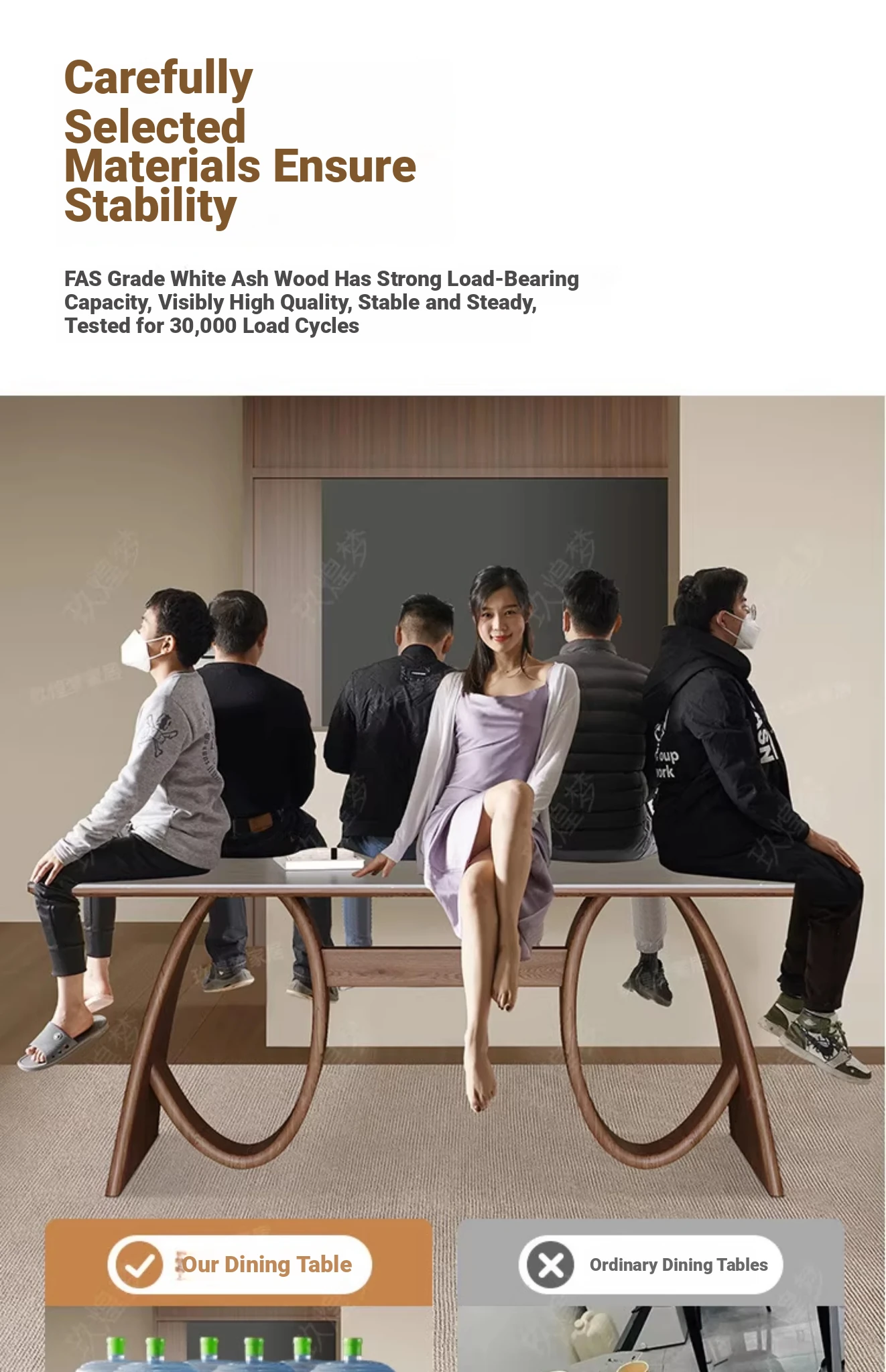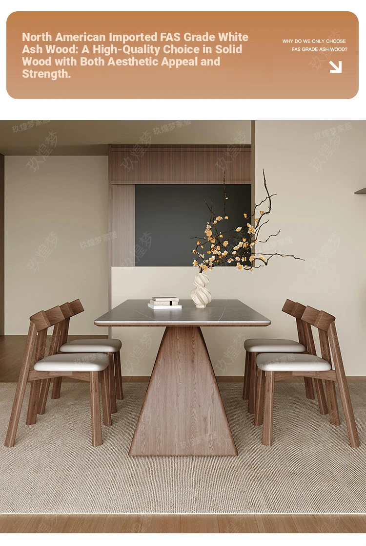 Scandinavian Minimalist Solid Wood Dining Table with Live Edge - Modern Rectangular Walnut and Ash Home Dining Table for Stylish Meals