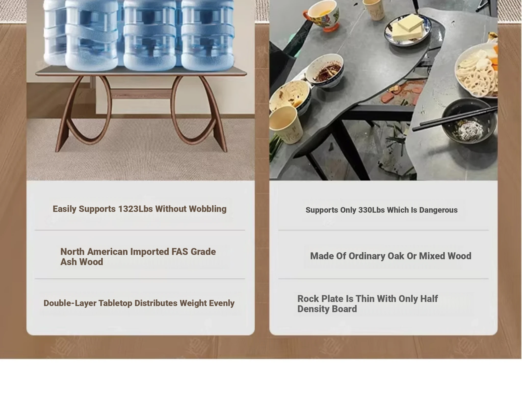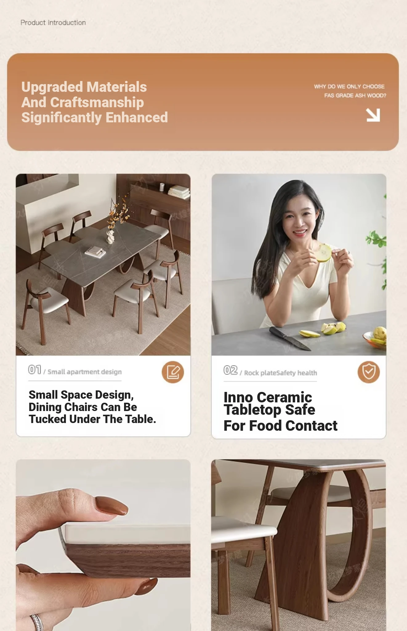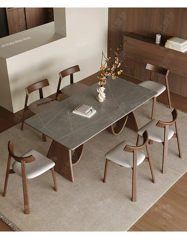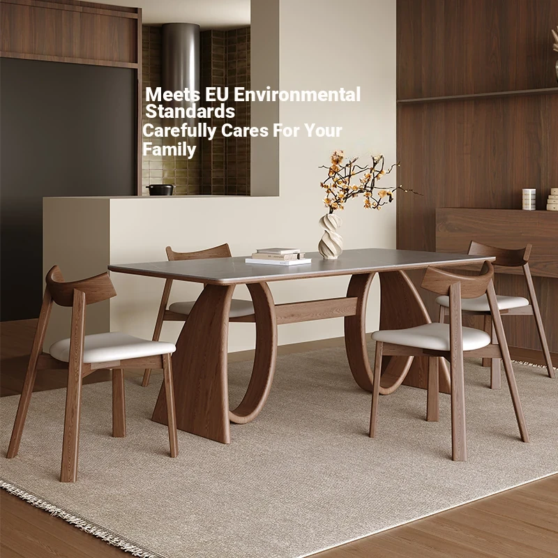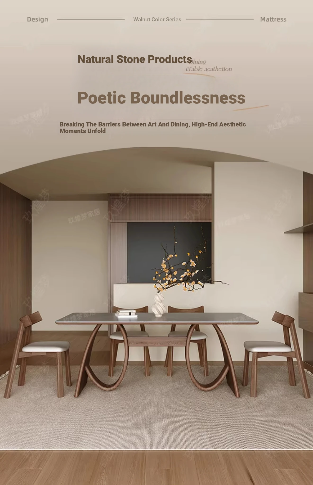 Scandinavian Minimalist Solid Wood Dining Table with Live Edge - Modern Rectangular Walnut and Ash Home Dining Table for Stylish Meals