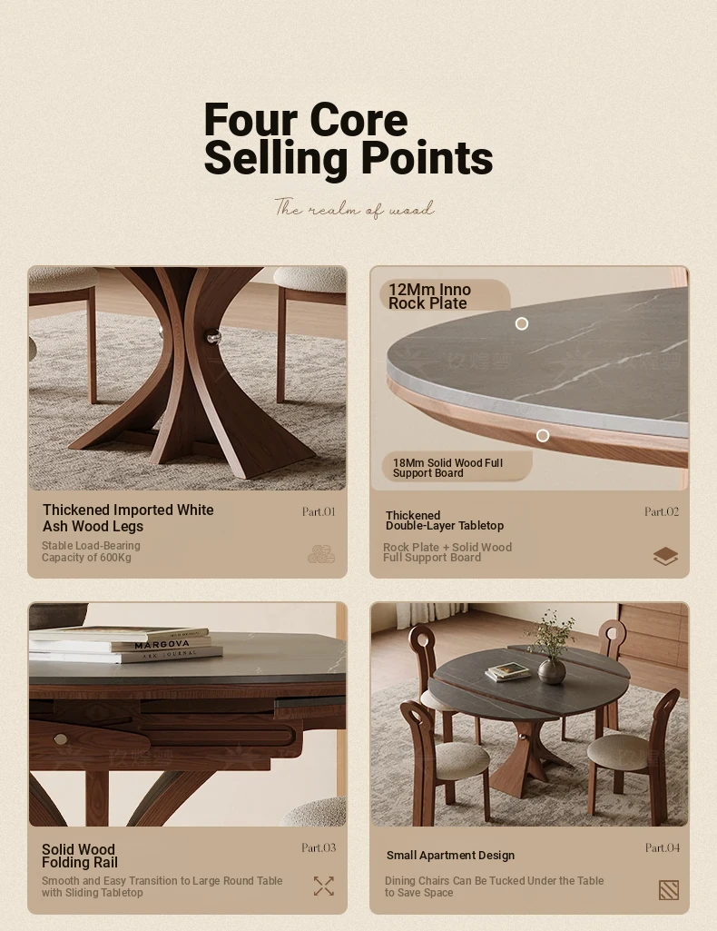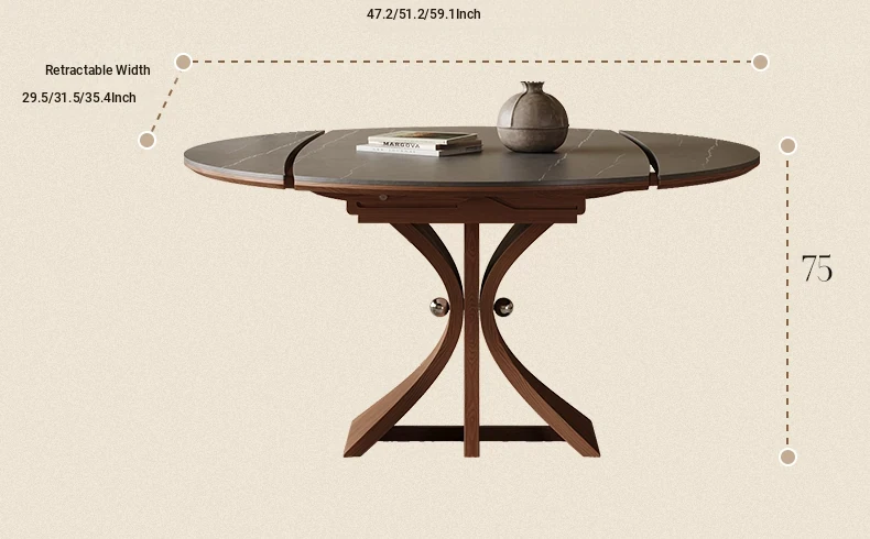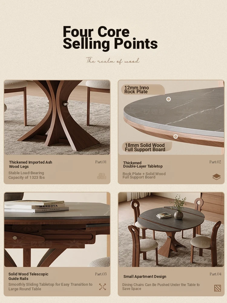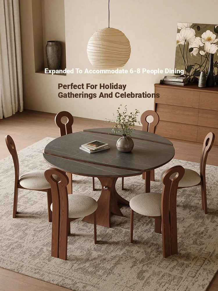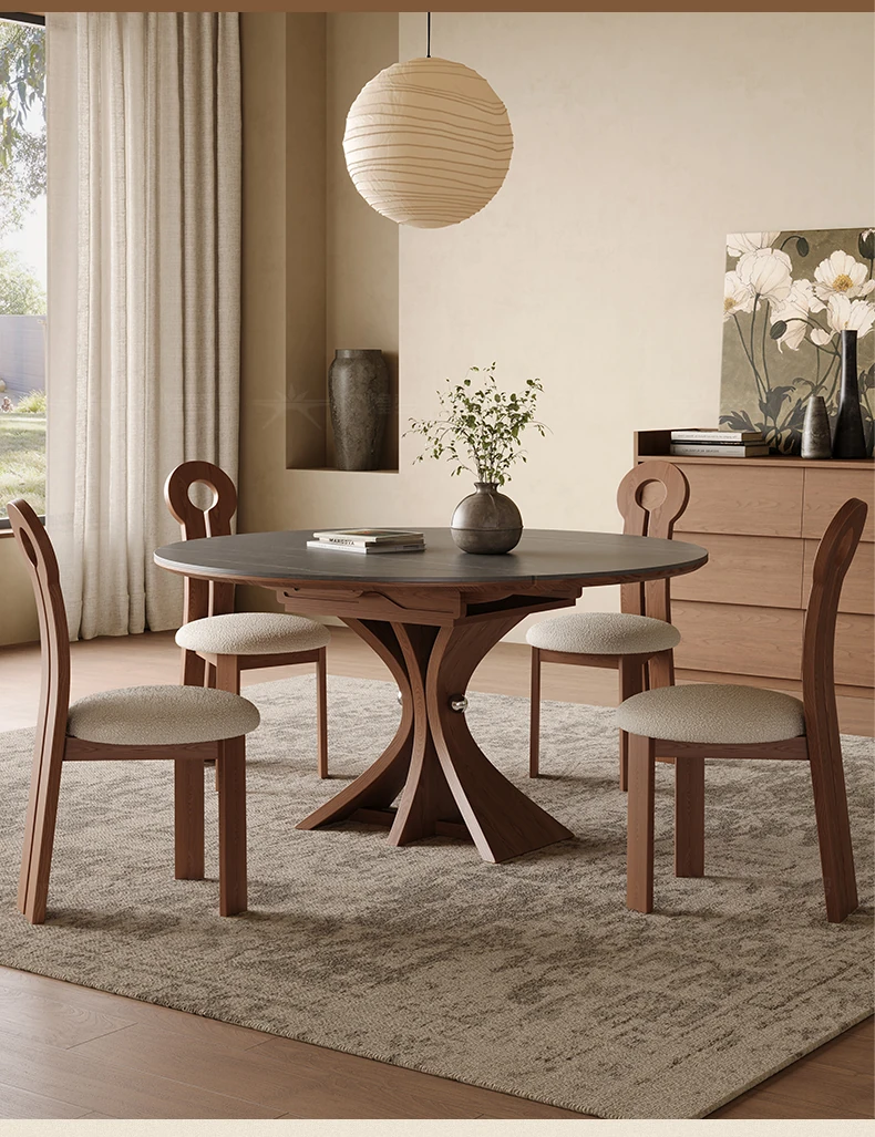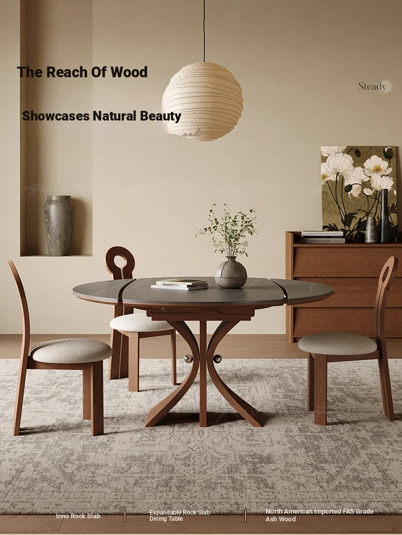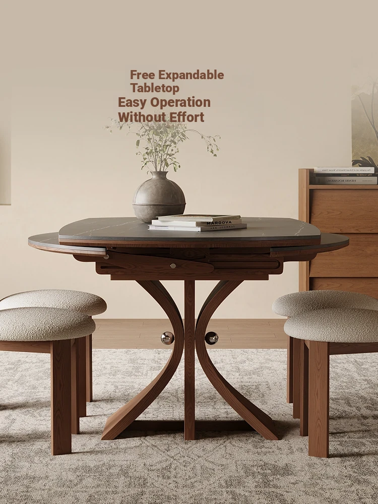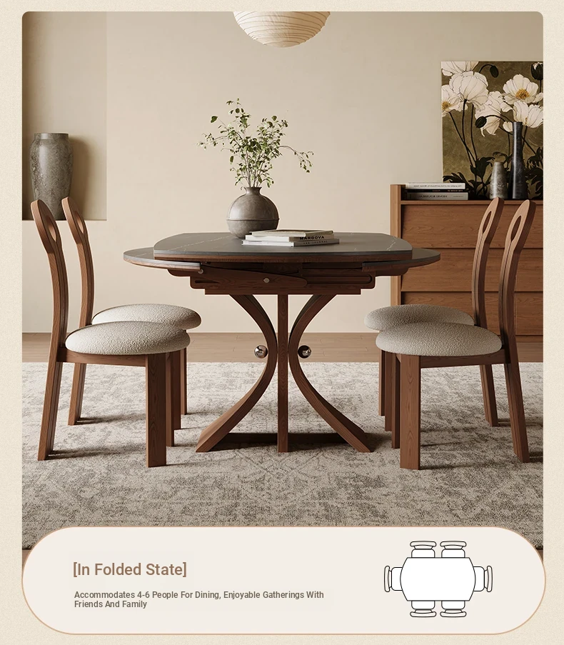 Scandinavian Minimalist Solid Wood Expandable Round Dining Table - Space-Saving, Foldable Design for Small Homes - Versatile Square & Round Shape by Designer