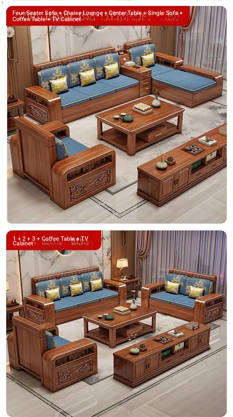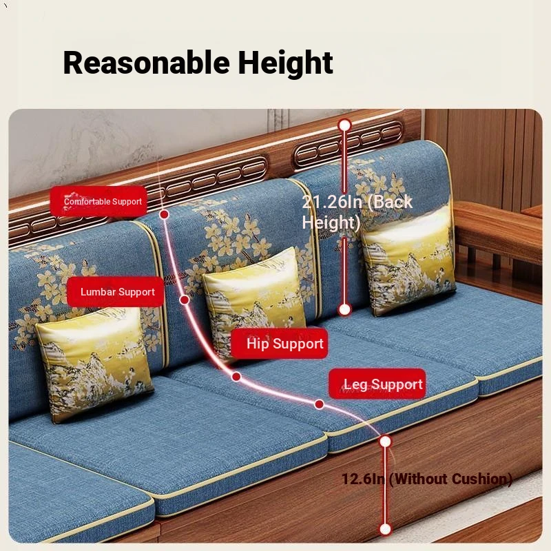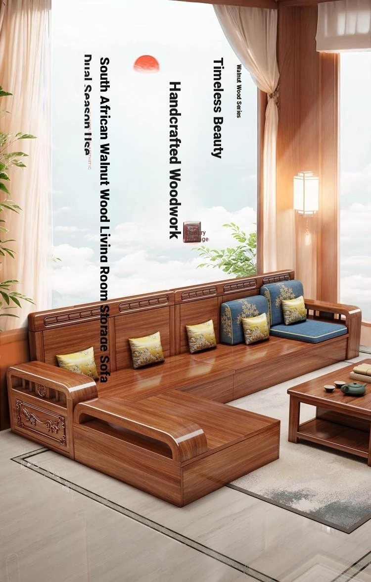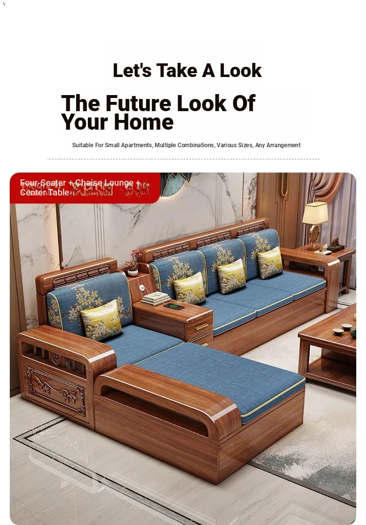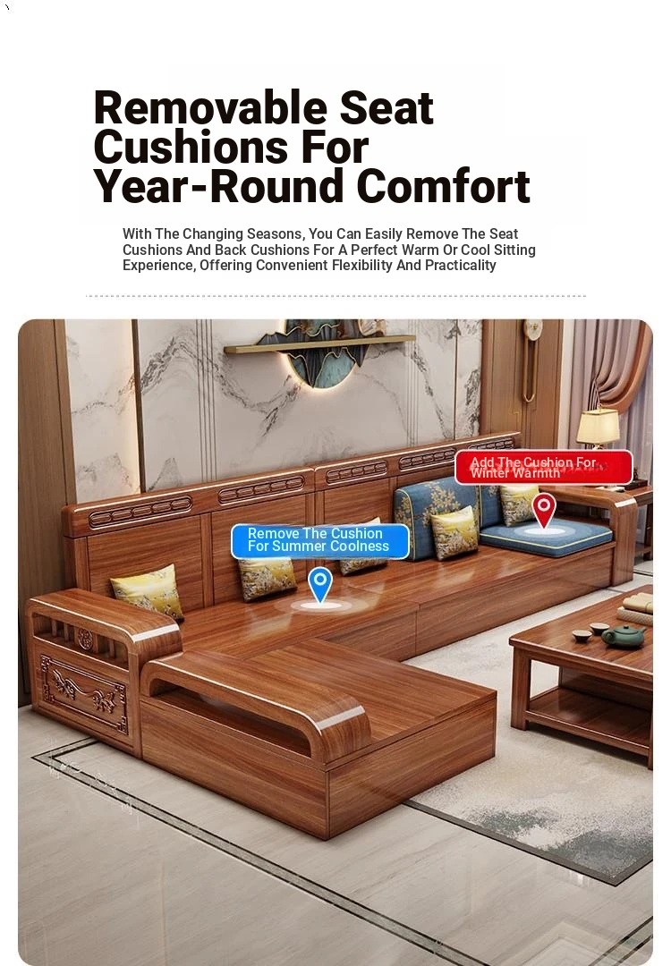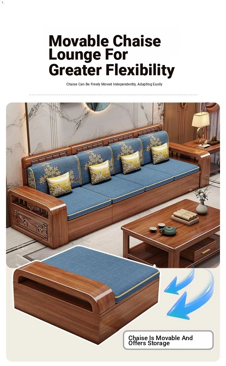 Stylish Chinese Solid Wood Sofa for Small Living Rooms - Removable and Washable, Versatile Chaise Lounge Corner Set with Latex for Year-Round Comfort, Crafted with Advanced Fabric Technology