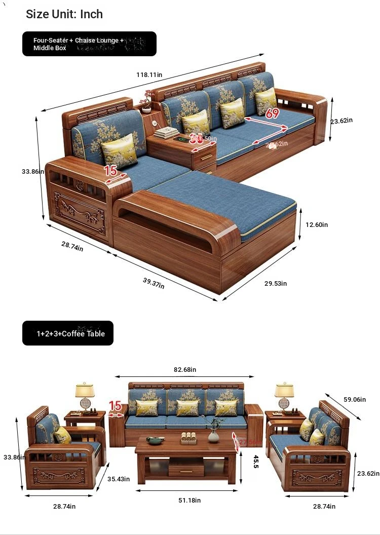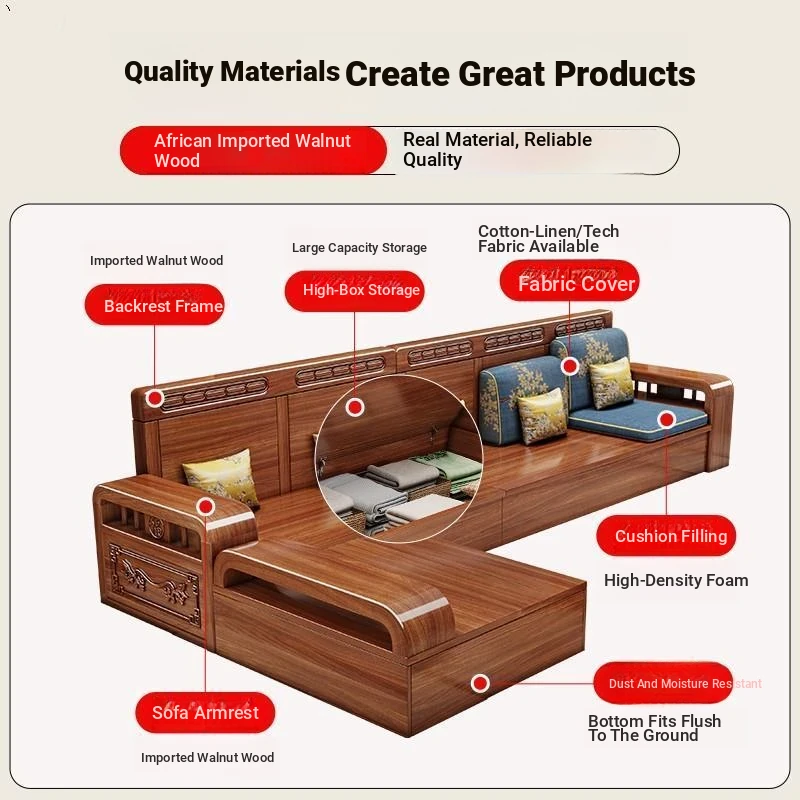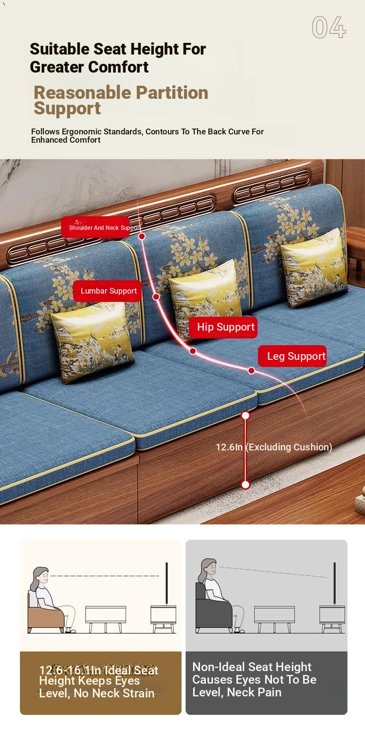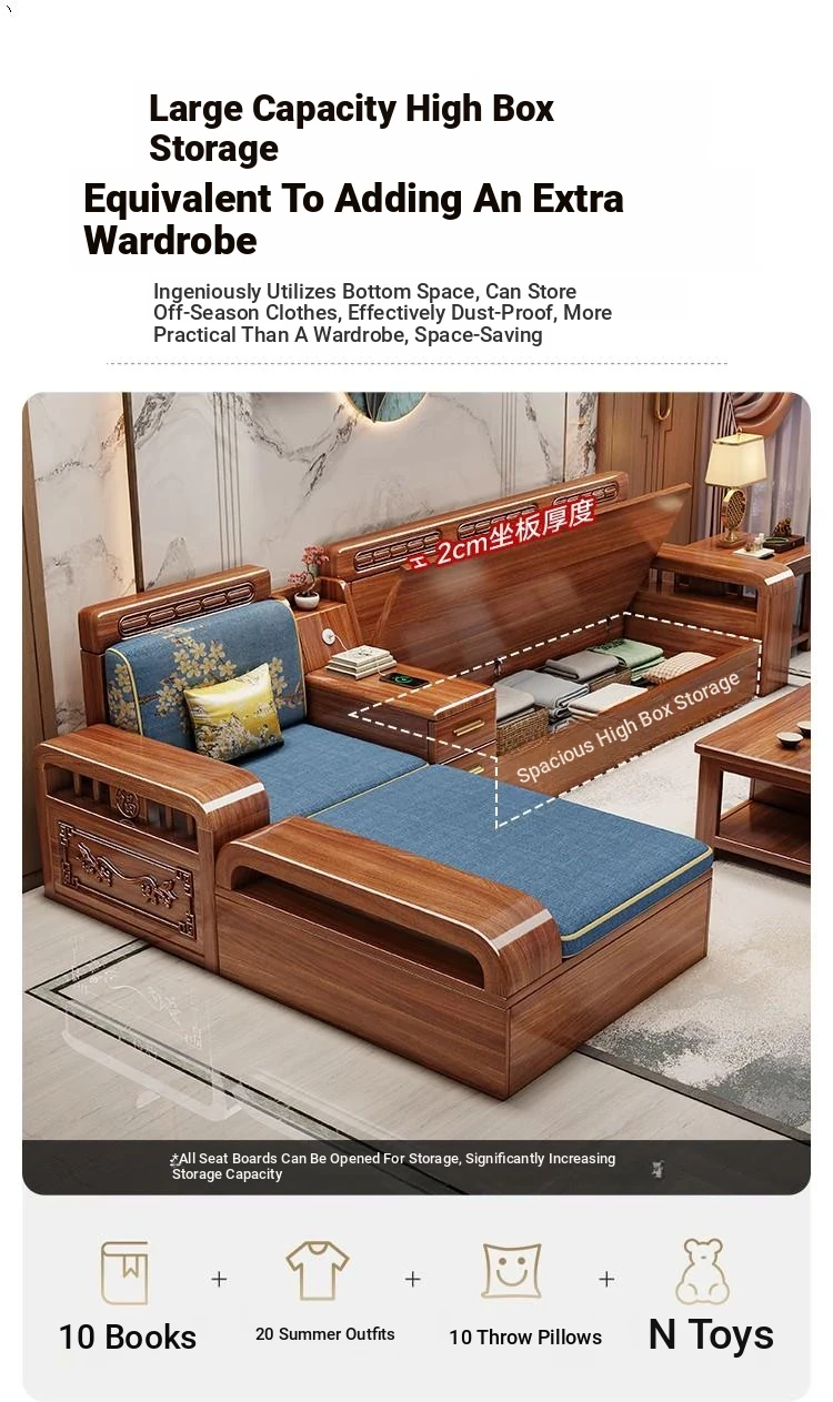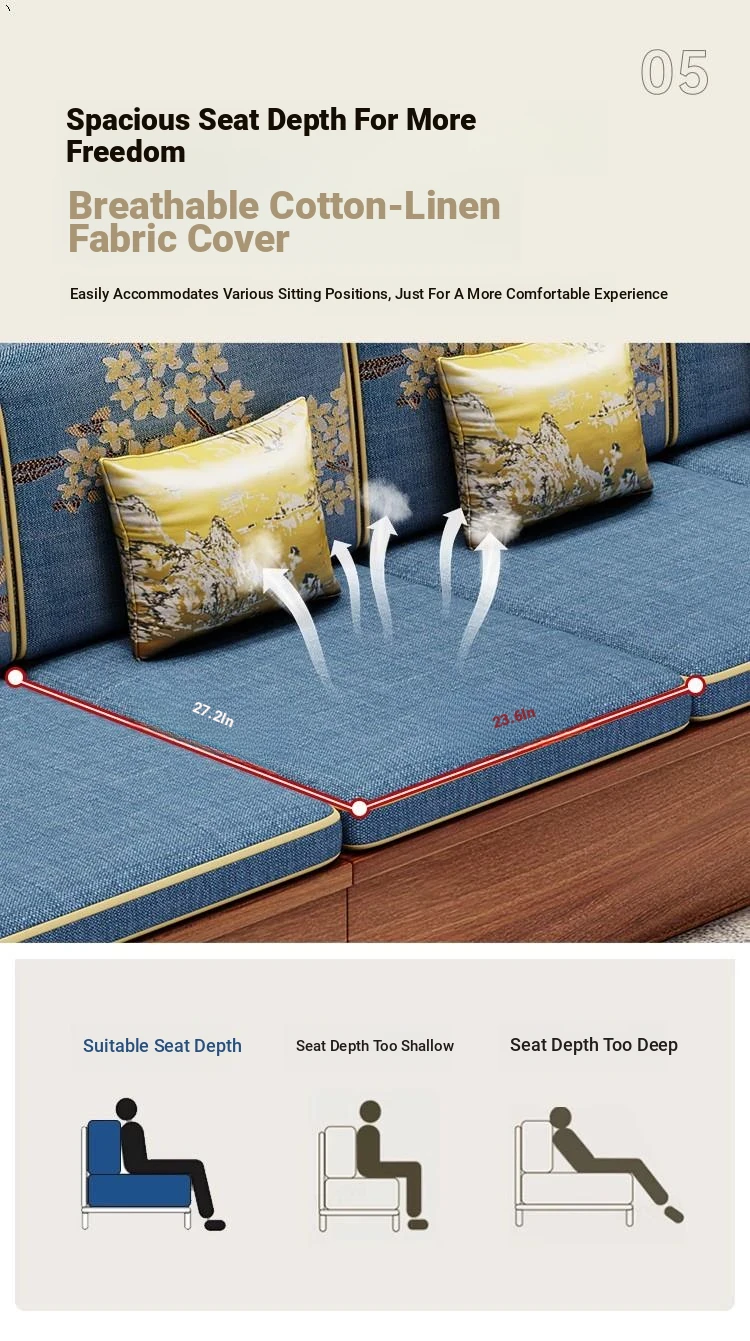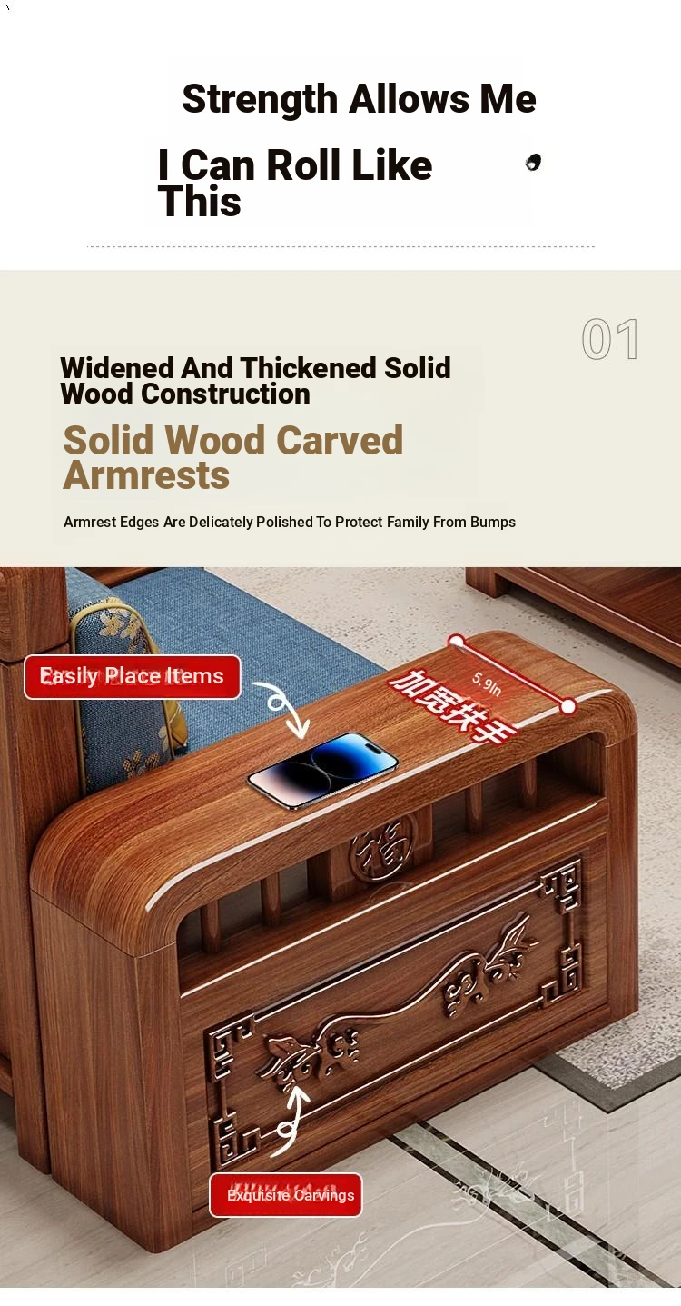 Stylish Chinese Solid Wood Sofa for Small Living Rooms - Removable and Washable, Versatile Chaise Lounge Corner Set with Latex for Year-Round Comfort, Crafted with Advanced Fabric Technology
