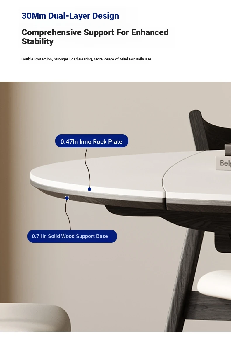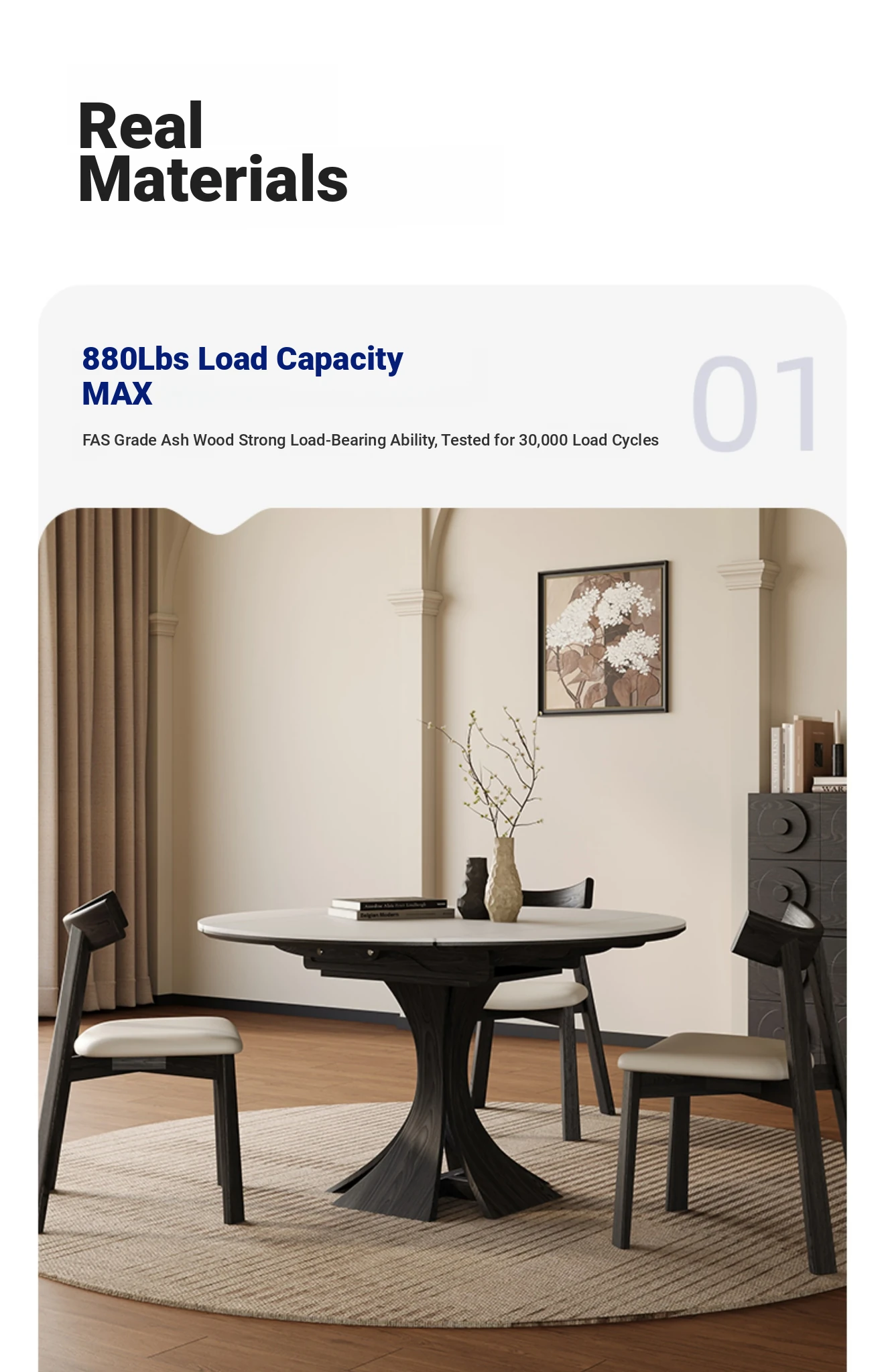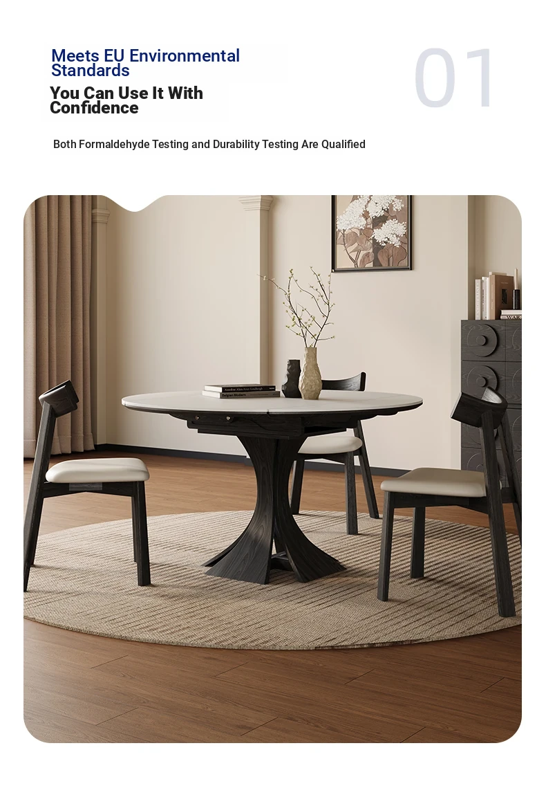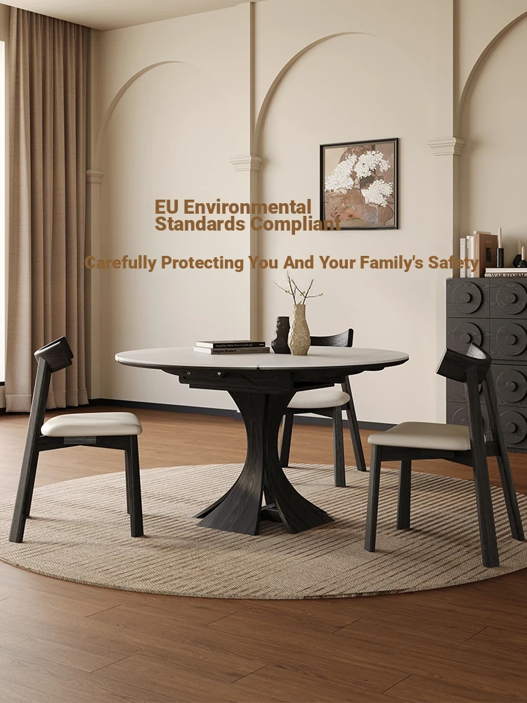 French Square Stone Dining Table - Versatile Round and Square Design, Ideal for Small Spaces, Crafted from Solid Wood, Bauhaus-Inspired Foldable Dining Table for Modern Homes.