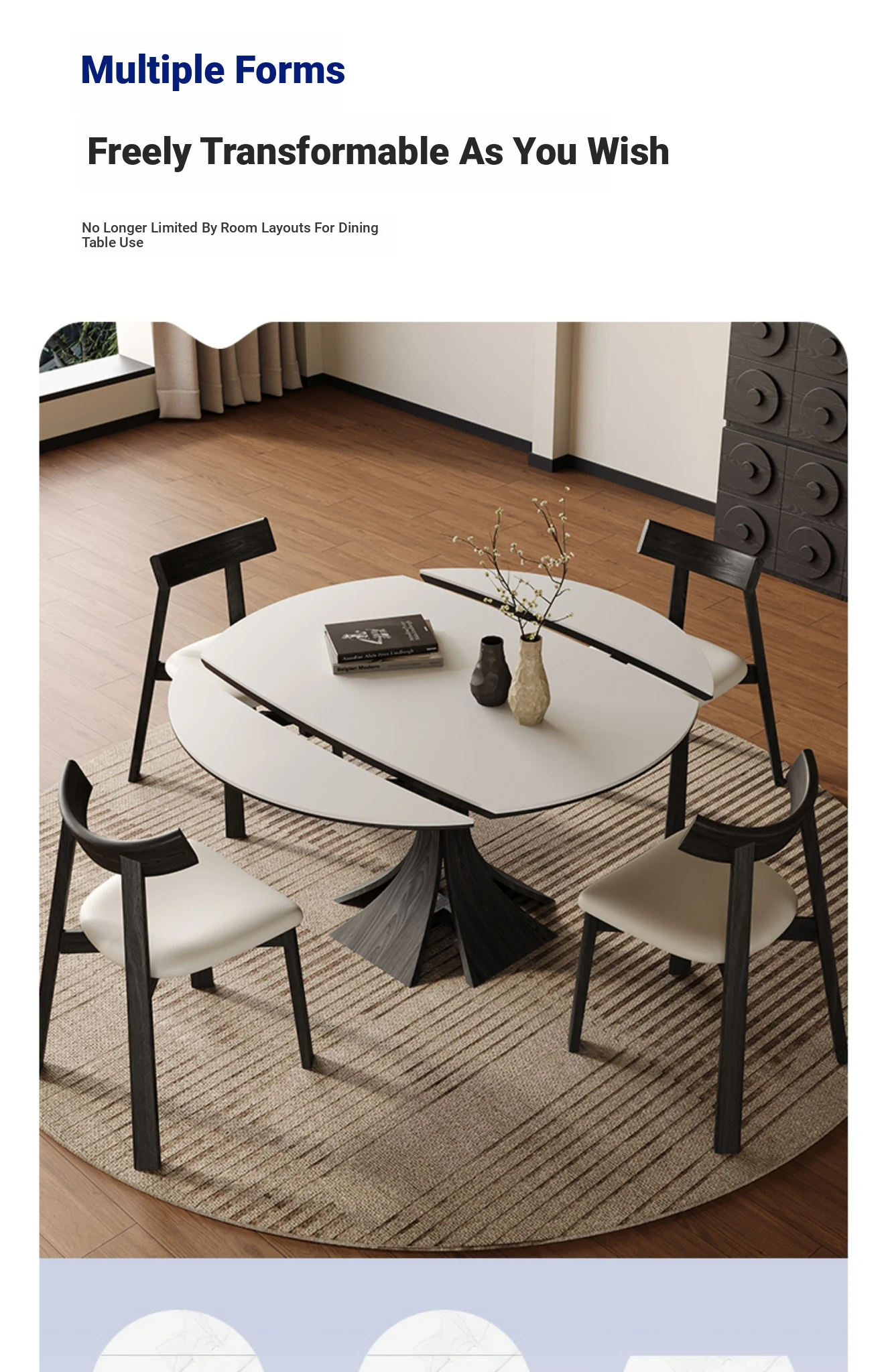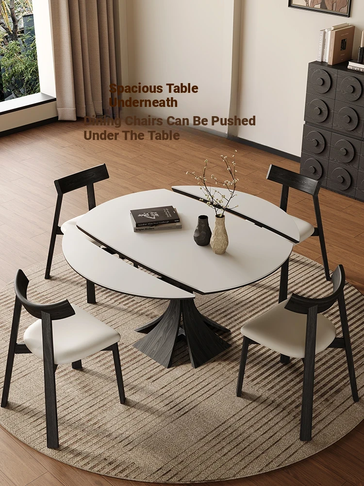 Wabi-Sabi Style Foldable and Expandable Round Table - Versatile Square and Round Design for Small Spaces, Perfect for Home Use, Designer Dining Table