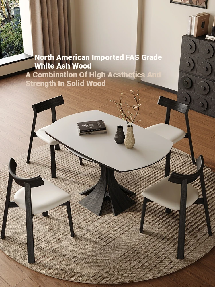 Wabi-Sabi Style Solid Wood Dining Table and Chair Set - Modern Minimalist Design in Ash Wood and Walnut Color for Home Use, 2025 Edition