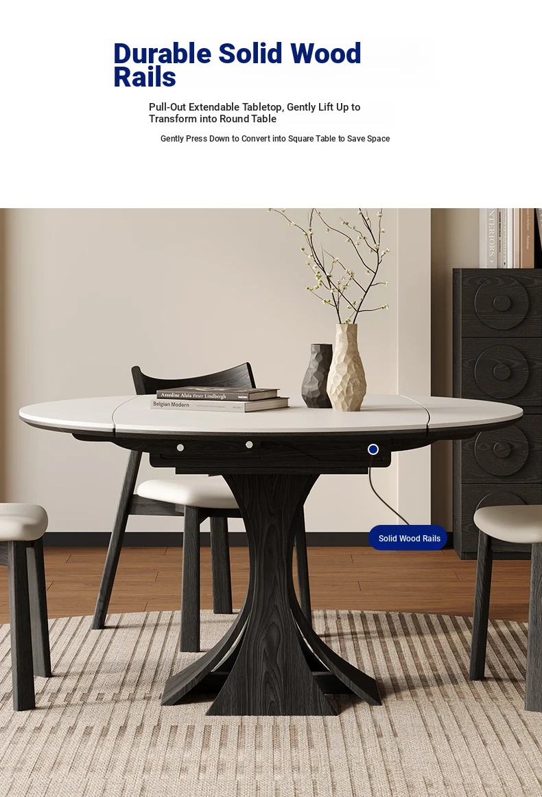 Vintage Solid Wood Expandable Dining Table - Modern Designer Dual-Use Round and Square Folding Table for Small Homes