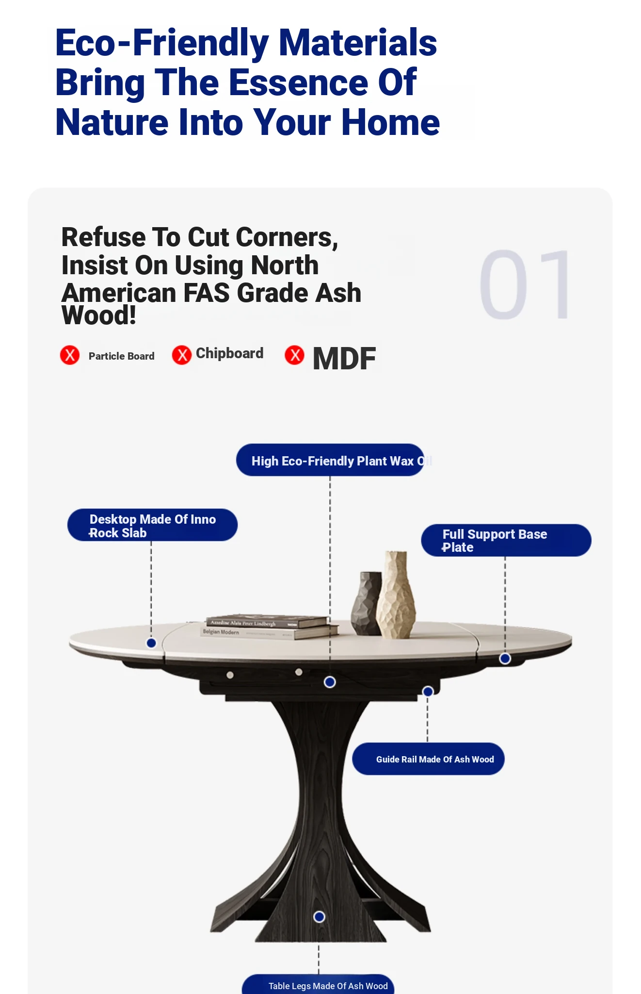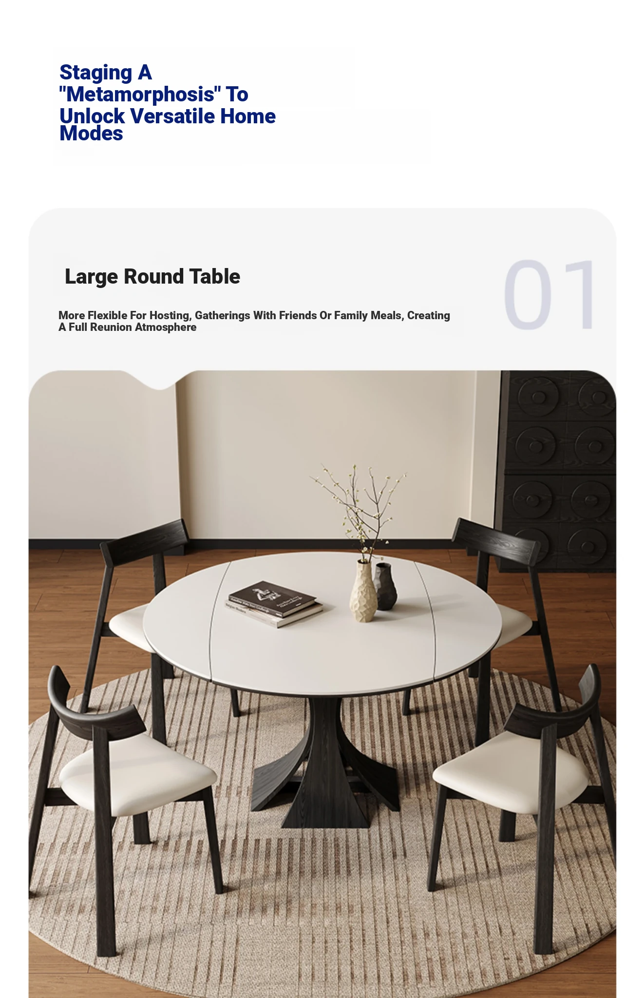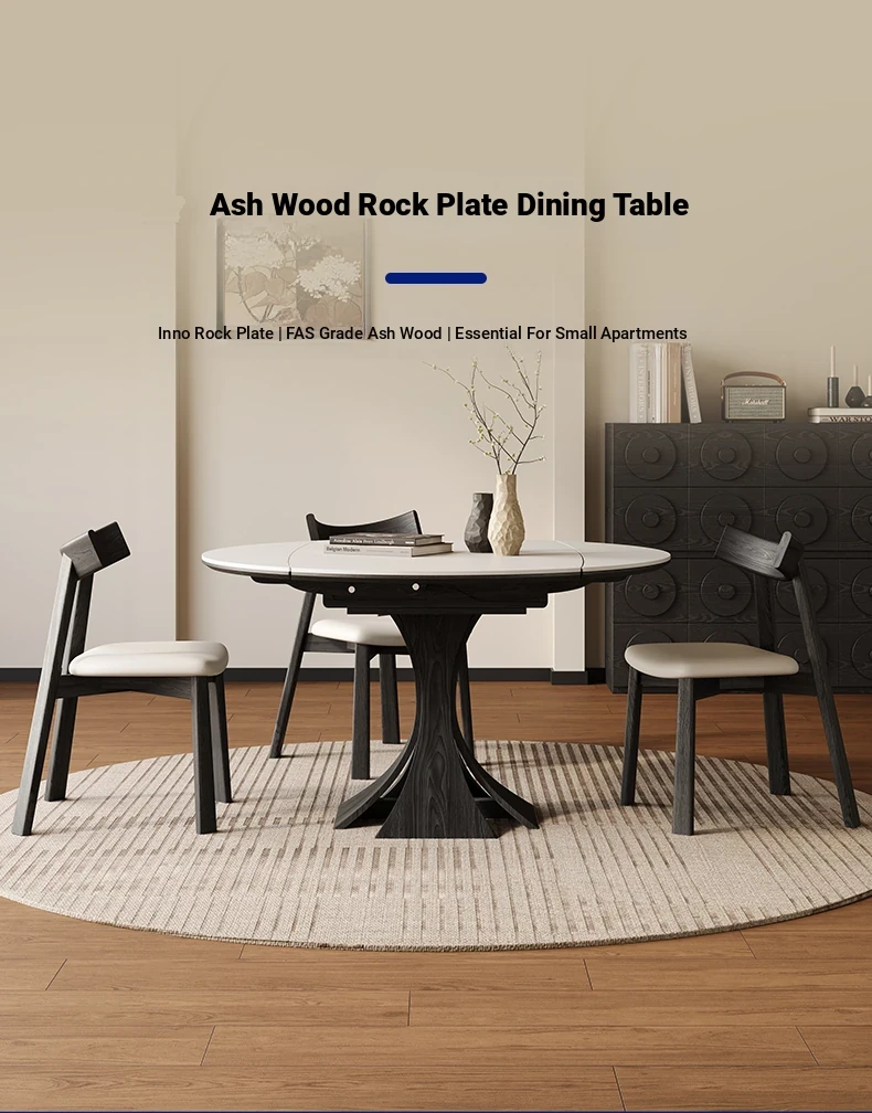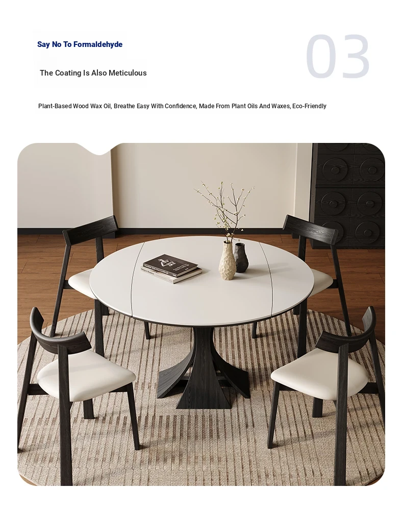 Nordic Expandable Round Dining Table - Versatile and Space-Saving Design for Small Homes, Features Foldable Solid Wood Construction, Perfect for Any Dining Experience.