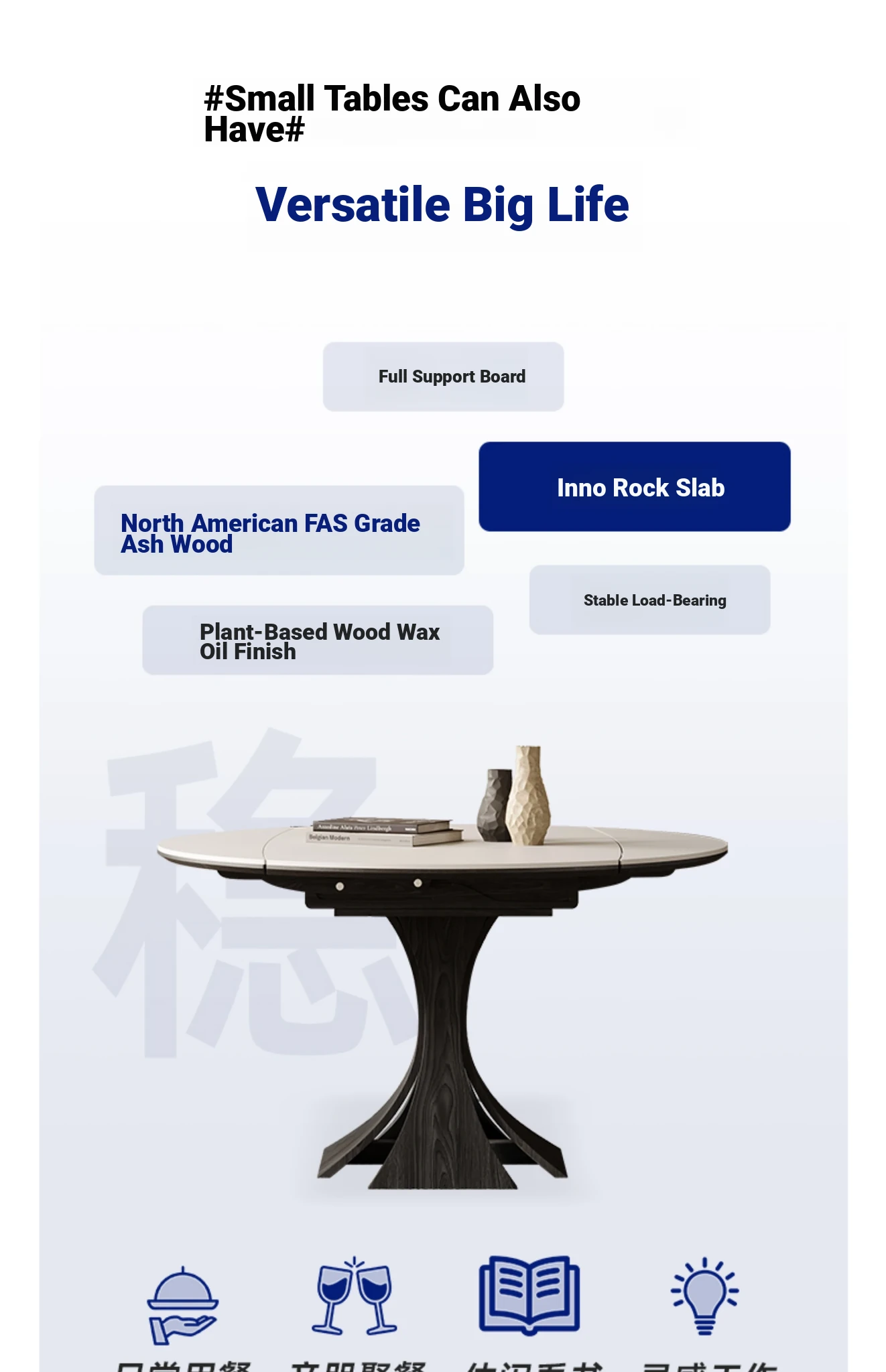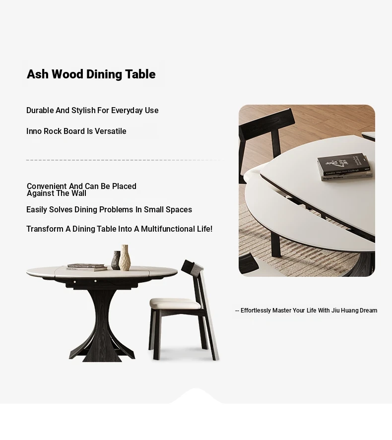 [Free Shipping to Hong Kong] Modern Minimalist Solid Wood Folding Expandable Dining Table - Versatile Design for Small Spaces, Perfect for Stylish Homes