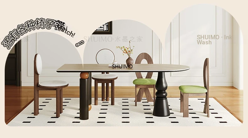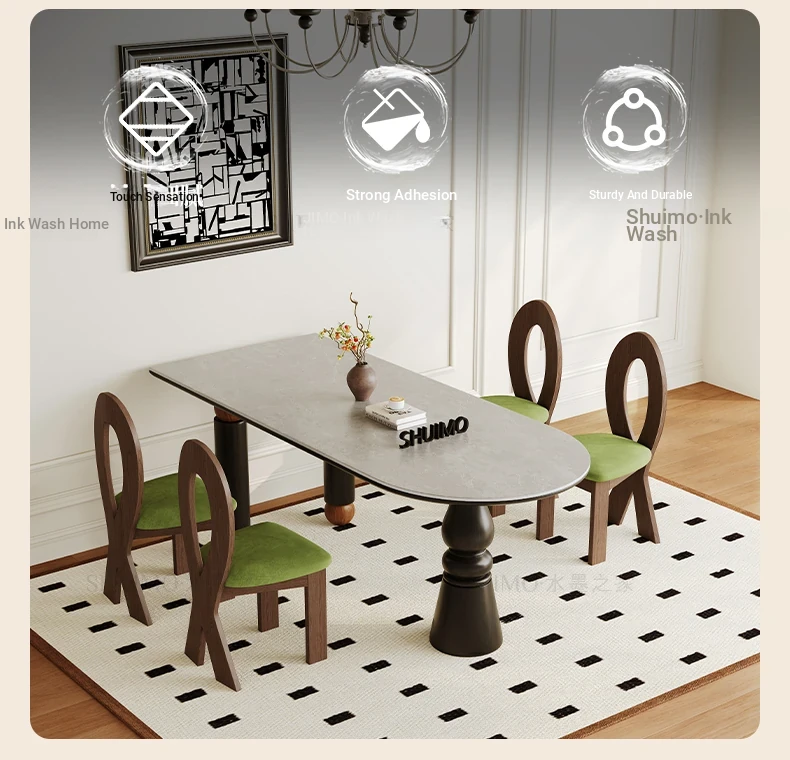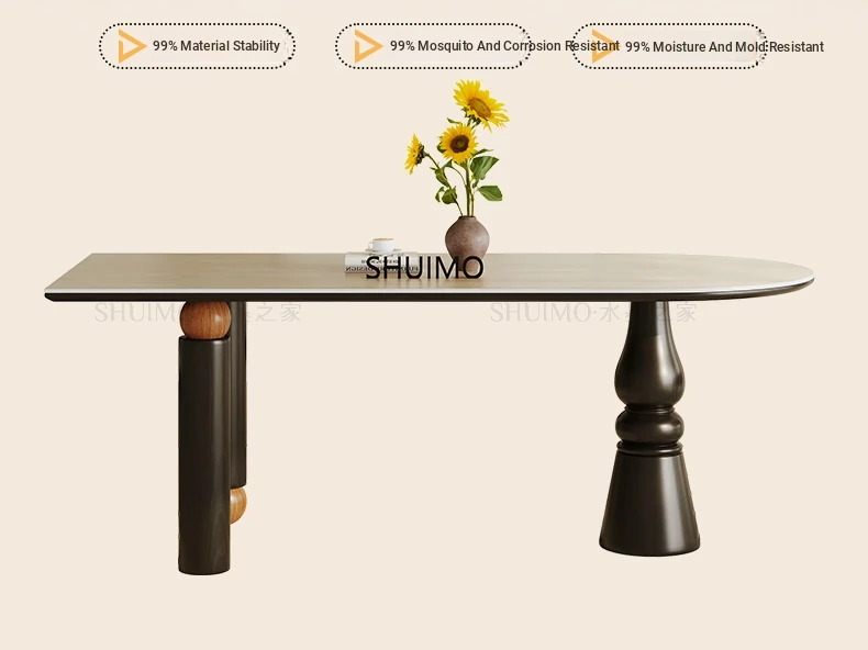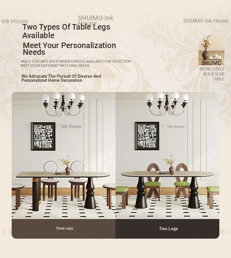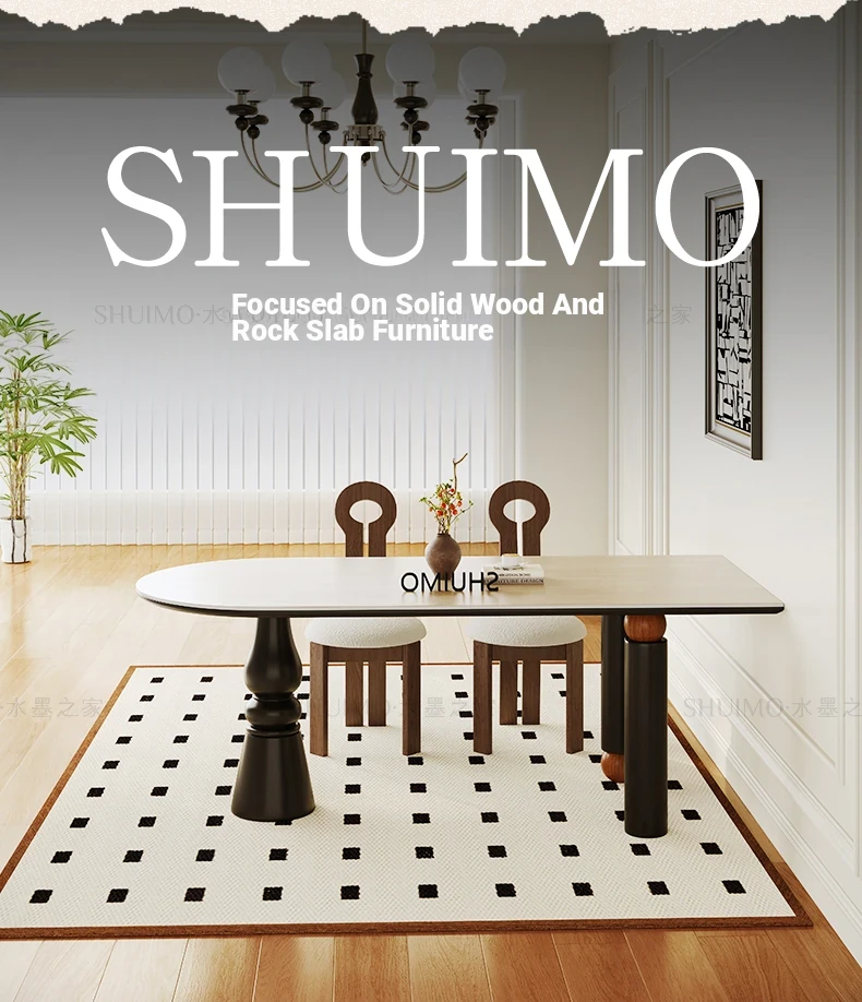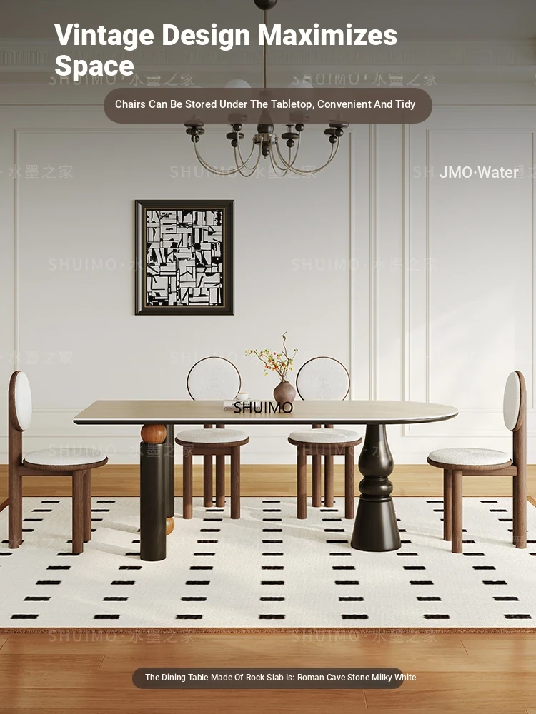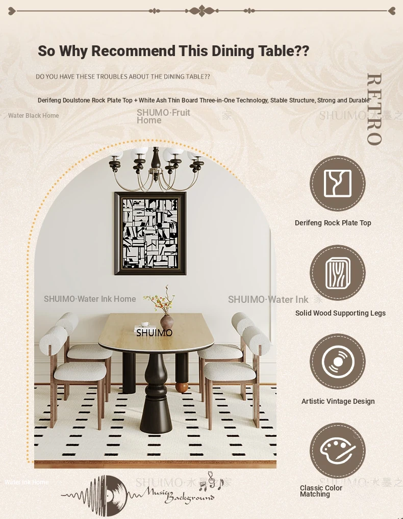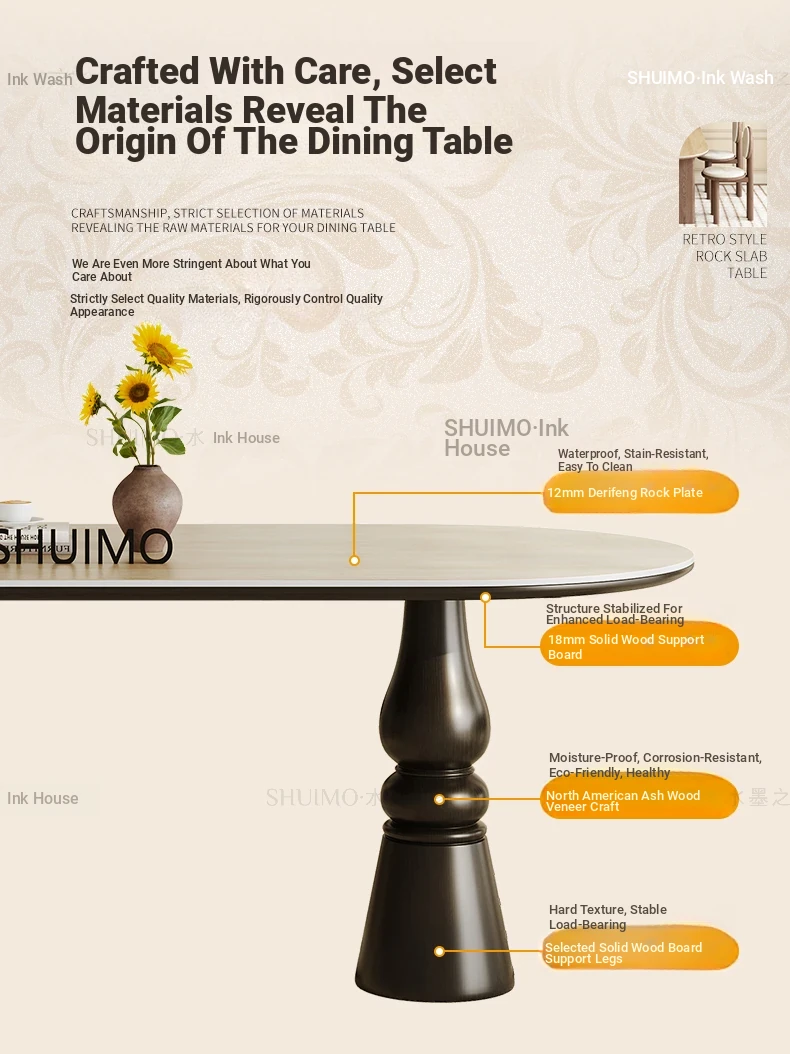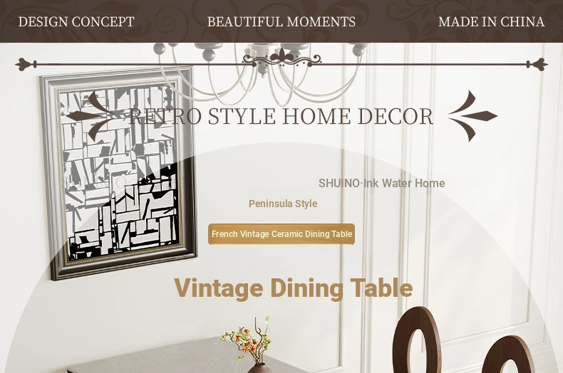 Vintage Solid Wood Rectangular Dining Table - Designer French Antique Style with Premium Ceramic Top for Luxurious Home Dining Experience