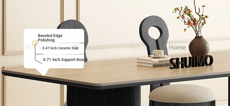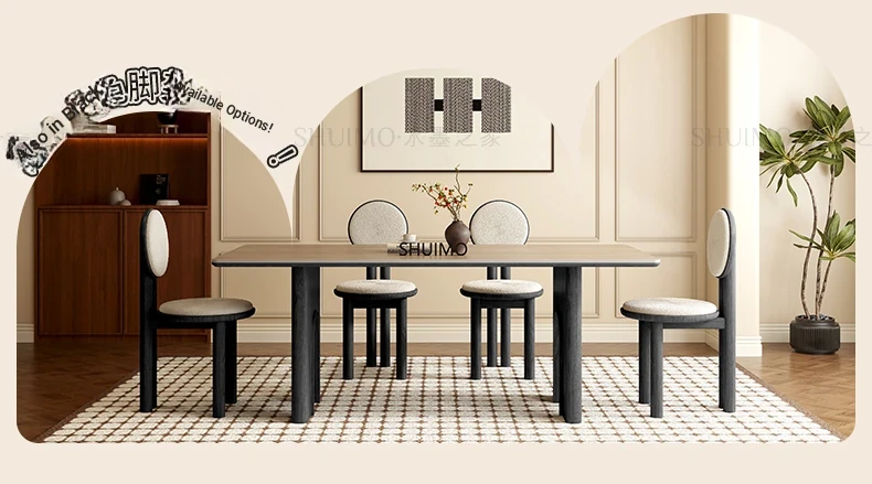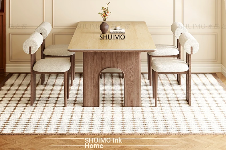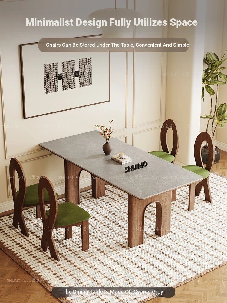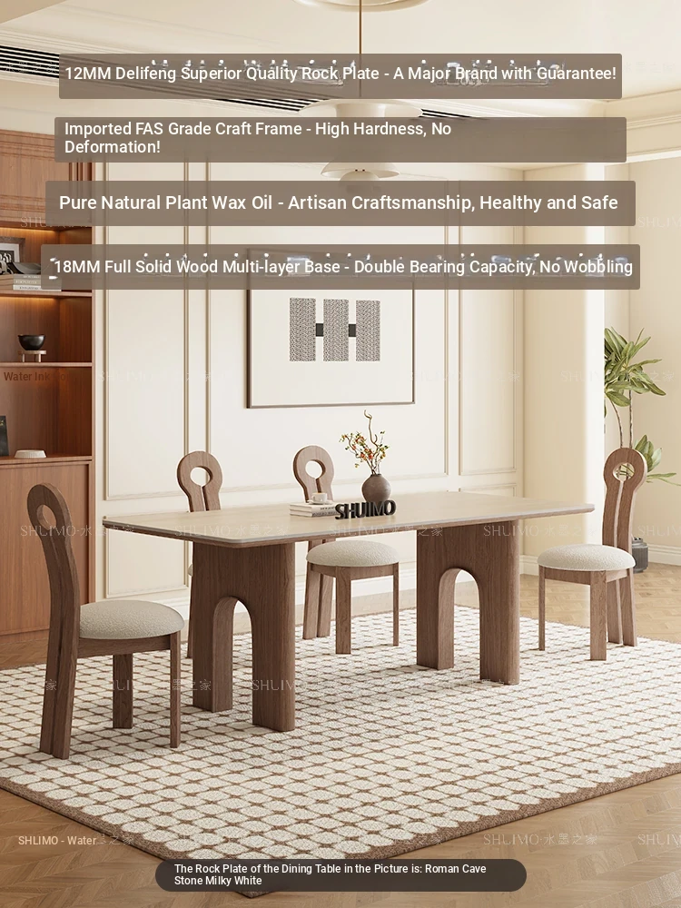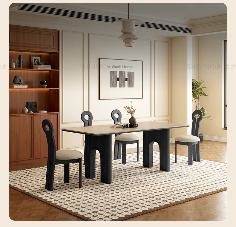 Vintage Solid Wood Rectangular Dining Table - Designer French Mid-Century Inspired High-End Ceramic Top for Home Use