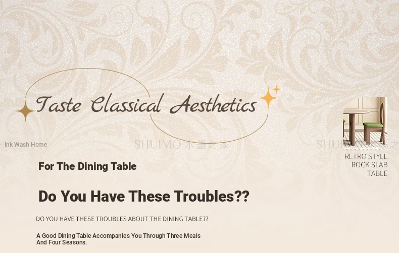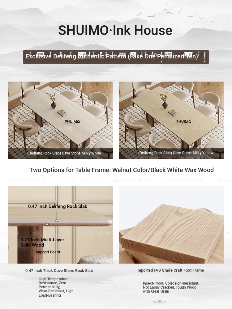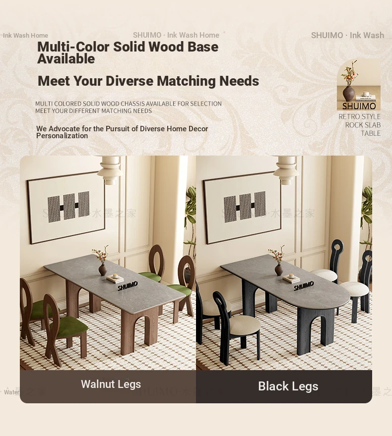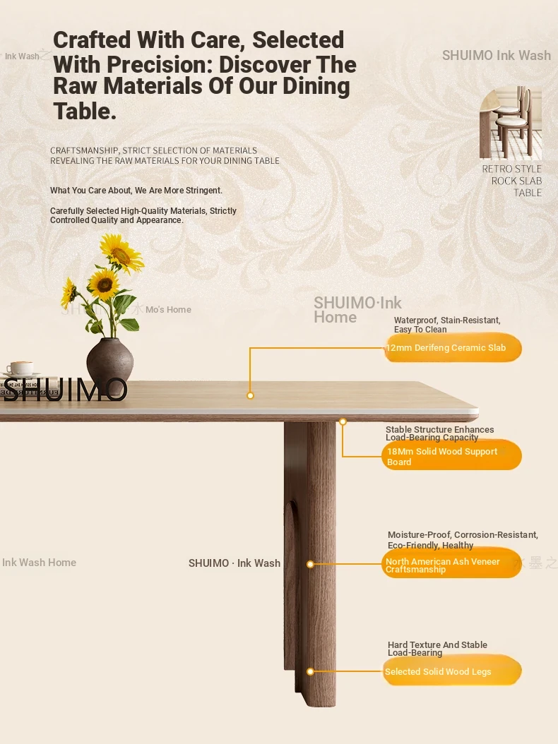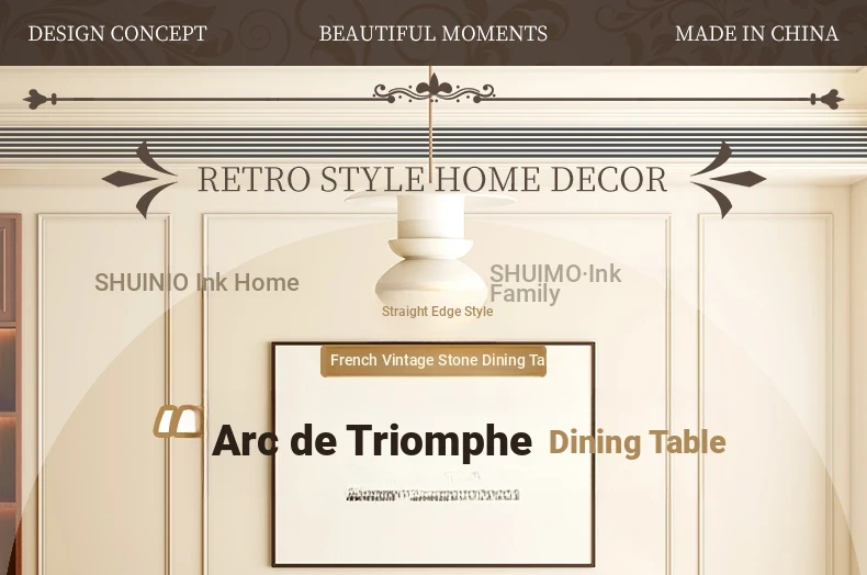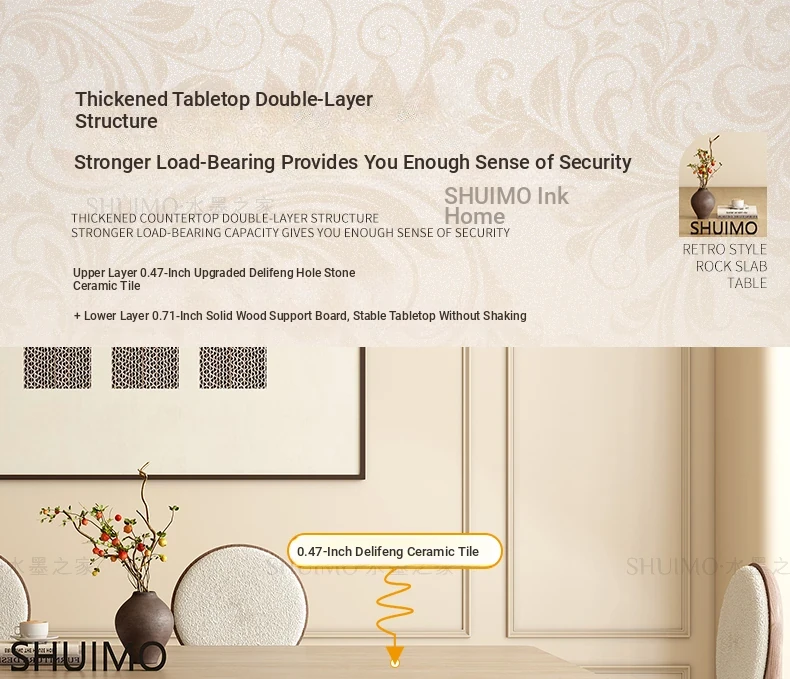 Vintage Solid Wood Rectangular Dining Table - Designer French Mid-Century Inspired High-End Ceramic Top for Home Use