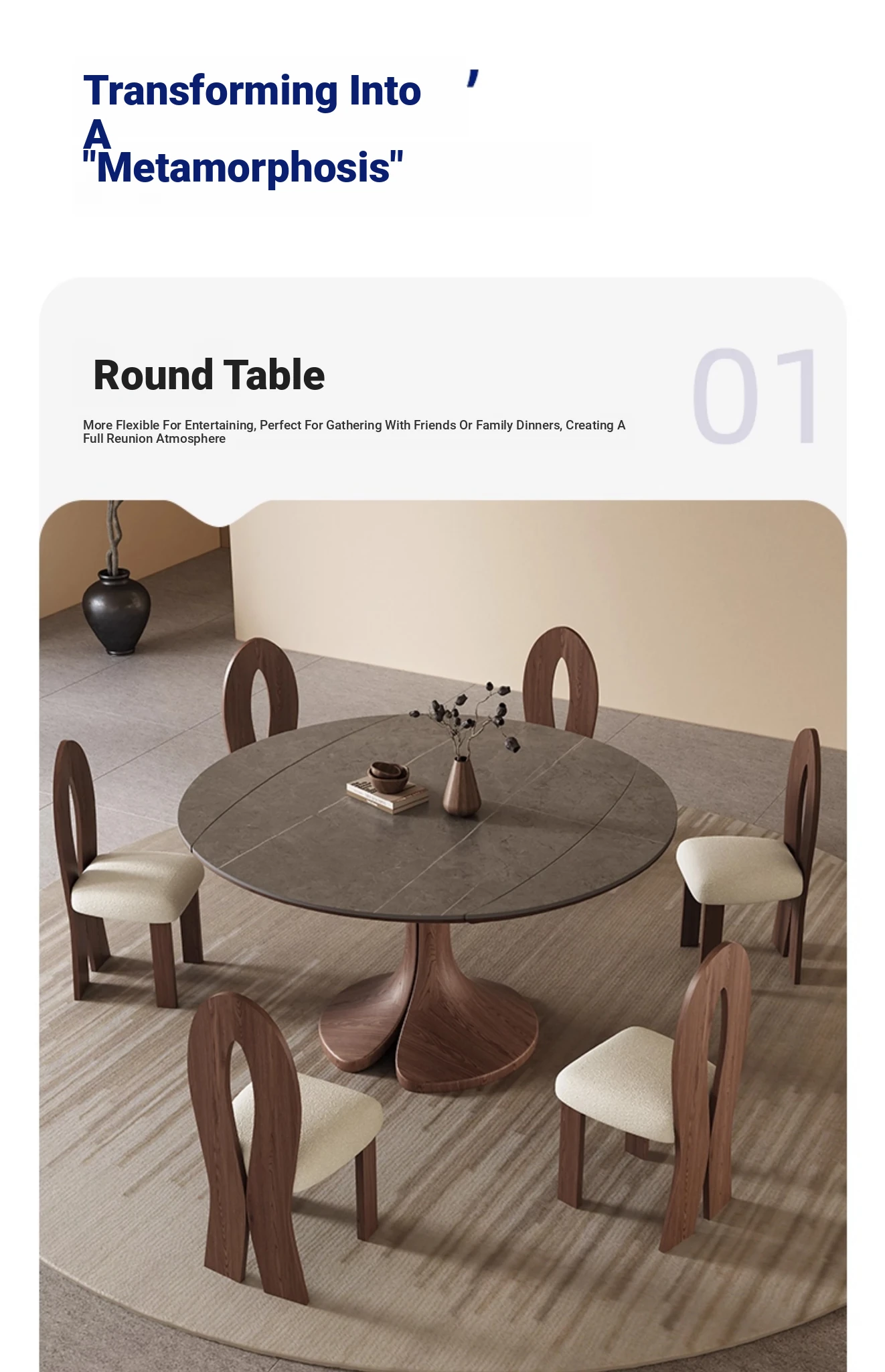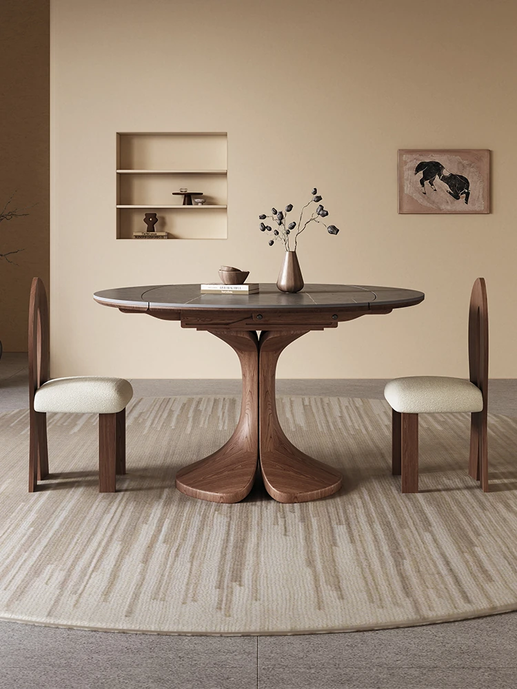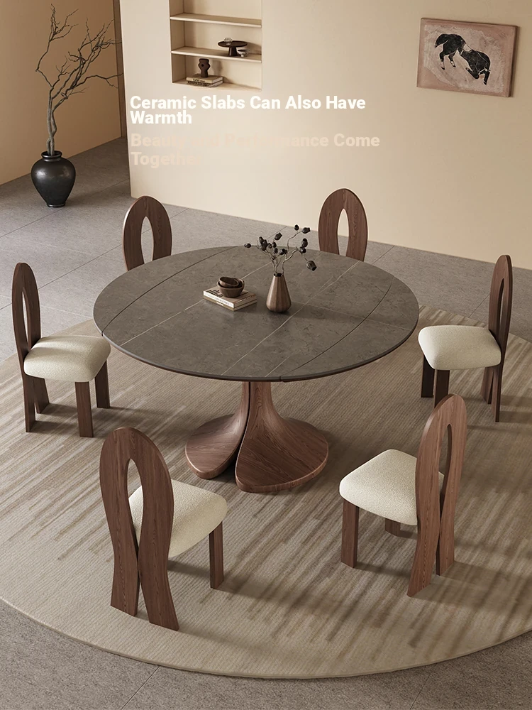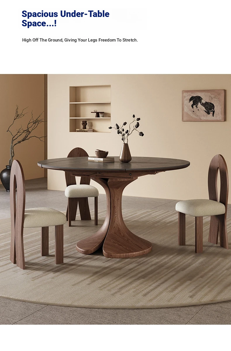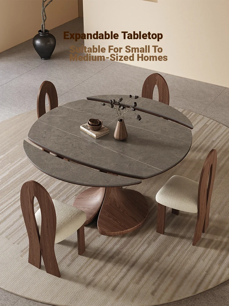 Wabi-Sabi Style Expandable Round Dining Table - Elegant Designer Folding Table for a Luxurious Touch, New 2025 Collection