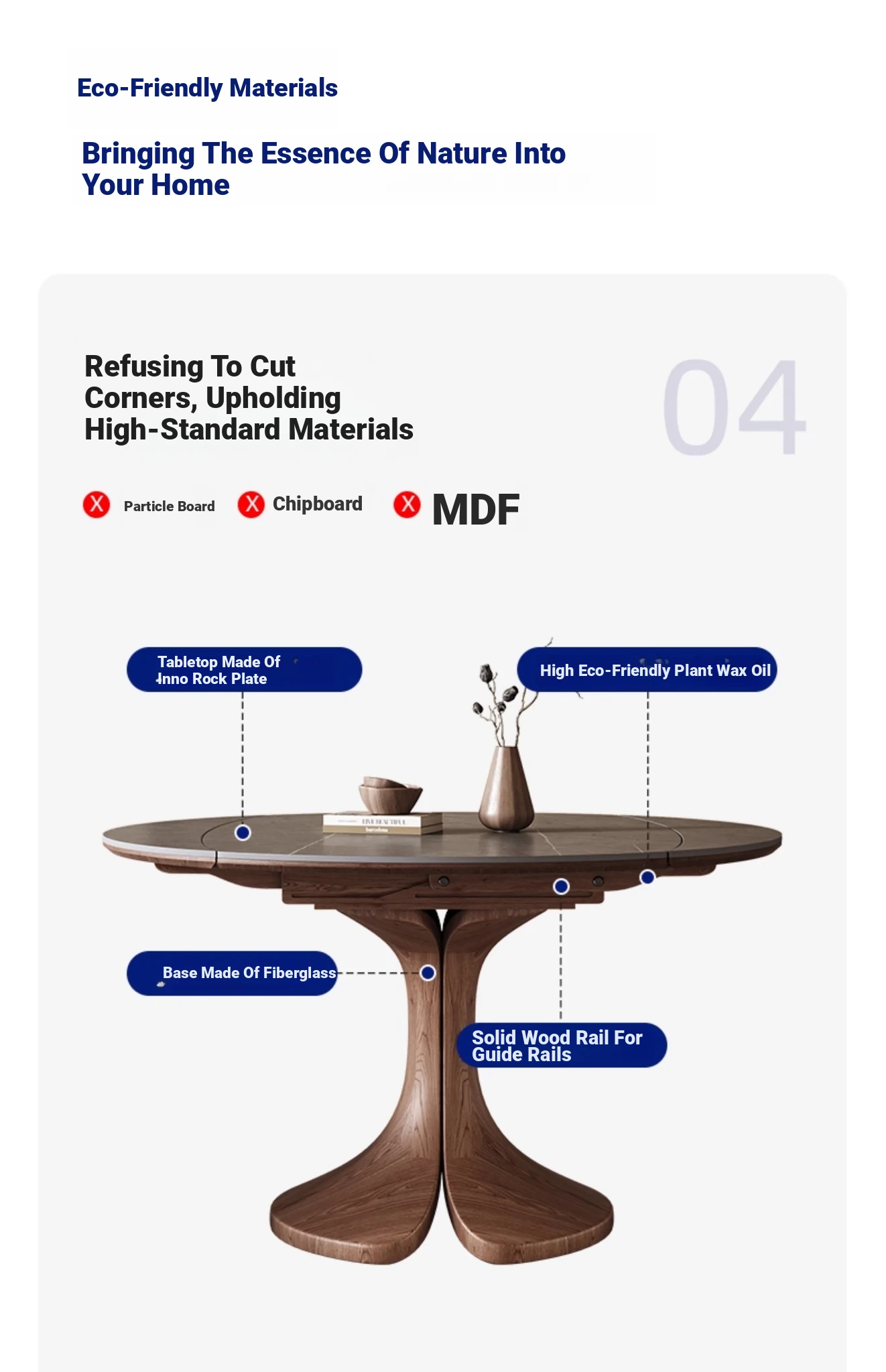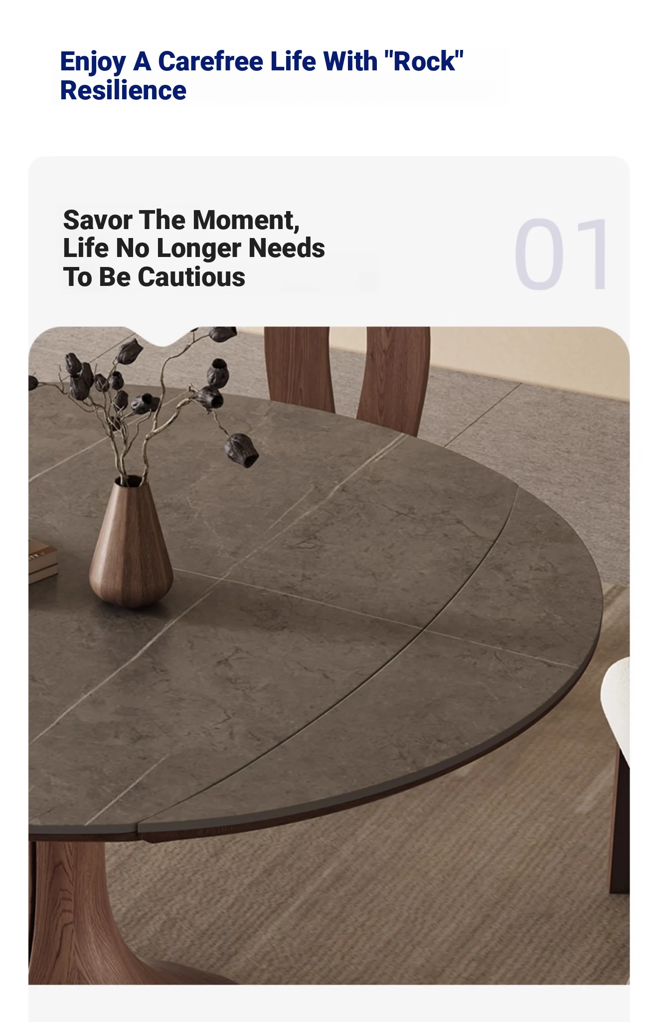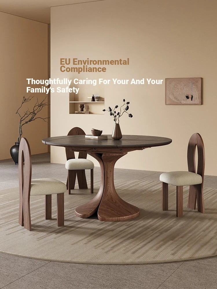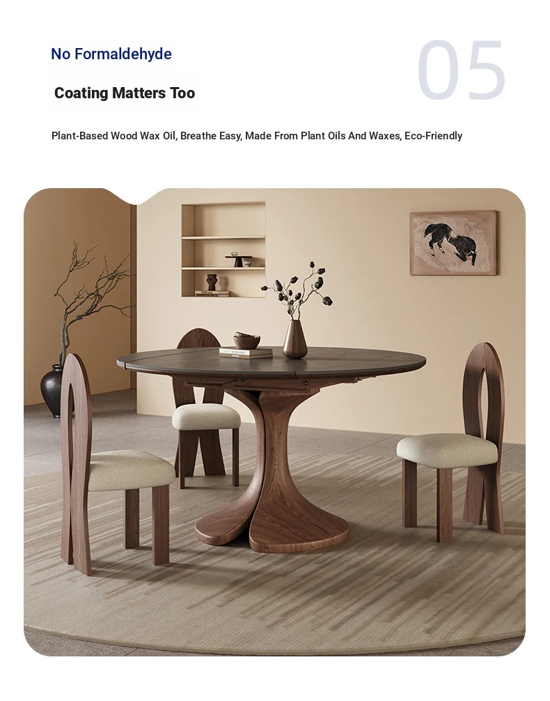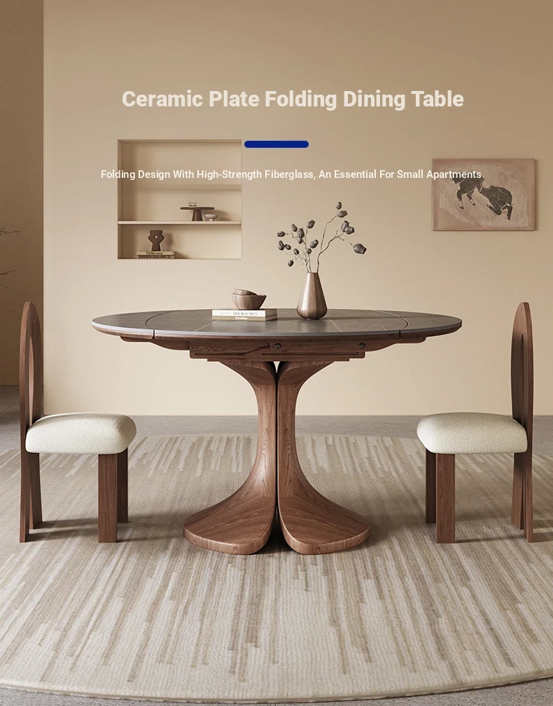 Wabi-Sabi Style Expandable Round Dining Table - Elegant Designer Folding Table for a Luxurious Touch, New 2025 Collection