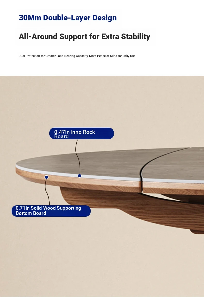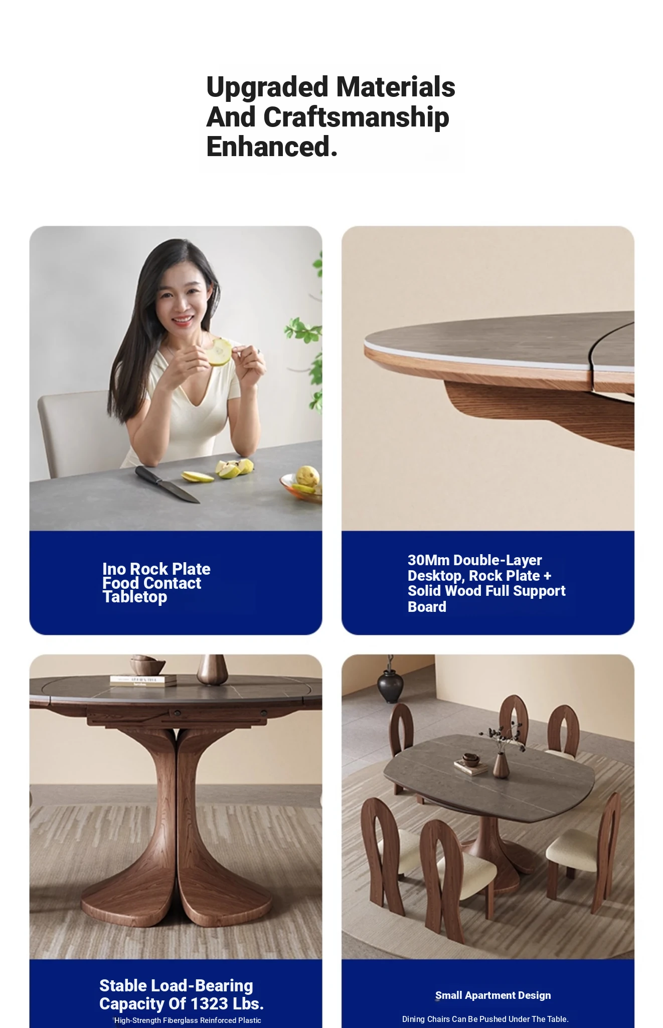 French Square Stone Dining Table - Versatile Round and Square Design, Ideal for Small Spaces, Crafted from Solid Wood, Bauhaus-Inspired Foldable Dining Table for Modern Homes.