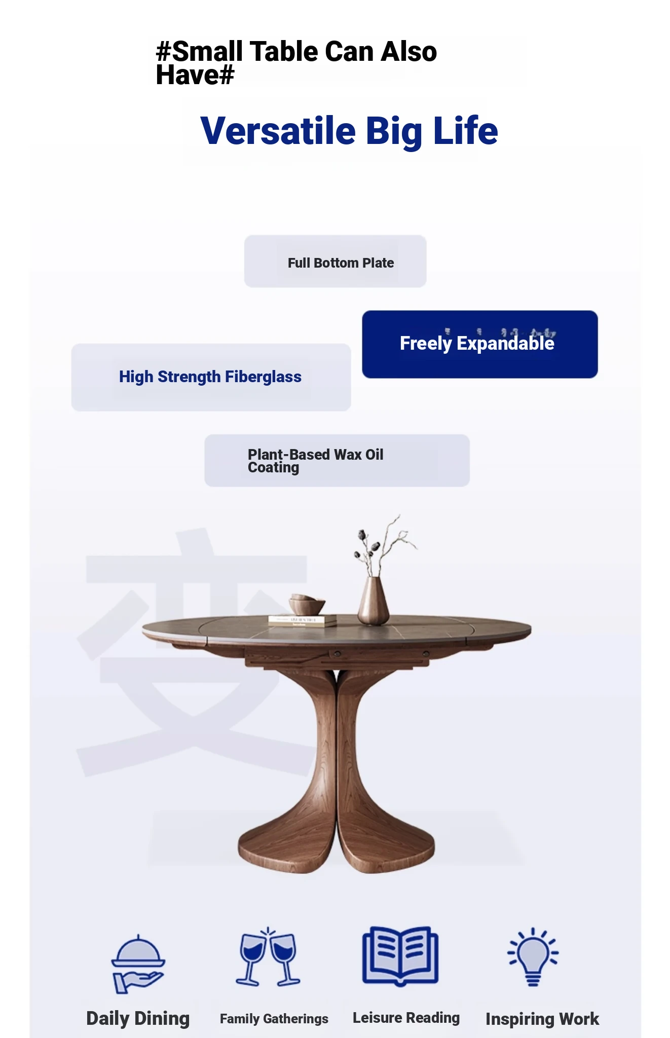 [Free Shipping to Hong Kong] Modern Minimalist Solid Wood Folding Expandable Dining Table - Versatile Design for Small Spaces, Perfect for Stylish Homes