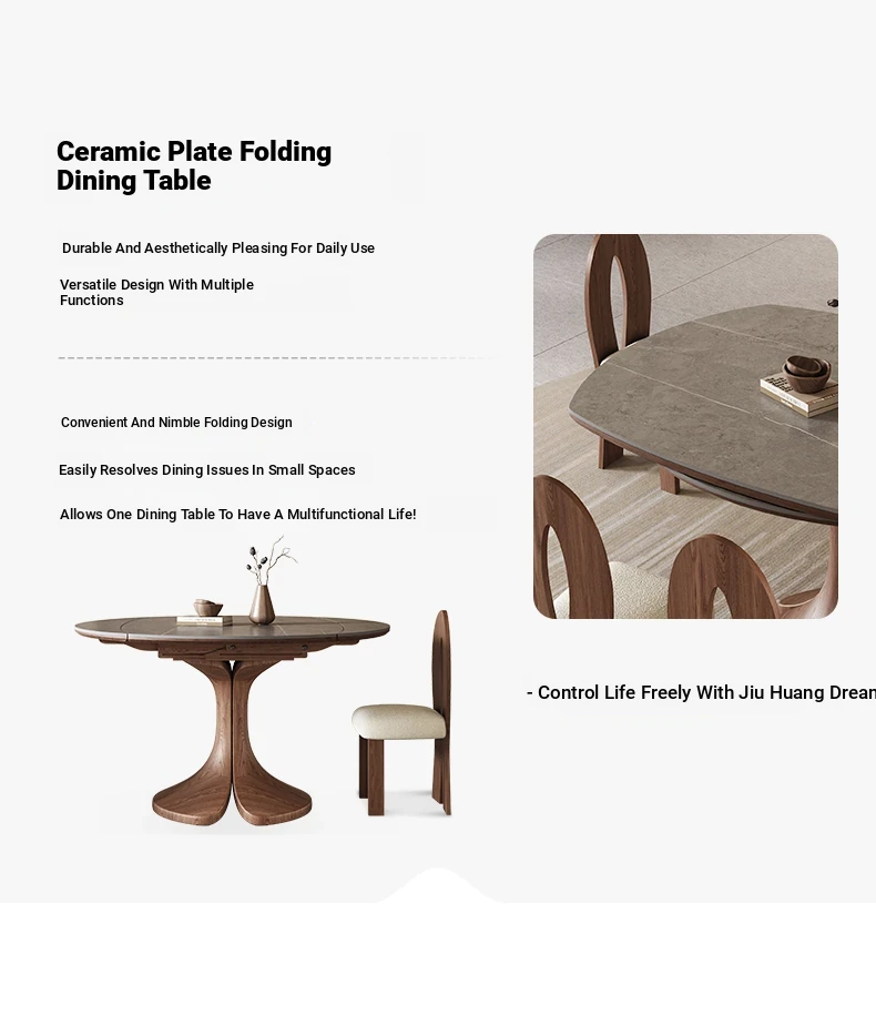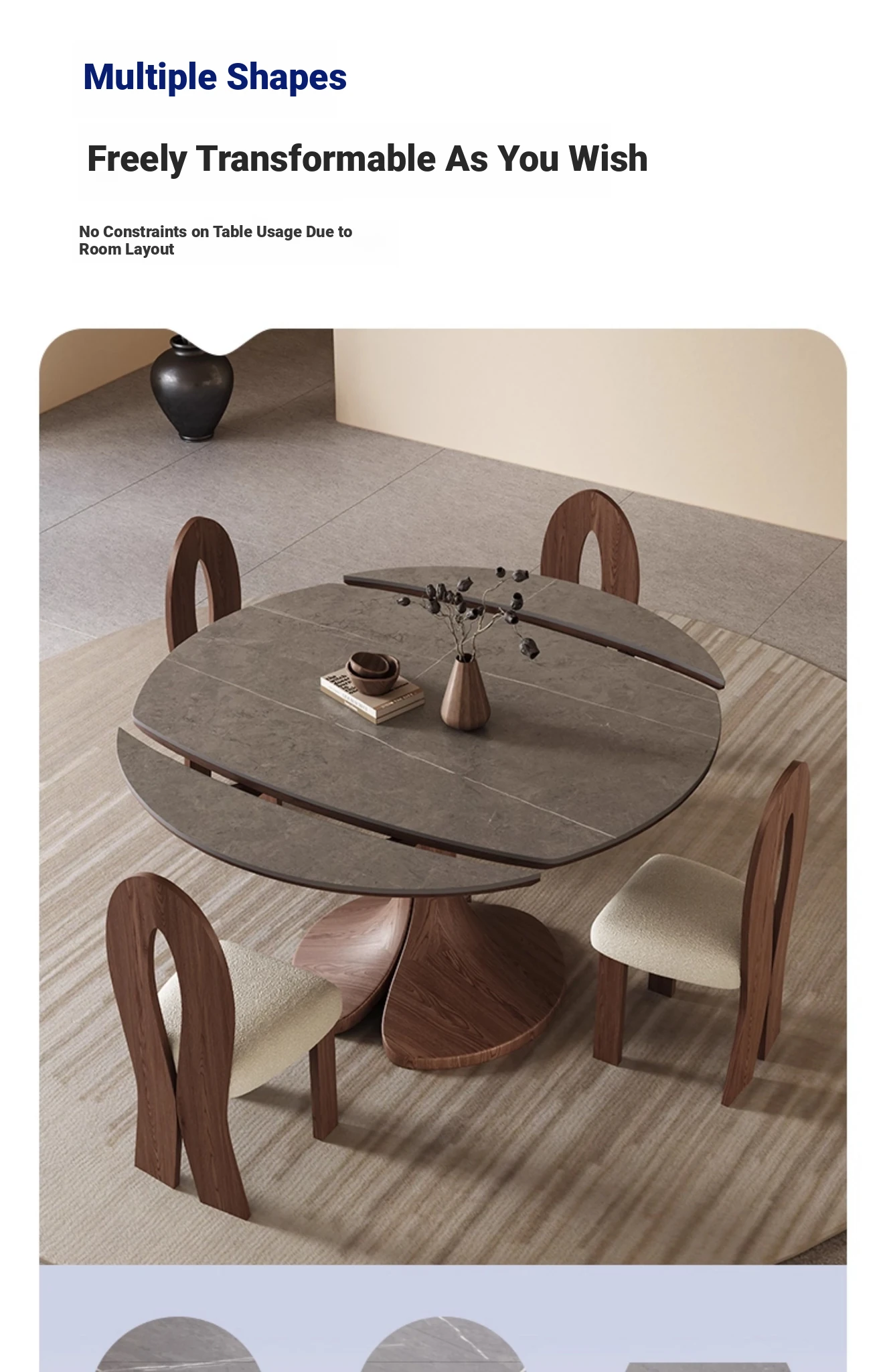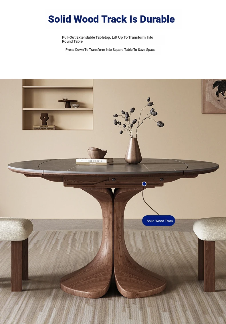 Wabi-Sabi Style Foldable and Expandable Round Table - Versatile Square and Round Design for Small Spaces, Perfect for Home Use, Designer Dining Table