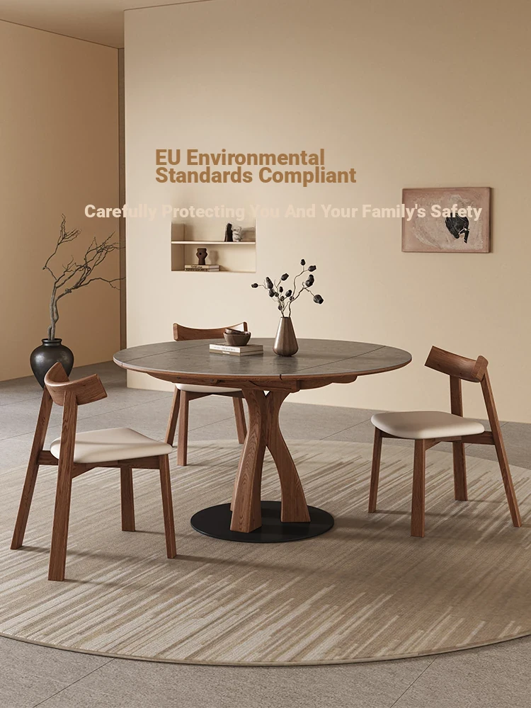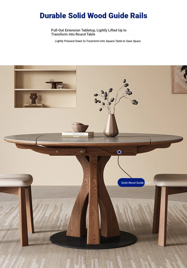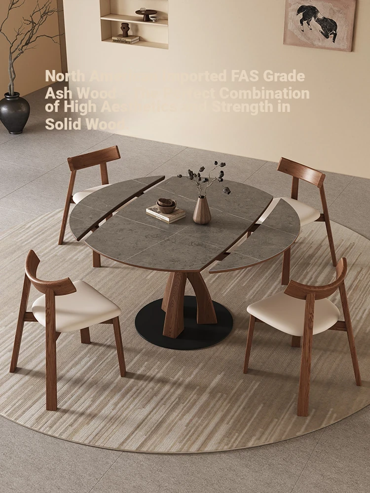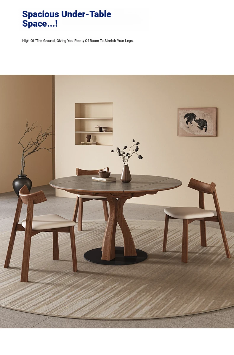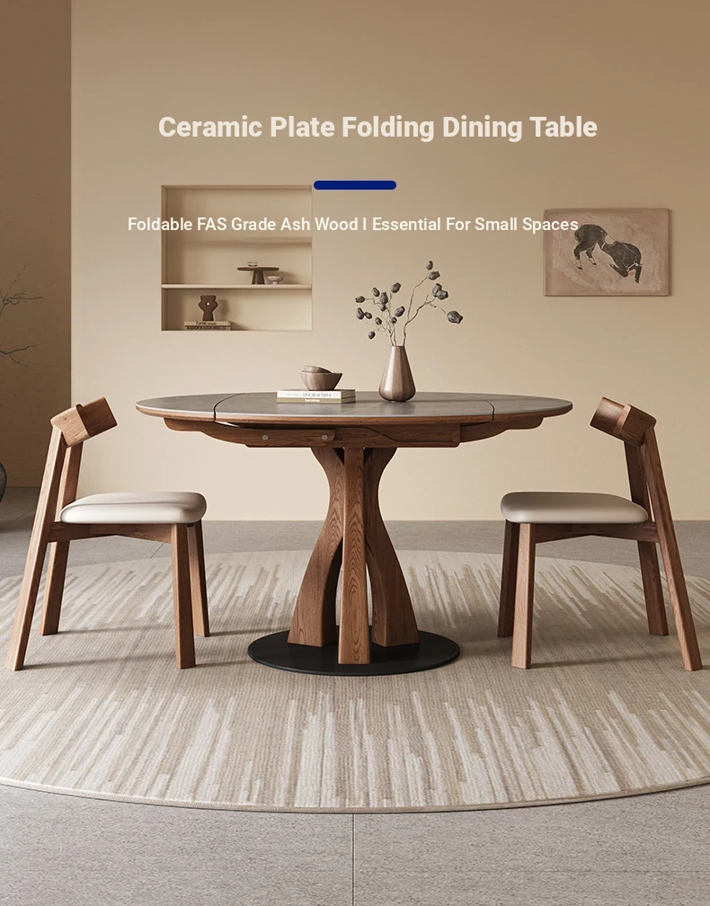 Wabi-Sabi Style Extendable Round Dining Table - Designer's Premium Luxury Folding Design, Versatile and Chic for 2025