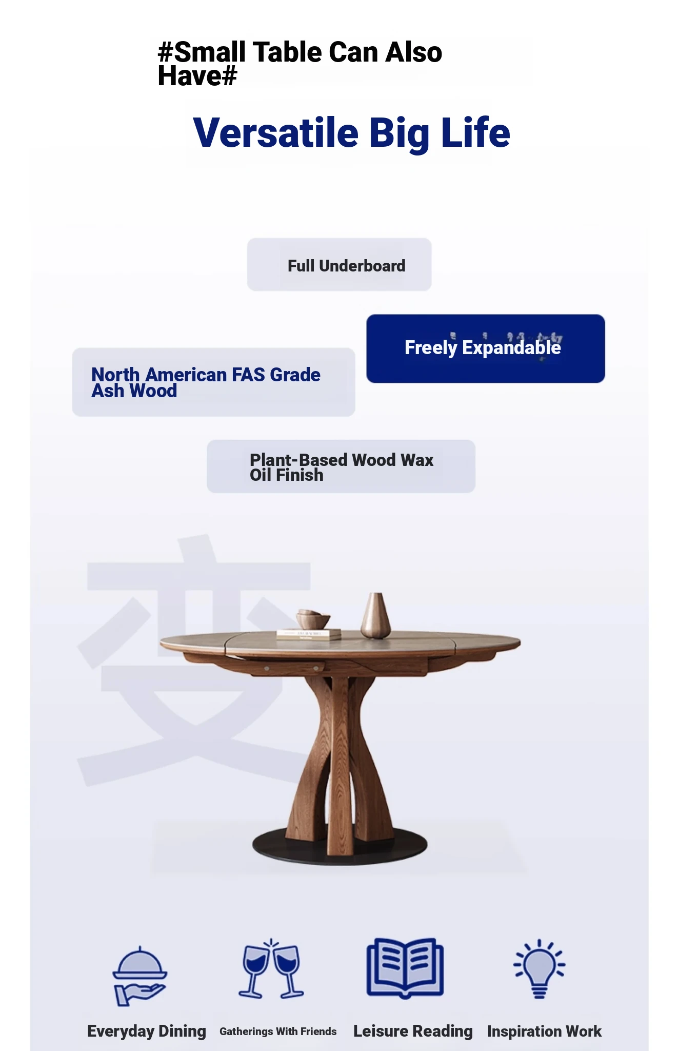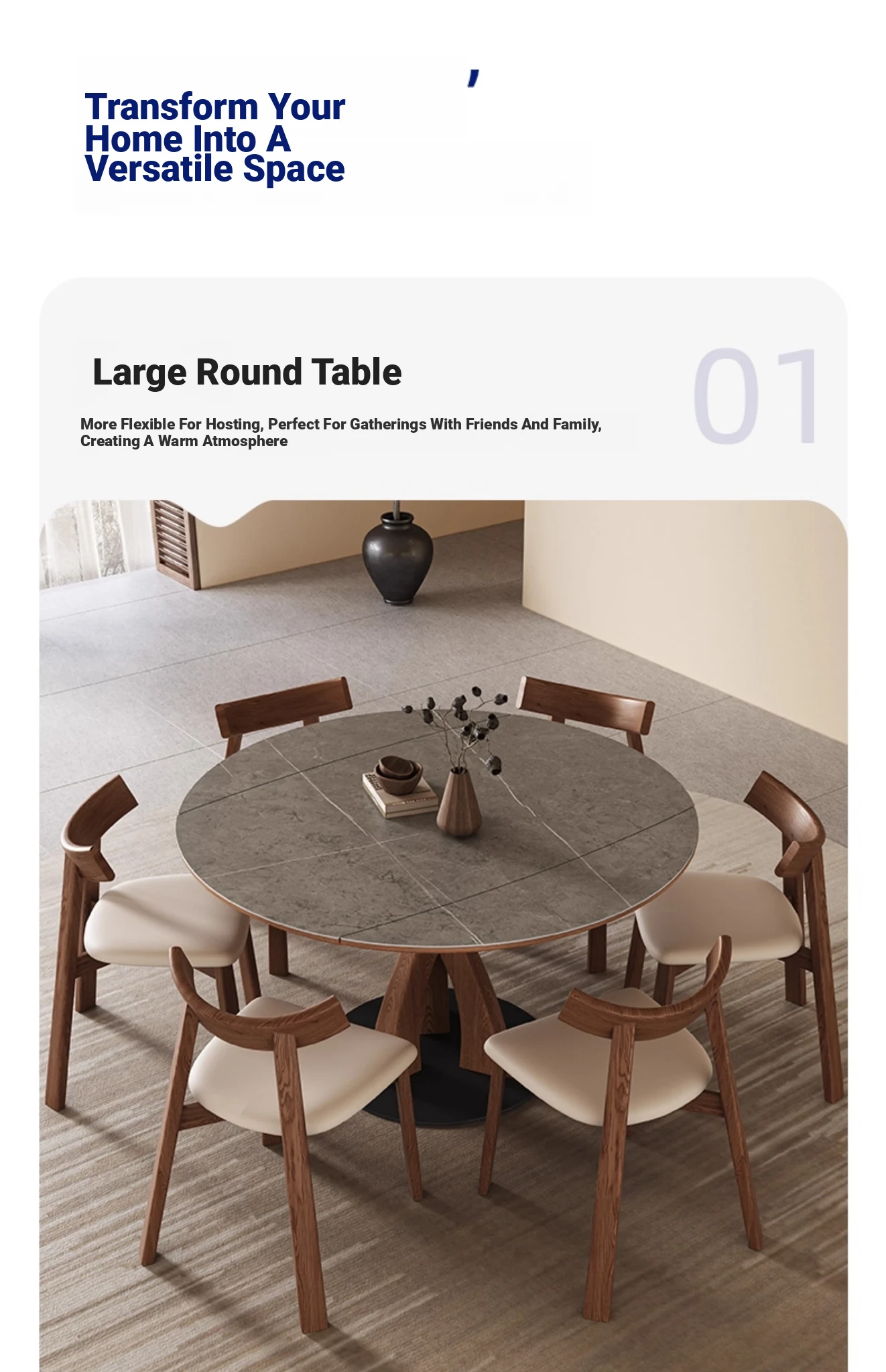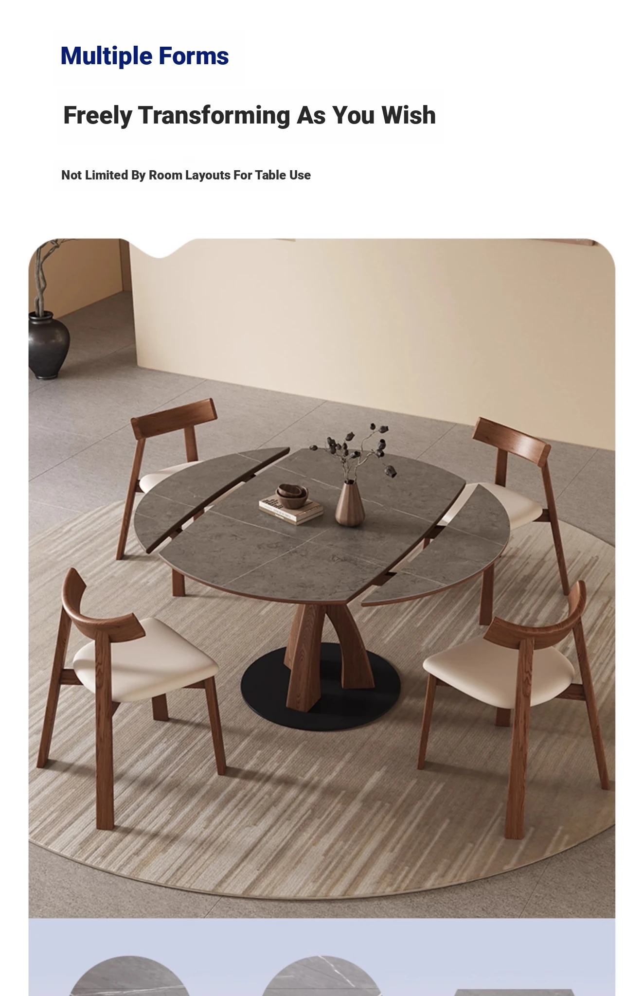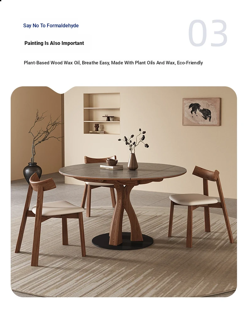 Wabi-Sabi Style Extendable Round Dining Table - Designer's Premium Luxury Folding Design, Versatile and Chic for 2025