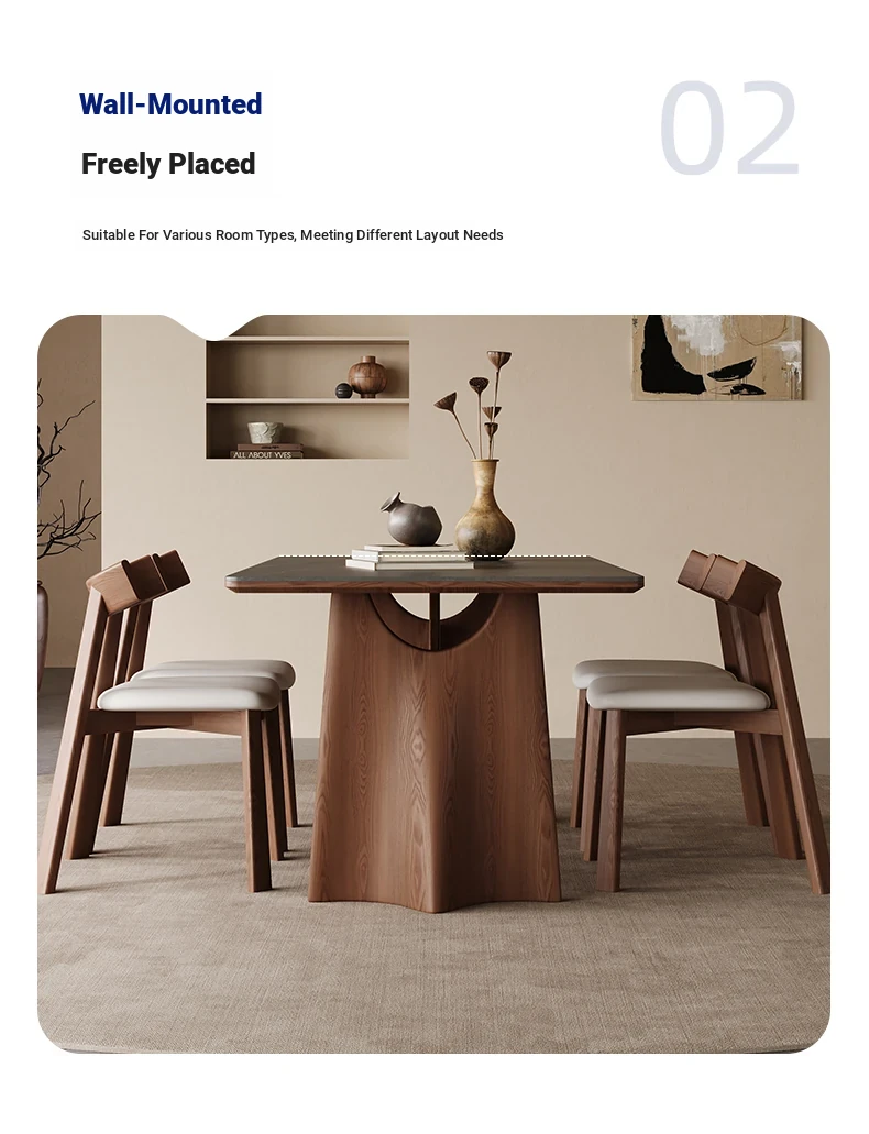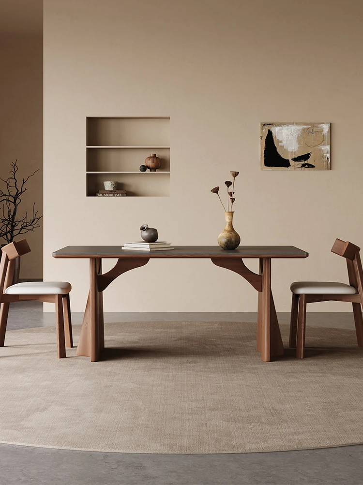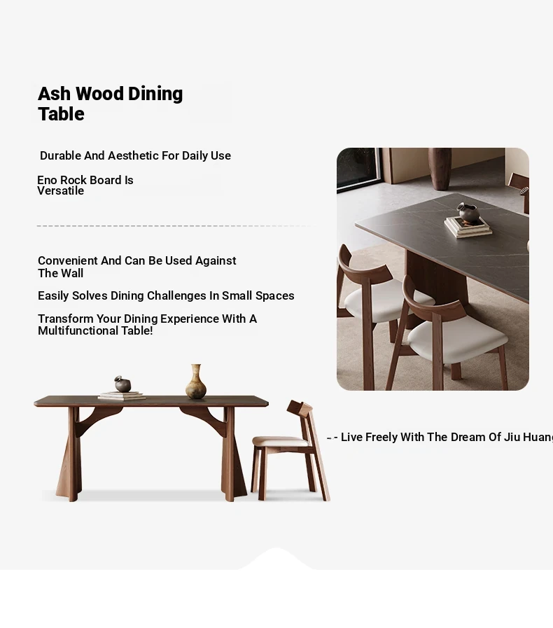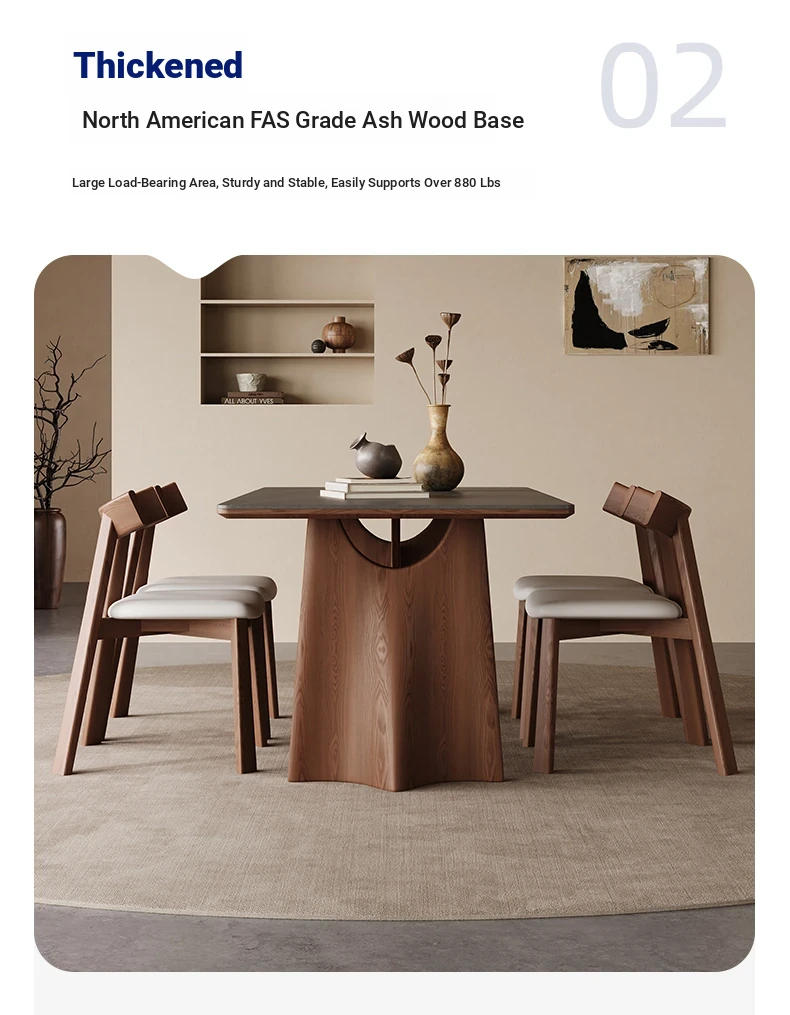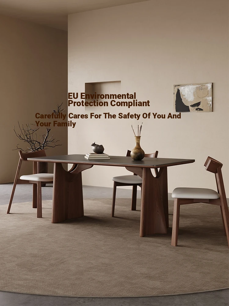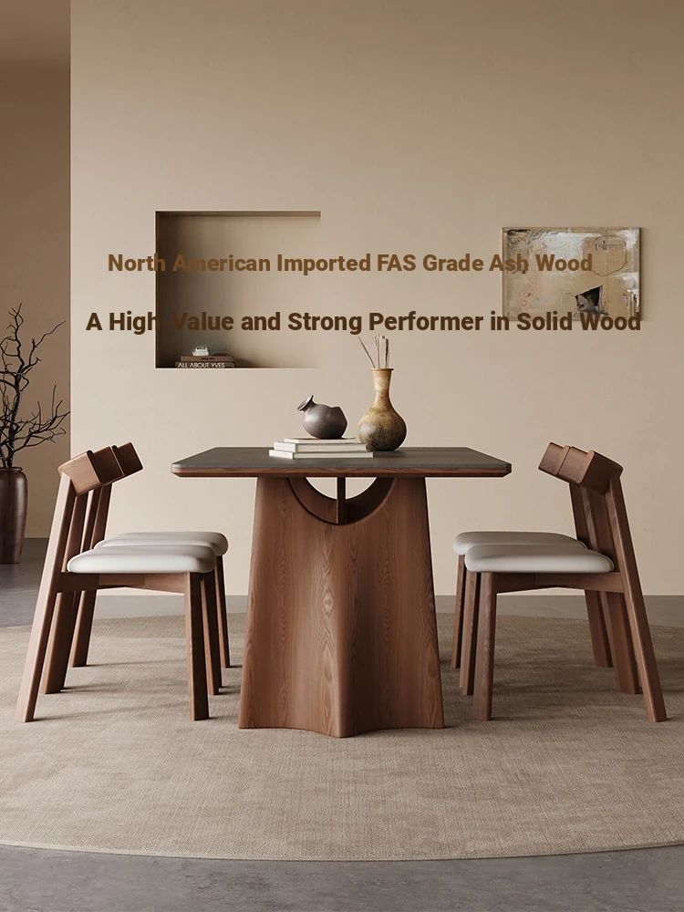 Wabi-Sabi Style Solid Wood Dining Table – Modern Minimalist Design in Ash Wood, Perfect for Small Spaces, Elegant Rectangular Shape by Designer