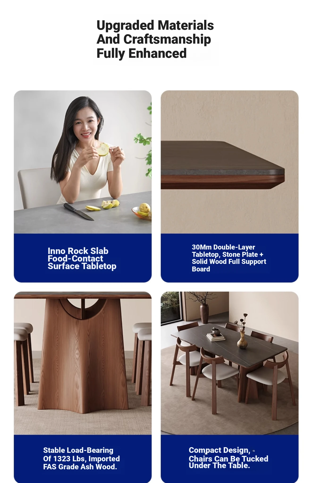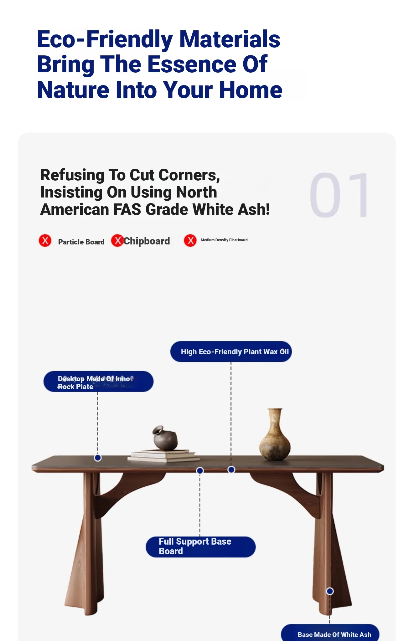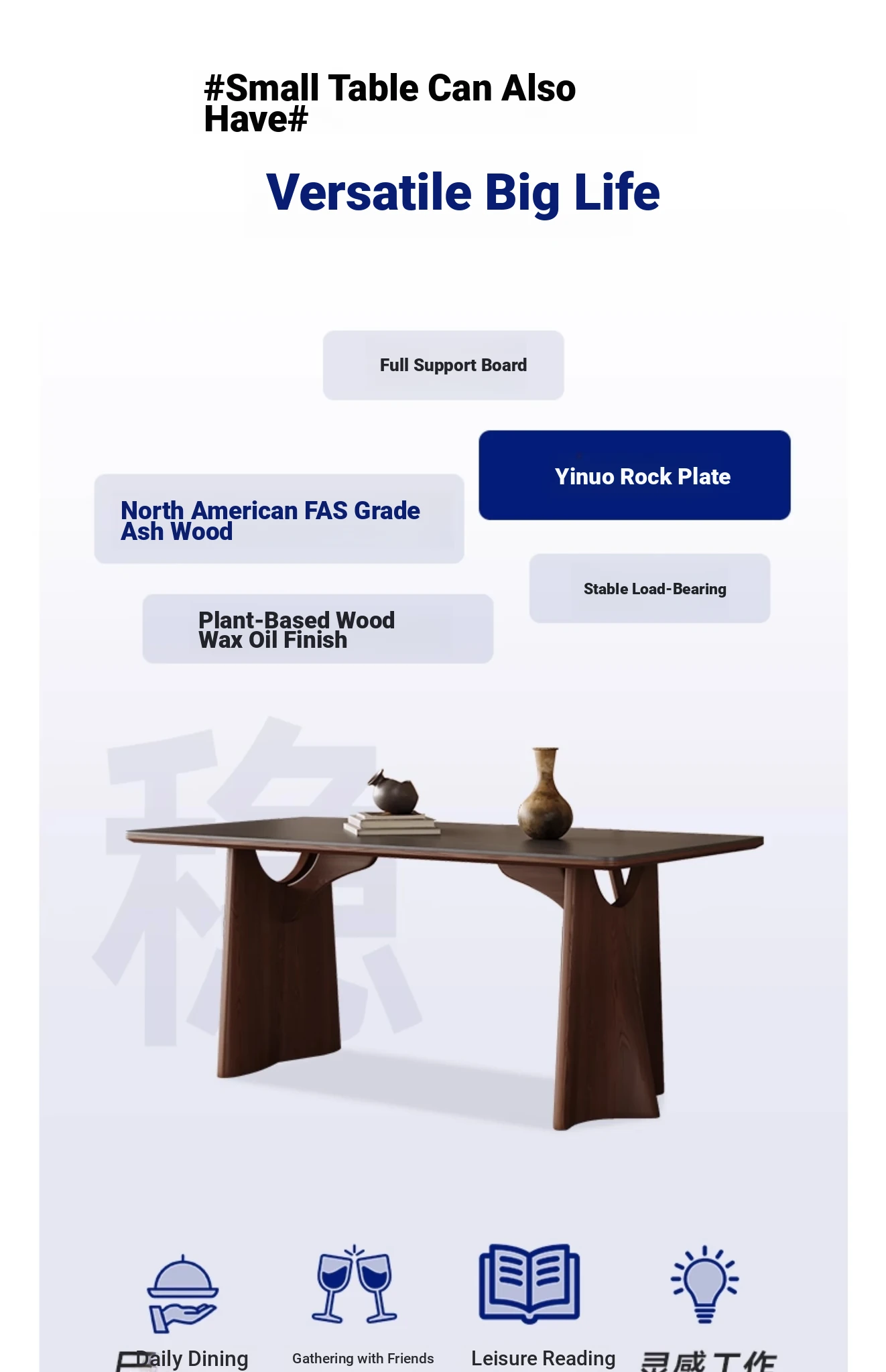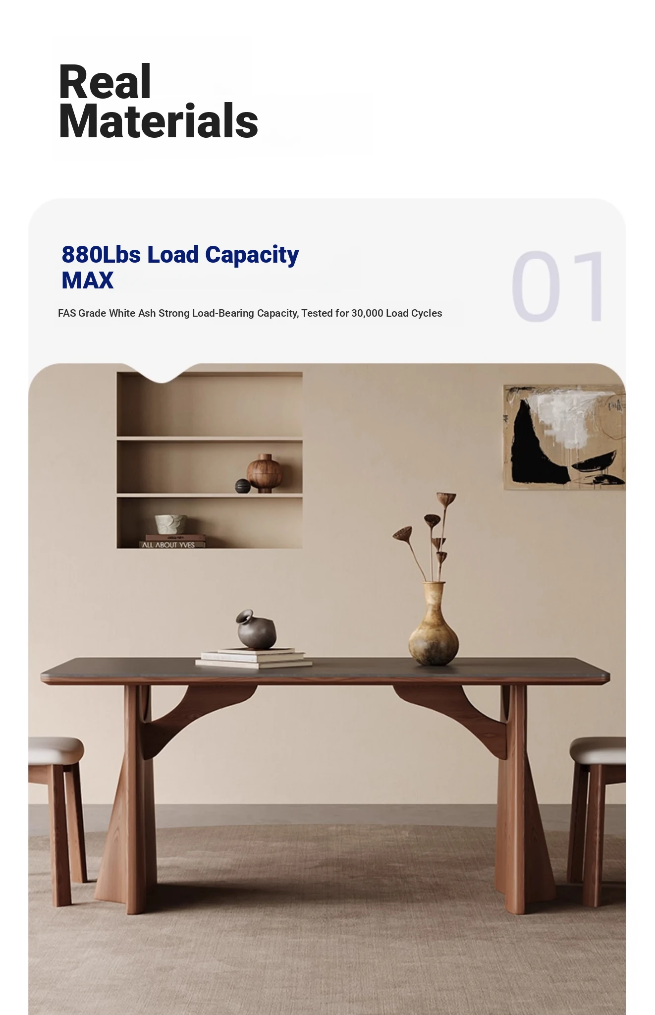 Wabi-Sabi Style Solid Wood Dining Table – Modern Minimalist Design in Ash Wood, Perfect for Small Spaces, Elegant Rectangular Shape by Designer