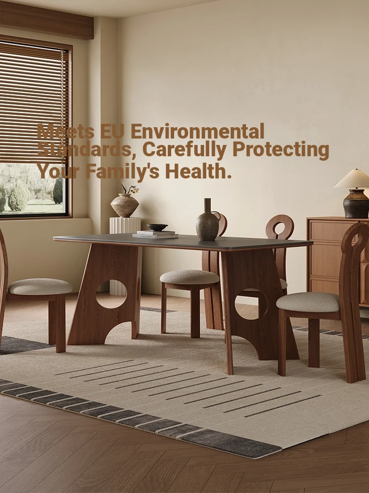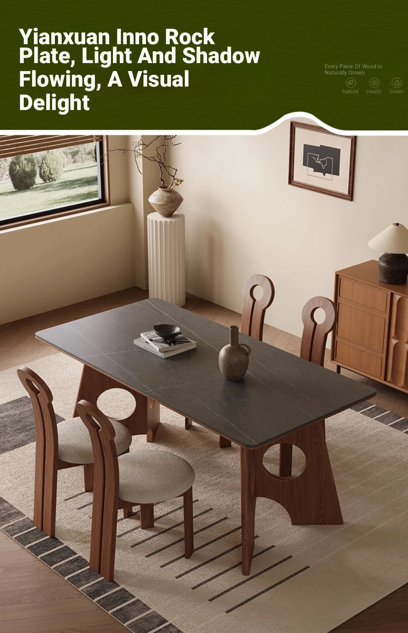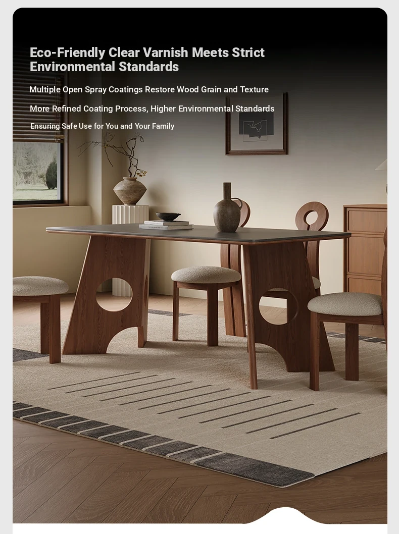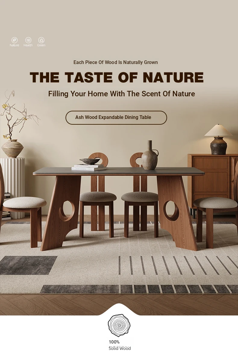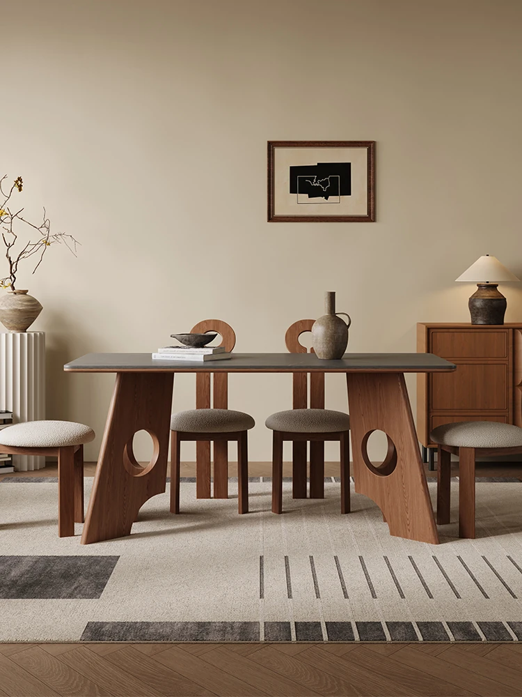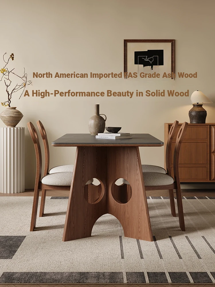 Wabi-Sabi Style Solid Wood Dining Table - Modern Minimalist Rectangular Design in Ash and Walnut Finish for Small Spaces