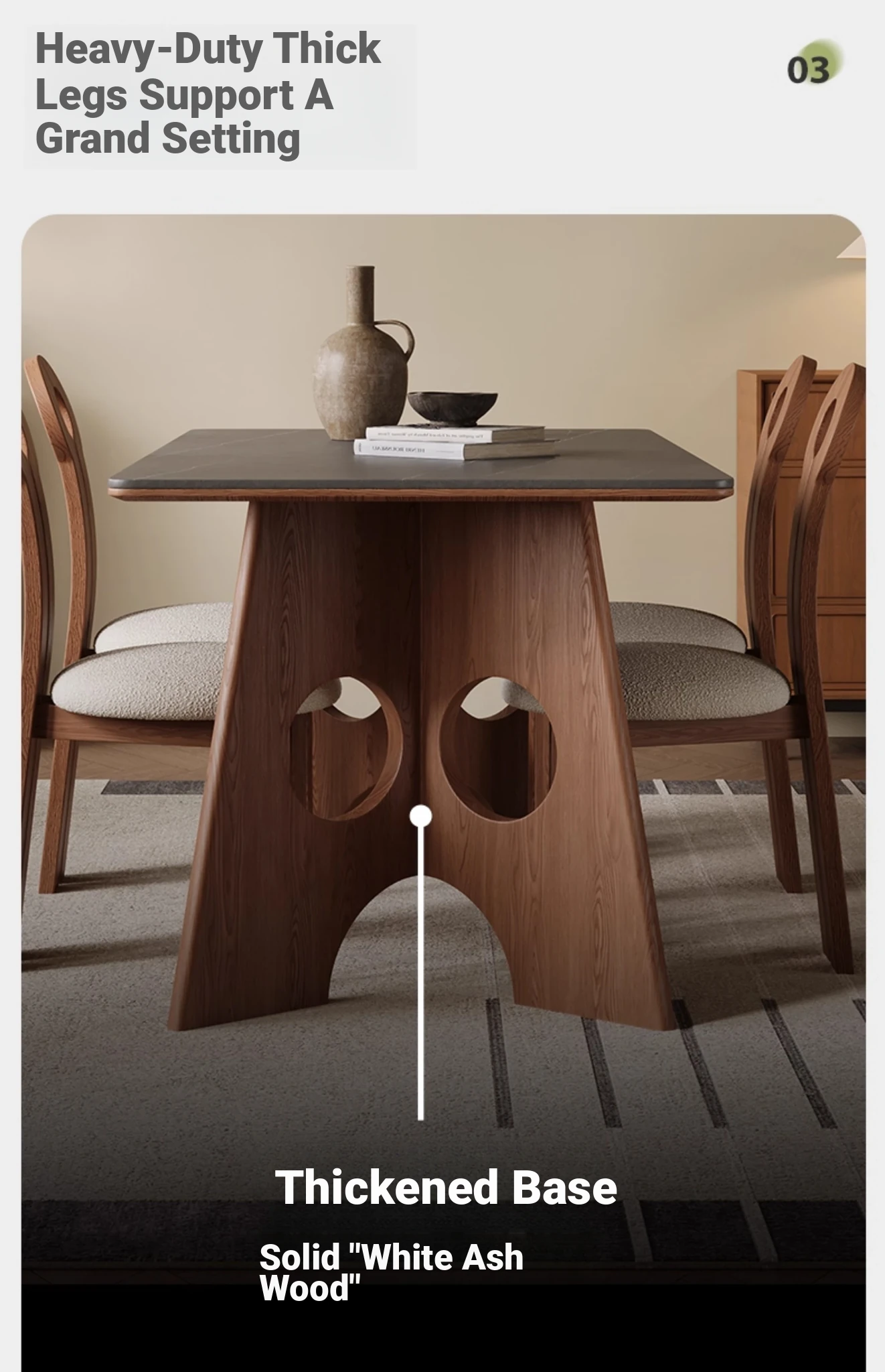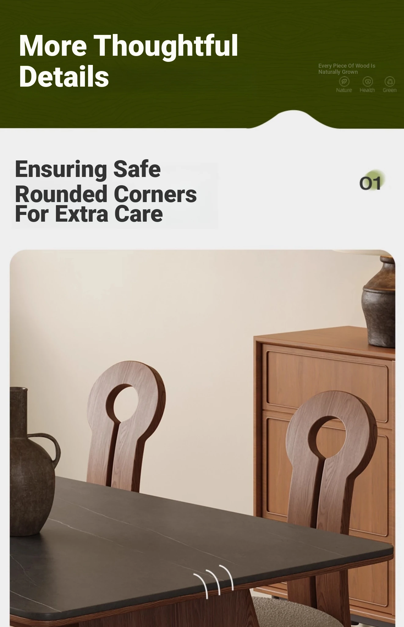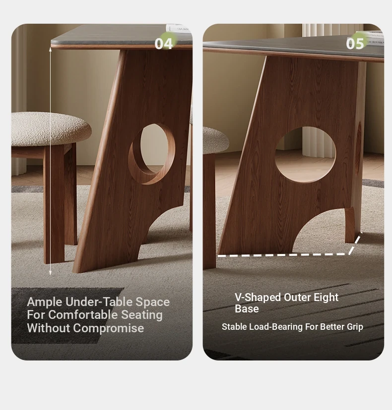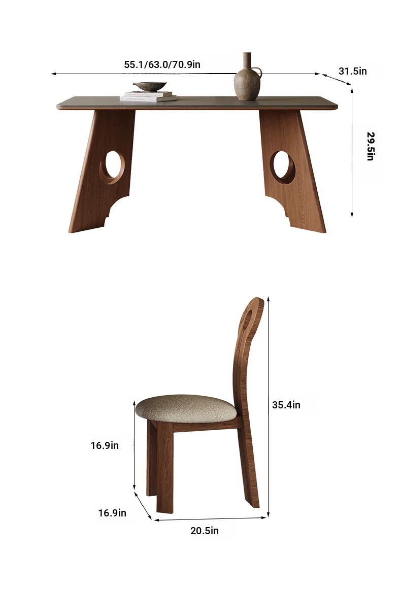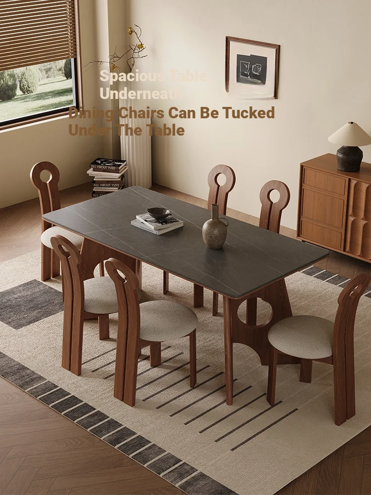 Wabi-Sabi Style Solid Wood Dining Table - Modern Minimalist Rectangular Design in Ash and Walnut Finish for Small Spaces