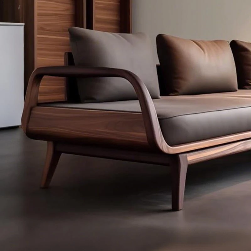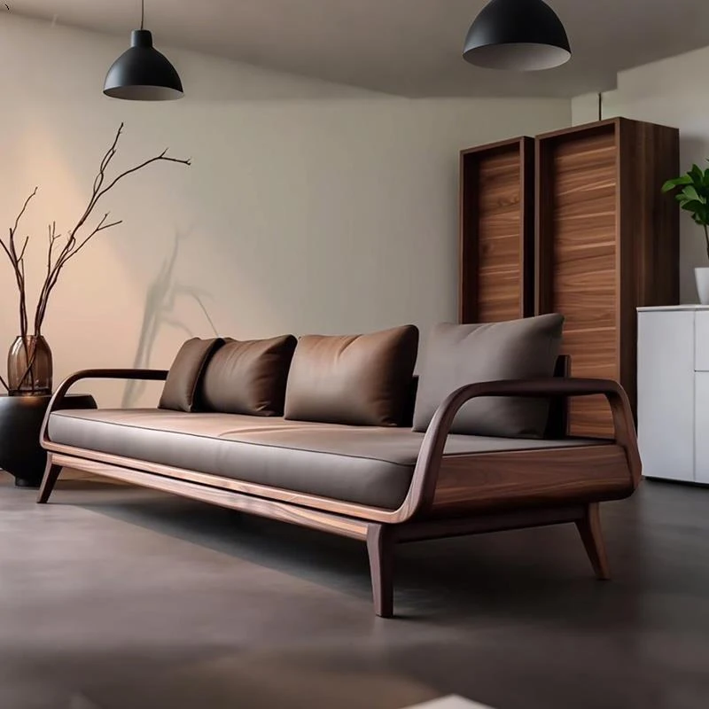 新中式デザインの北米産ブラックウォールナット無垢材ソファ【2025年新作】大小様々なリビングに最適な、直付けタイプの無垢家具。高級感溢れる仕上がりで、心地よいくつろぎの空間を提供します!