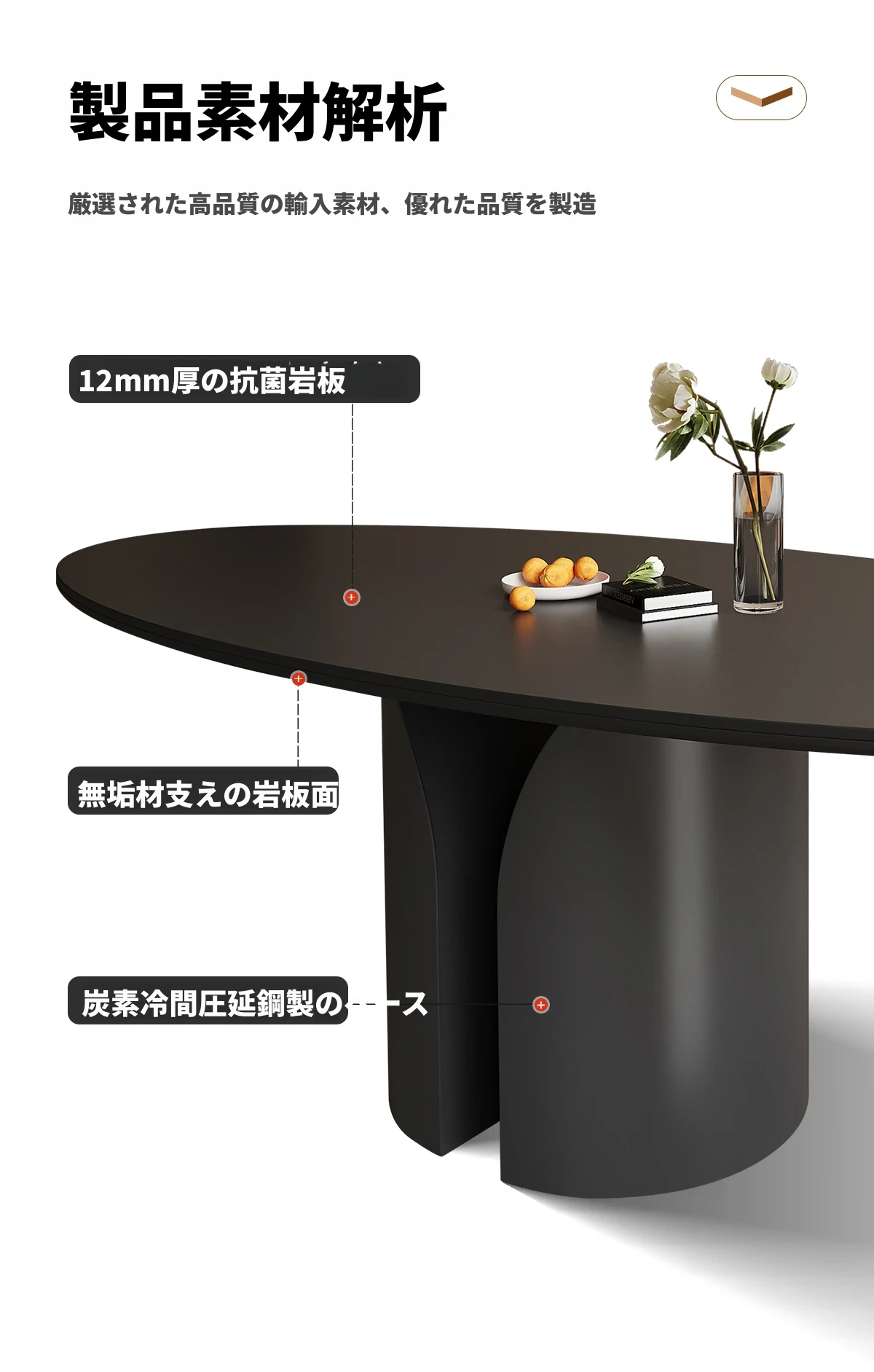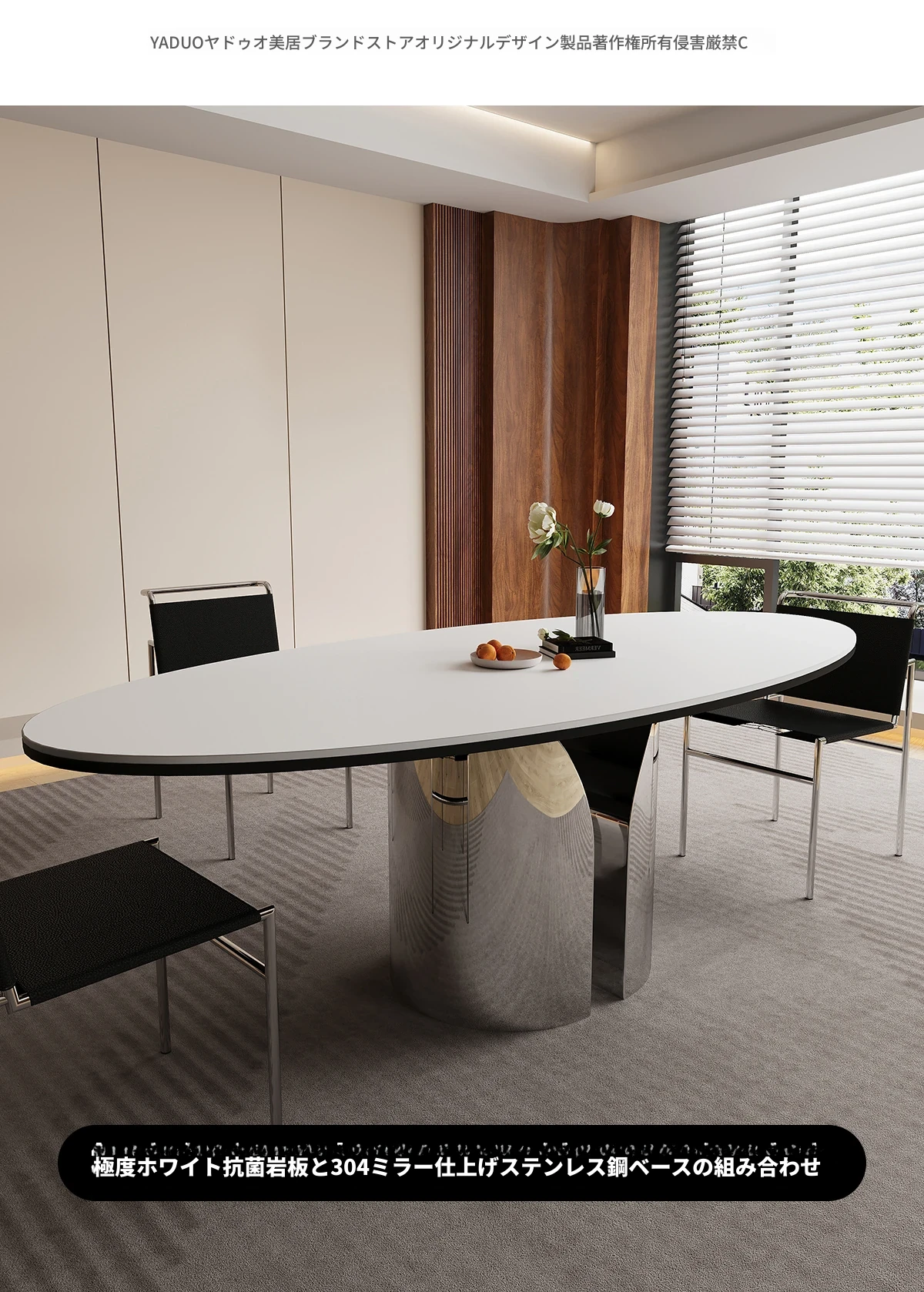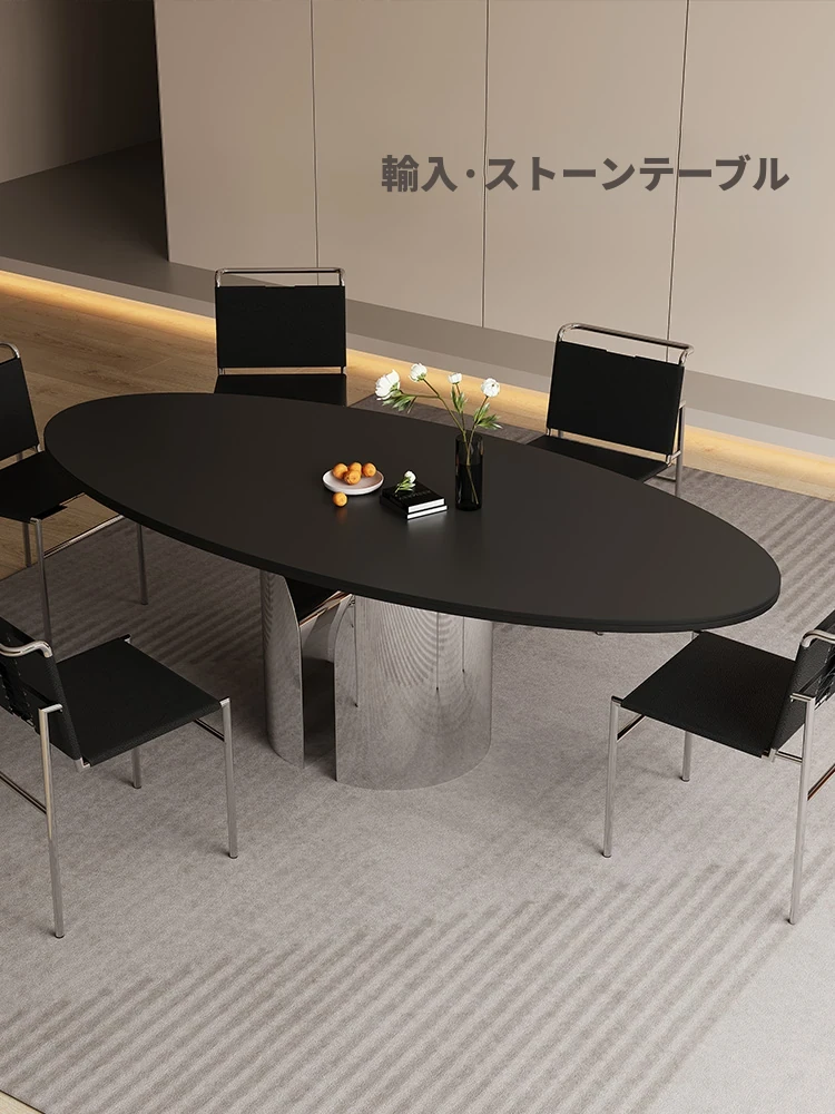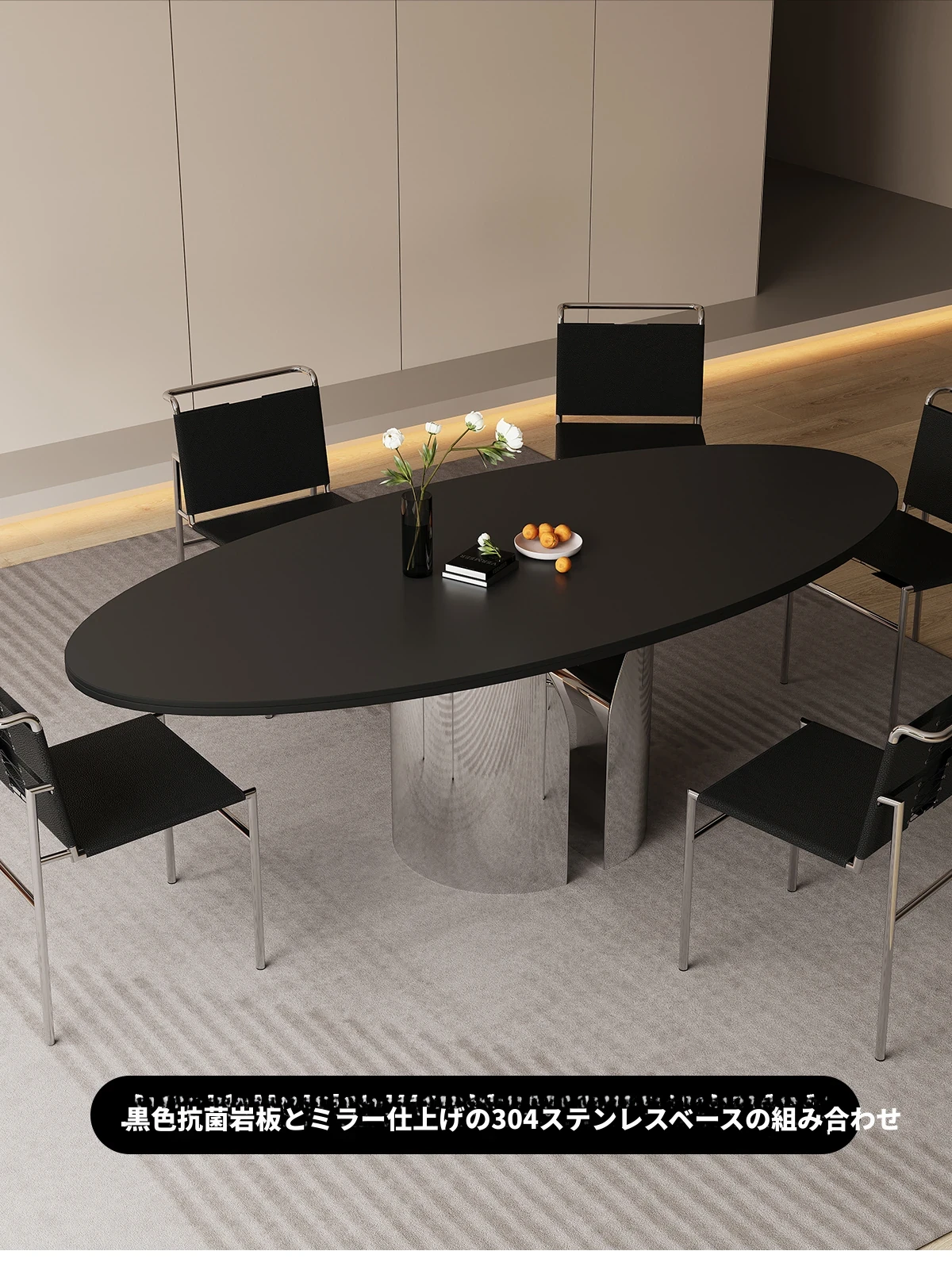 2025年新作!高級感あふれるオーバル型岩板ダイニングテーブル - モダンでシンプルなデザインの家庭用テーブル。洗練されたインテリアにぴったりの上質な一品!