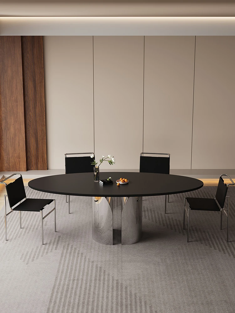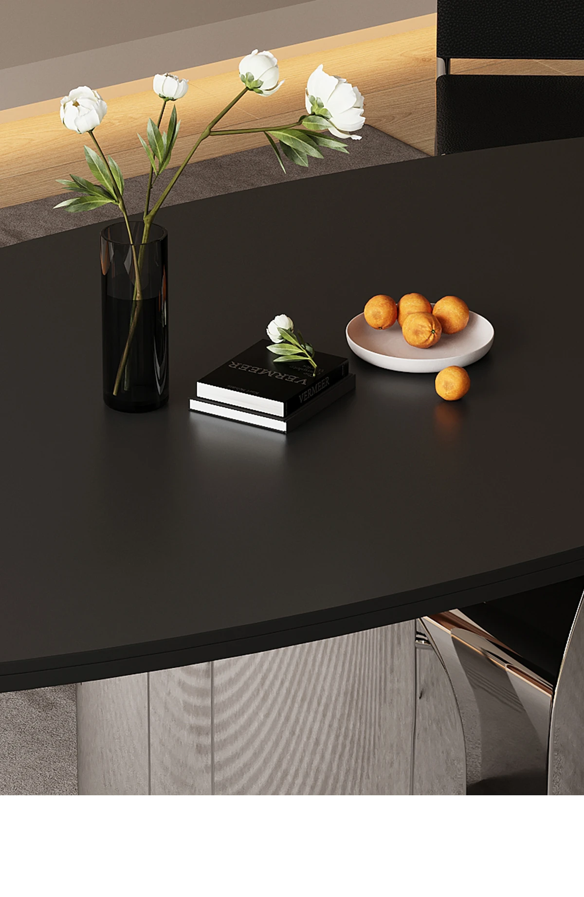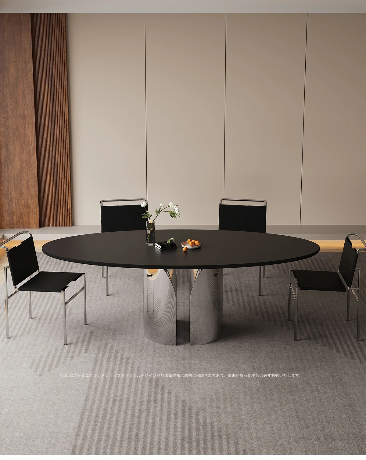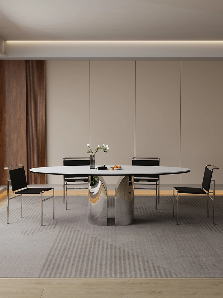 2025年新作!高級感あふれるオーバル型岩板ダイニングテーブル - モダンでシンプルなデザインの家庭用テーブル。洗練されたインテリアにぴったりの上質な一品!