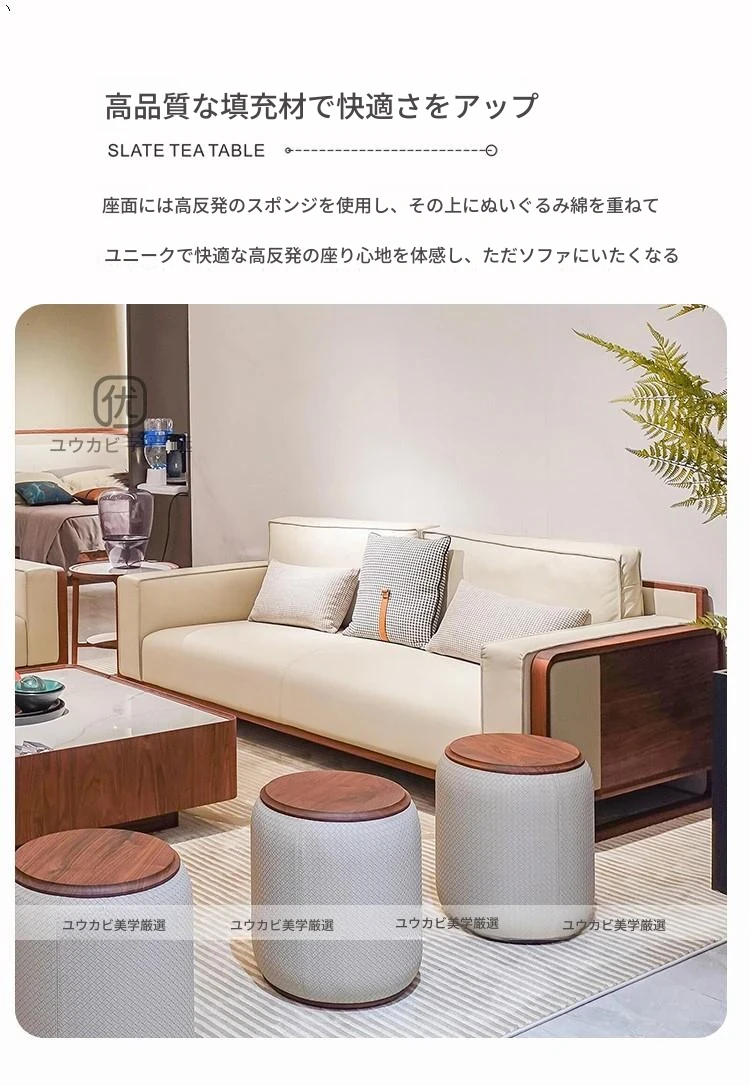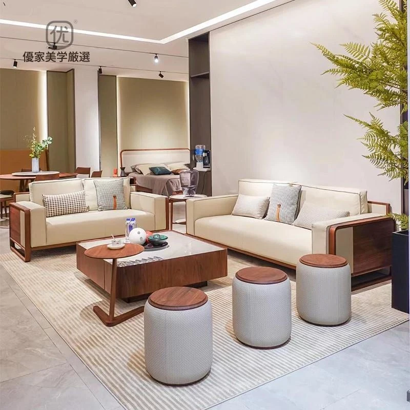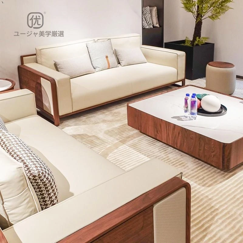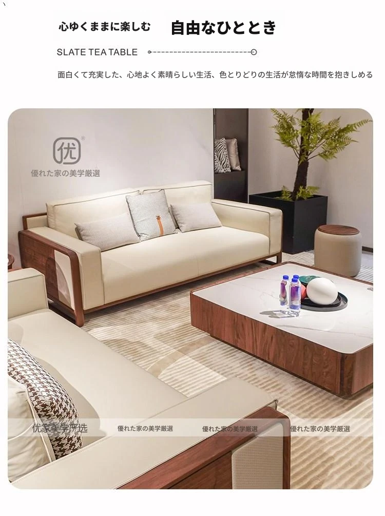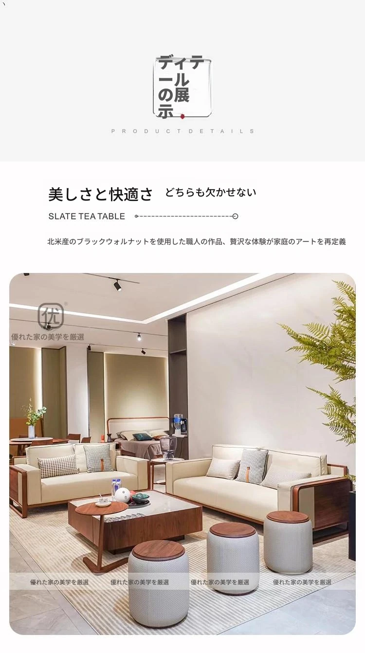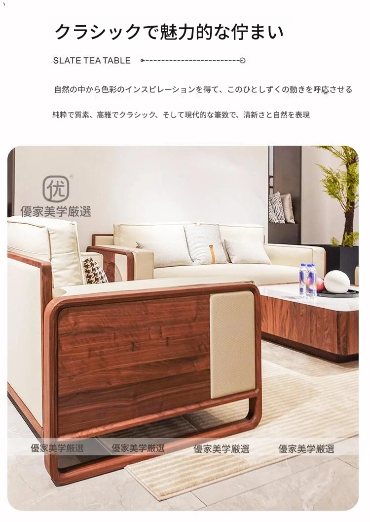 2025年新登场!新中式北美黒胡桃木製リビングソファ&コーヒーテーブルセット - あなたのリビングに洗練された美しさを!高品質な無垢材で、贅沢なひとときを演出。