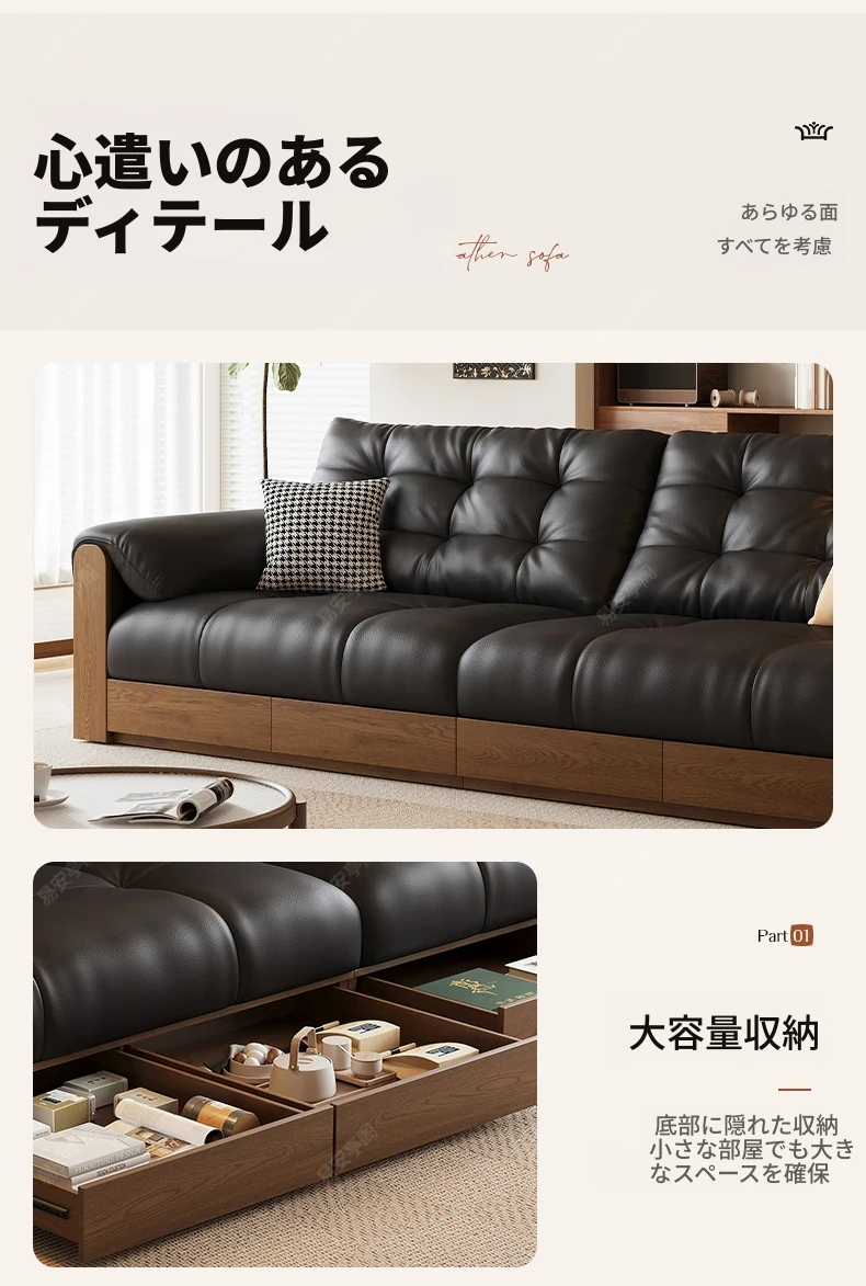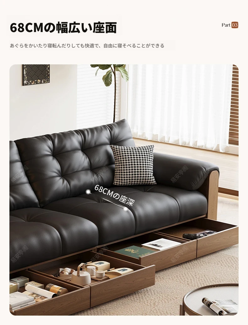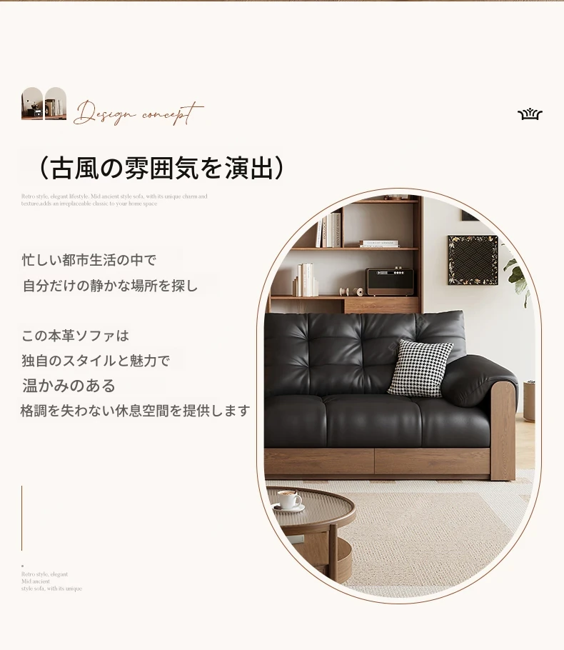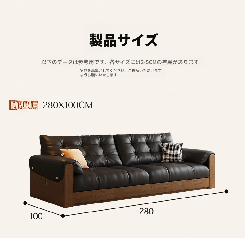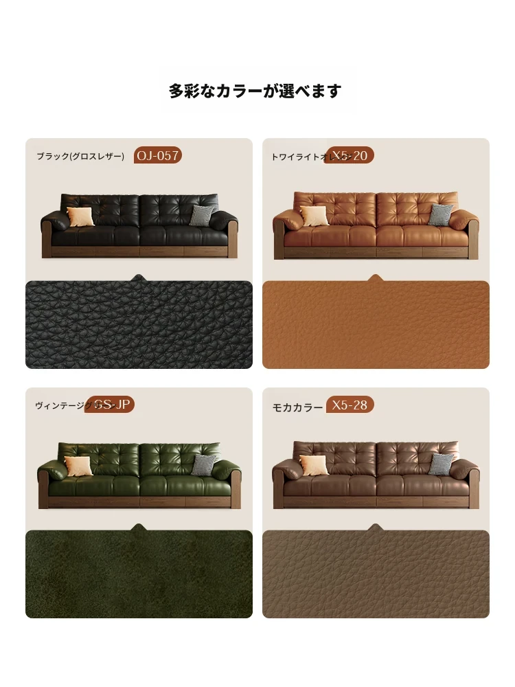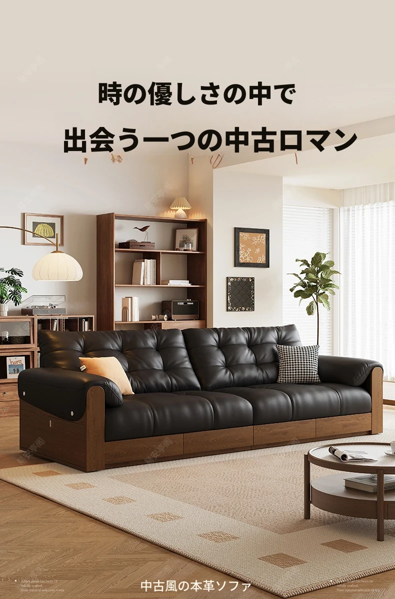 2025年新作!レトロな本革ソファ 三人掛け 中古風リビング用 無垢材ソファ ブラックカラーの洗練されたデザインで、あなたのリビングをスタイリッシュに演出します!