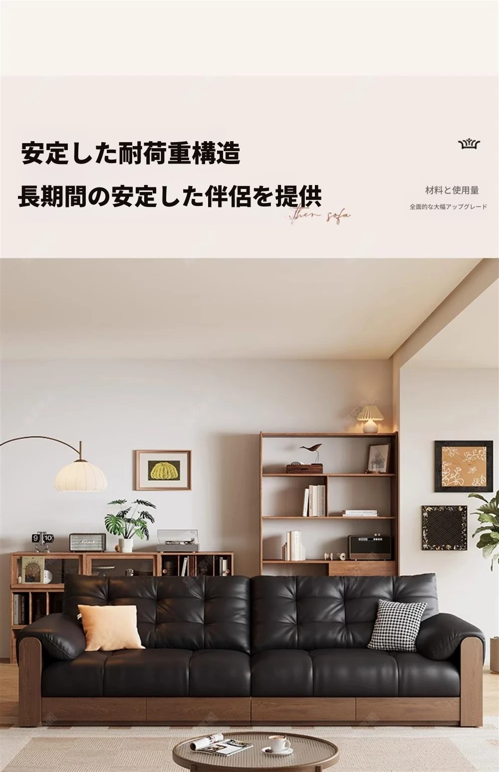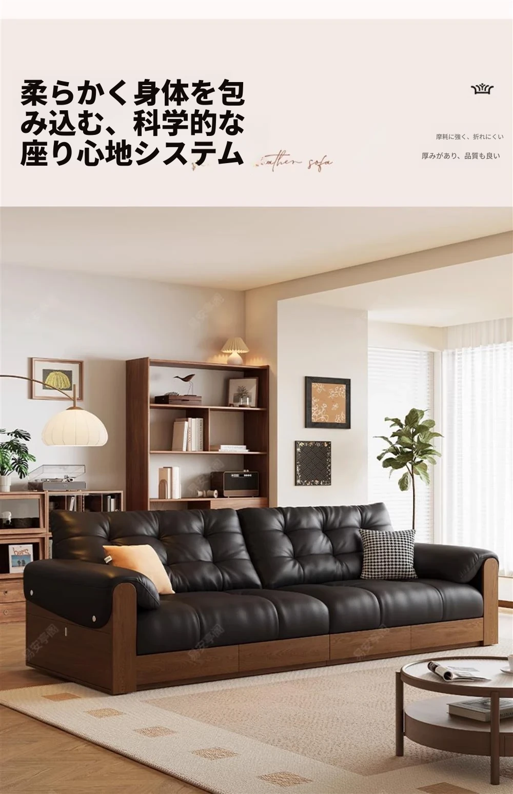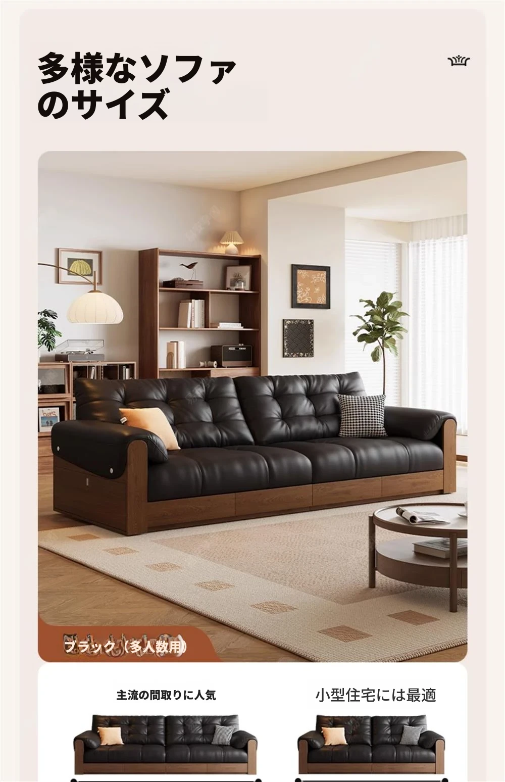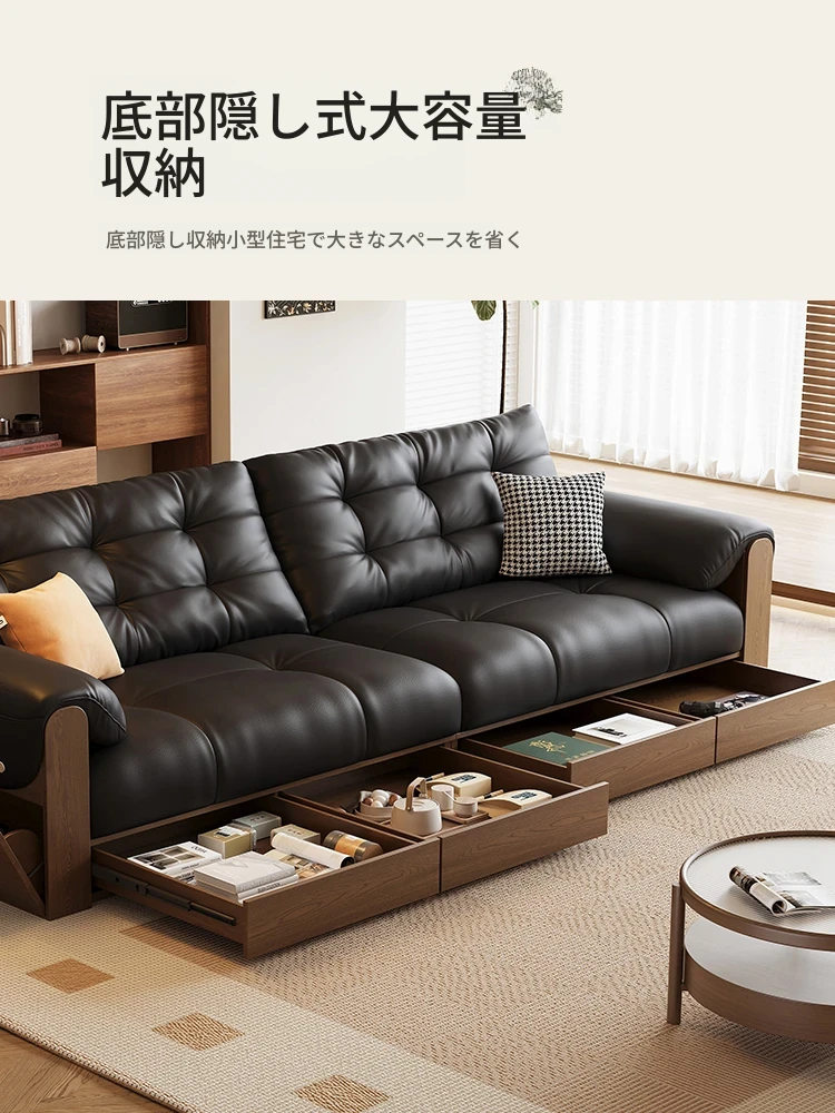 2025年新作!レトロな本革ソファ 三人掛け 中古風リビング用 無垢材ソファ ブラックカラーの洗練されたデザインで、あなたのリビングをスタイリッシュに演出します!