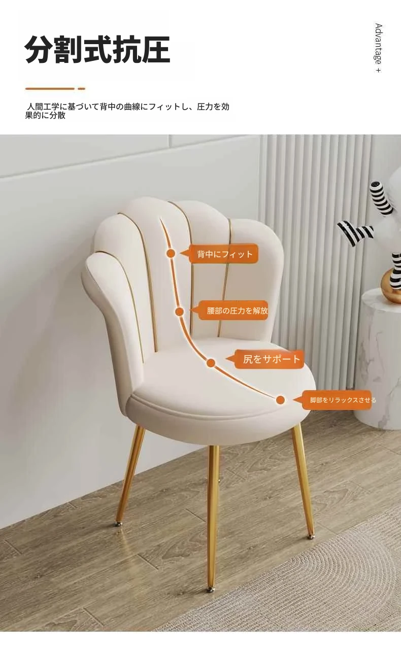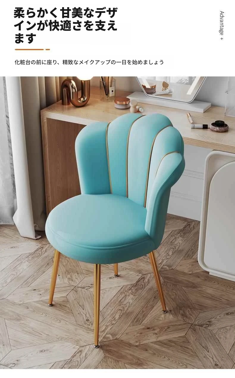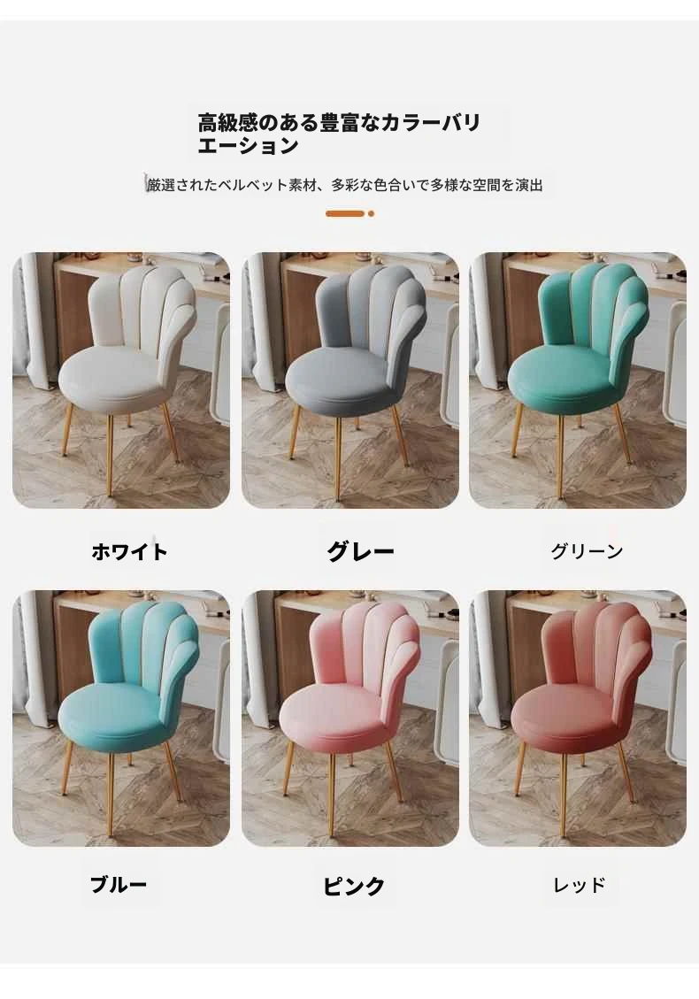 人気の化粧椅子!おしゃれな女性のための寝室用ドレッサー椅子。背もたれ付きで快適、シンプルで高級感あふれるデザイン。ネイルアートにも最適な花びら型の椅子です。あなたの美の空間を格上げします!