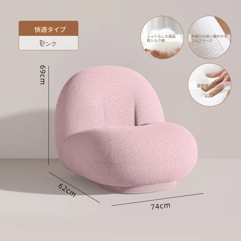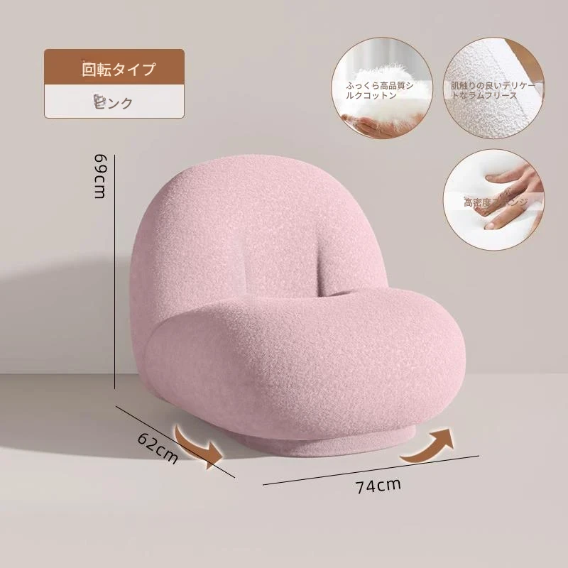 ピンク-【ラムフリース梨型チェアPLUS】【パチャ雲のようなリラックスソファ】【アップグレード回転】