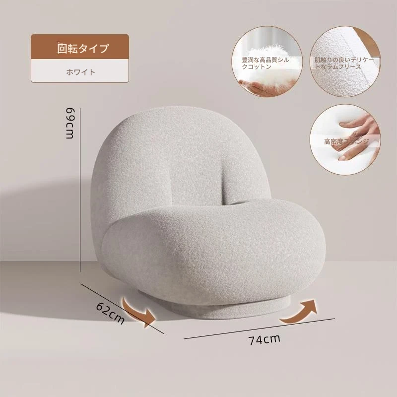 白色-【ラムフリース梨型チェアPLUS】【パチャ雲のようなリラックスソファ】【アップグレード回転】