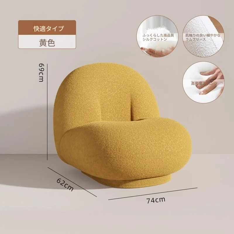 黄色-【ラムフリース梨型チェアPLUS】【パチャ雲のようなリラックスソファ】【アップグレード回転】