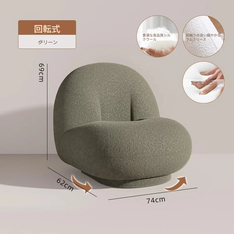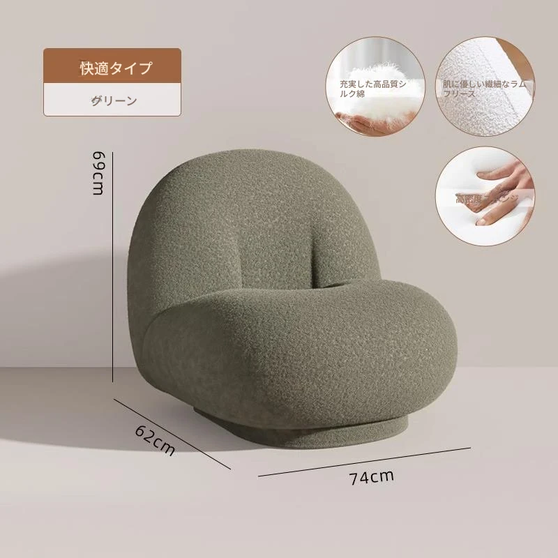 緑-【ラムフリース梨型チェアPLUS】【パチャ雲のようなリラックスソファ】【アップグレード回転】
