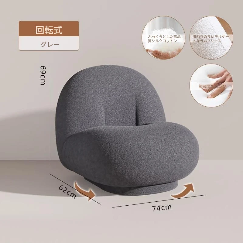 灰色-【ラムフリース梨型チェアPLUS】【パチャ雲のようなリラックスソファ】【アップグレード回転】