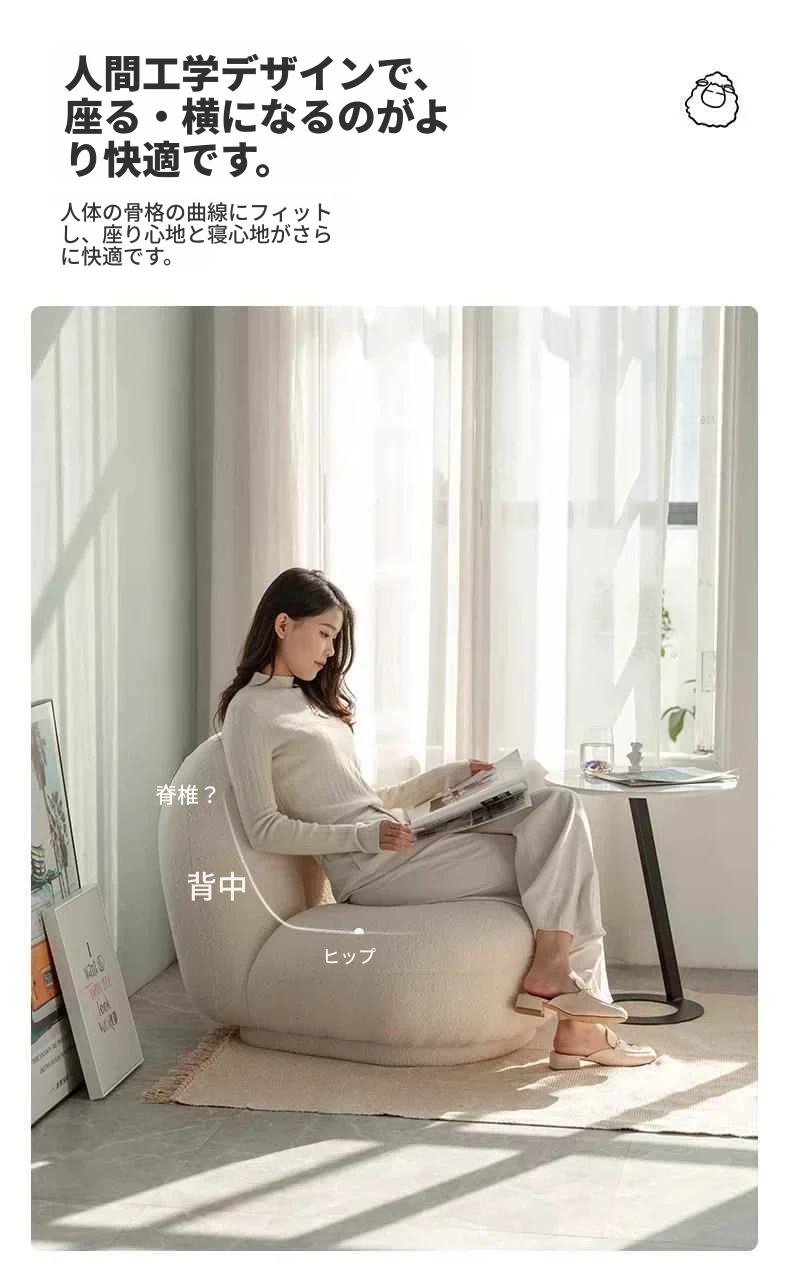 ふわふわ雲のようなリラックスソファ!一人用スノーピーチチェア、インスタで話題のタタミスタイル、リビング・寝室・バルコニーにぴったりの可愛い白いソファ!あなたのくつろぎ空間を演出します。