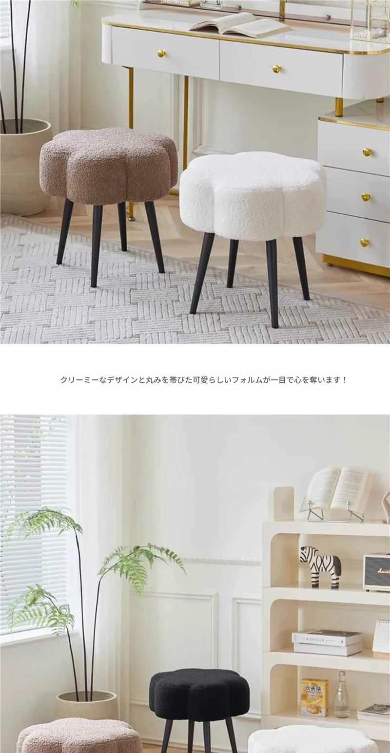 雲のような化粧台スツール 小サイズ 主寝室用 家庭用ドレッサーチェア 軽やかなラグジュアリー 高級クリーム風 おしゃれな靴置きにも最適!