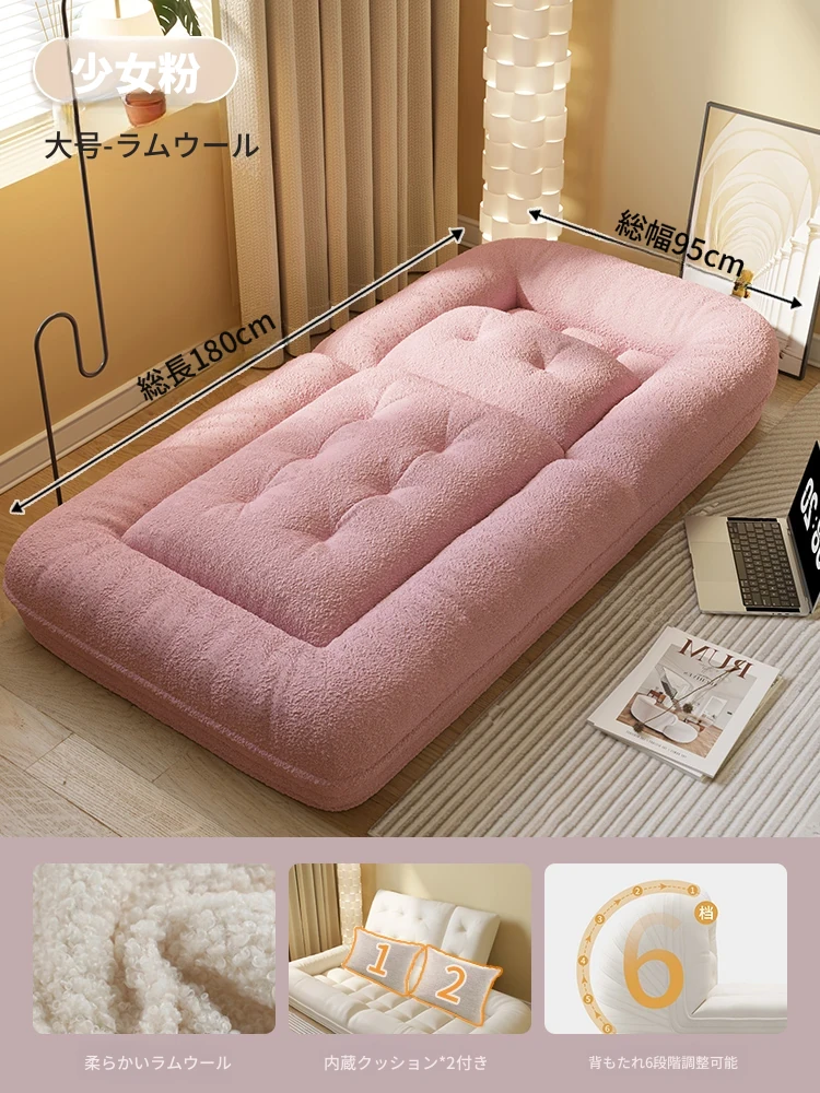 フラッグシップモデル⭐【展開180CM_95CM】柔らかいラムフリース-ピンク(背もたれ+クッション付き)