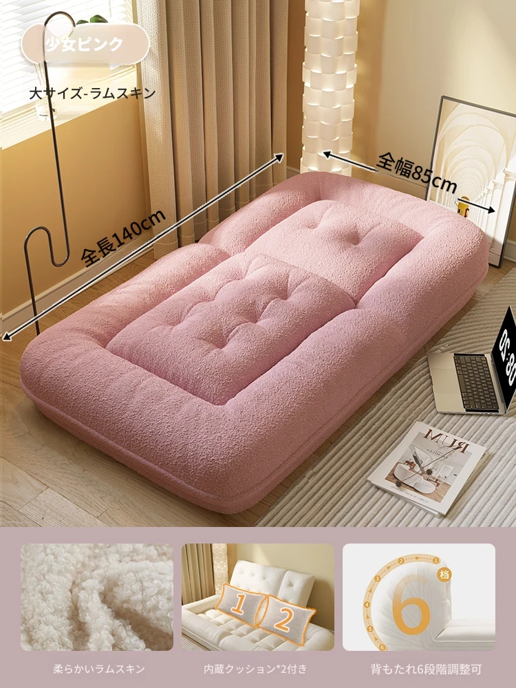 加長中号【展開140CM_90CM】柔らかいラムフリース-ピンク(背もたれ+クッション付き)