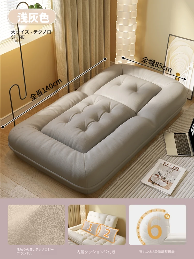 加長中号【展開140CM_90CM】アップグレードテクノロジー布フリース-グレー(背もたれ+クッション付き)