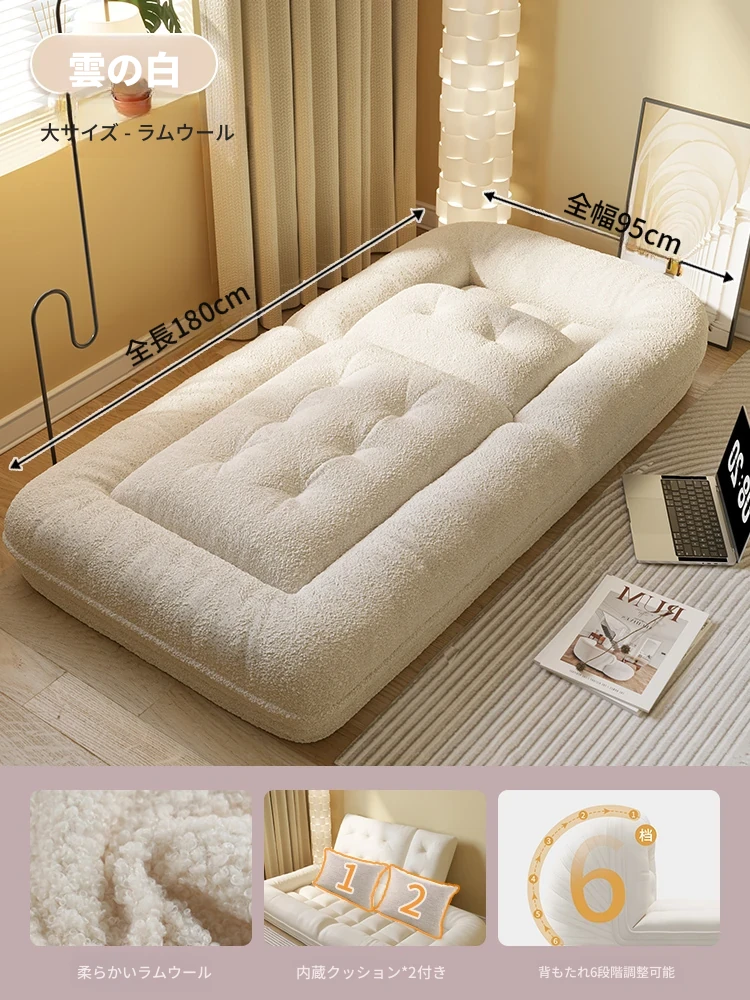 フラッグシップモデル⭐【展開180CM_95CM】アップグレードテクノロジー布フリース-ホワイト(背もたれ+クッション付き)