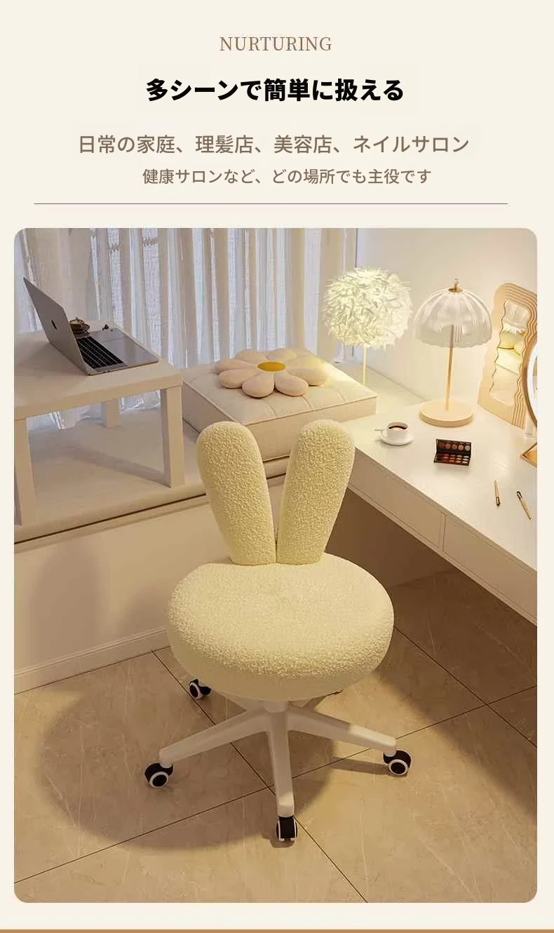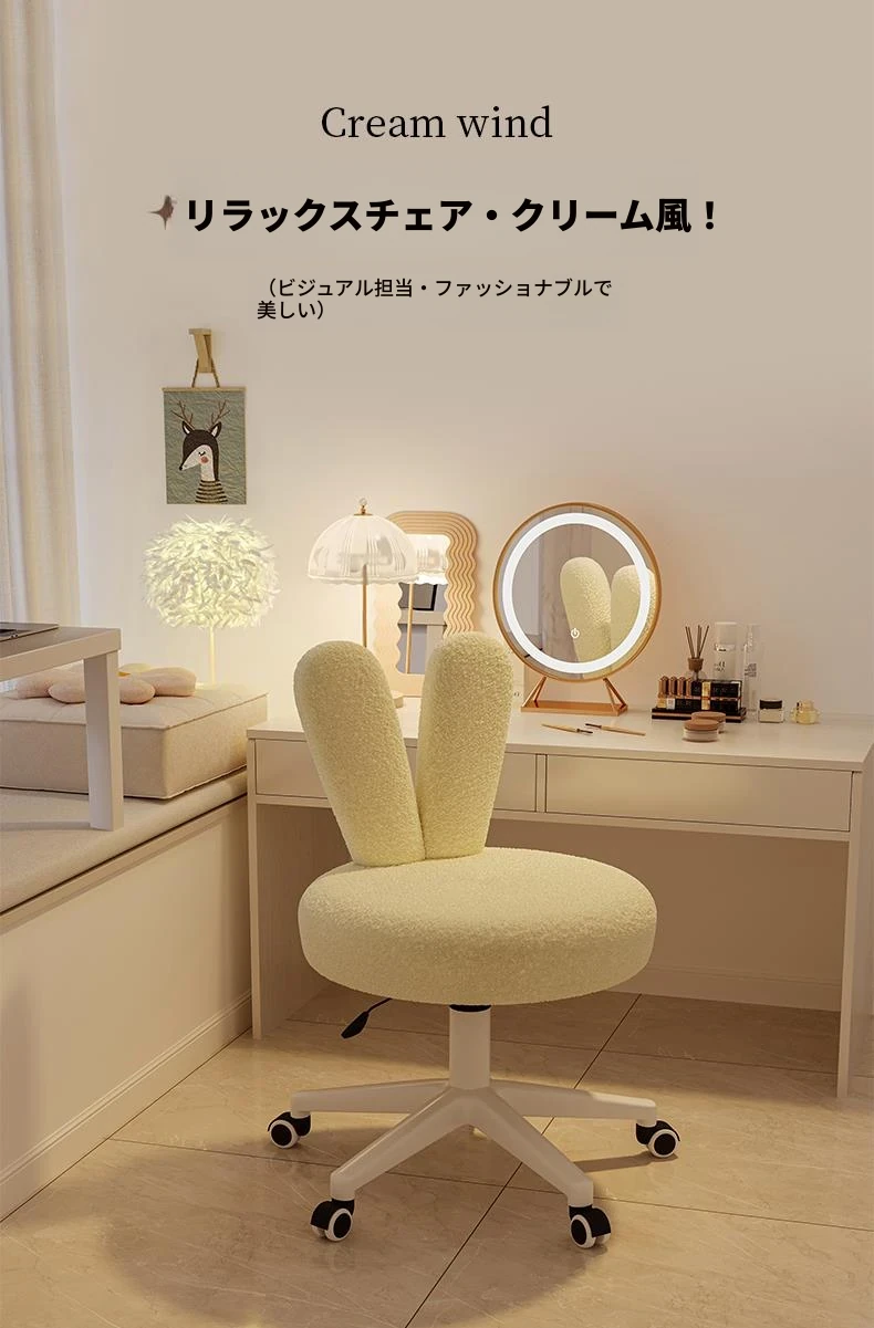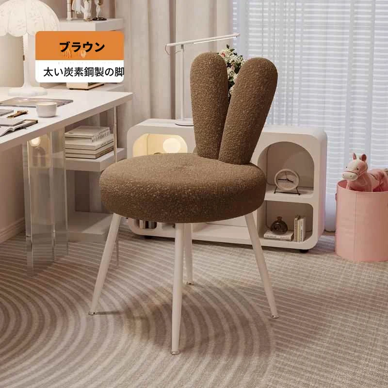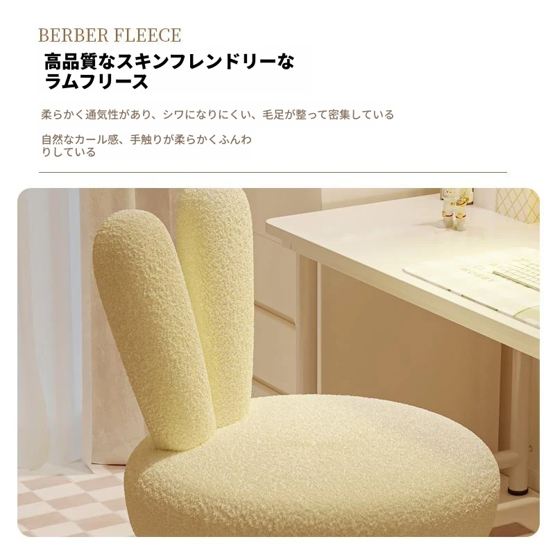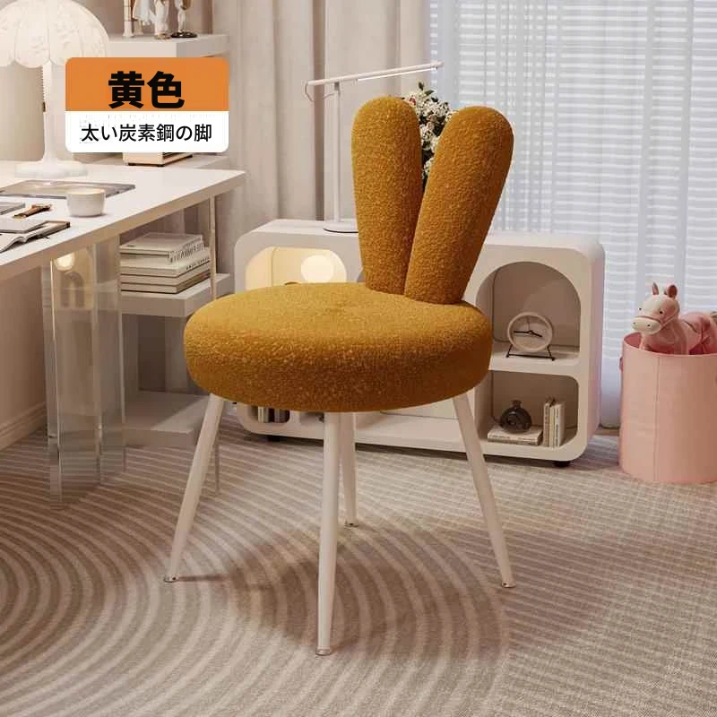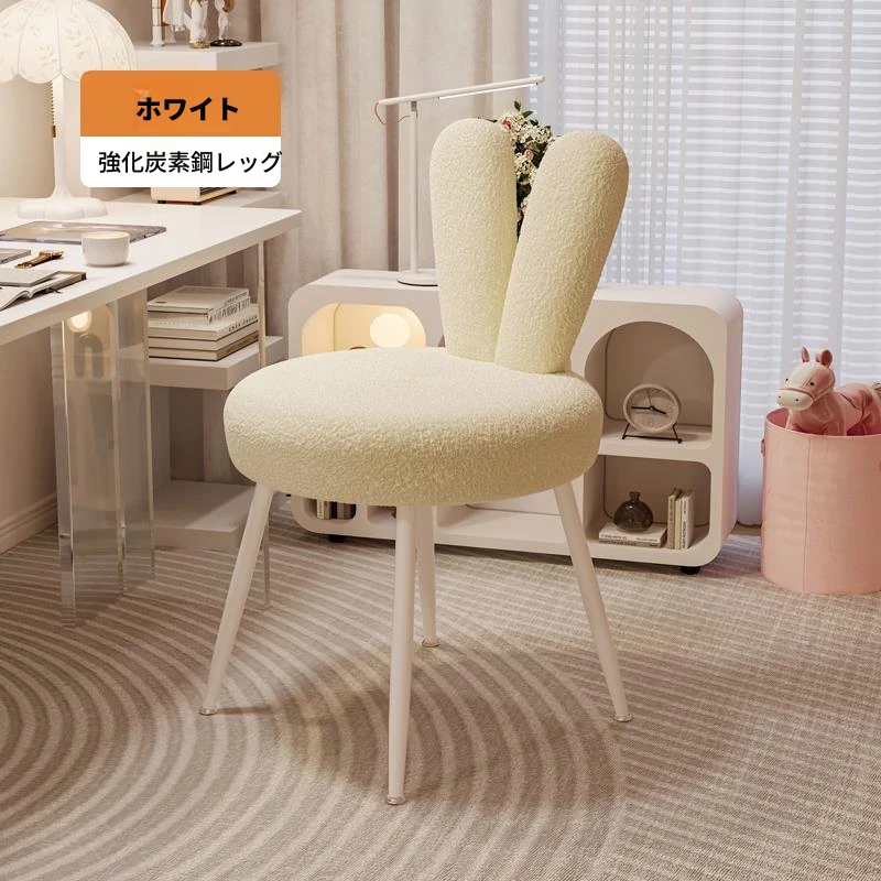 クリームカラーの化粧台椅子 - 女の子の寝室にぴったりな背もたれ付き、軽やかで高級感あふれるデザイン。インスタ映えする美甲ウサギ椅子で、特別なひとときを演出します!