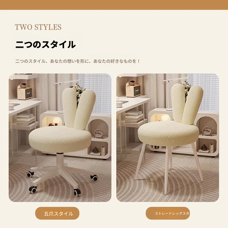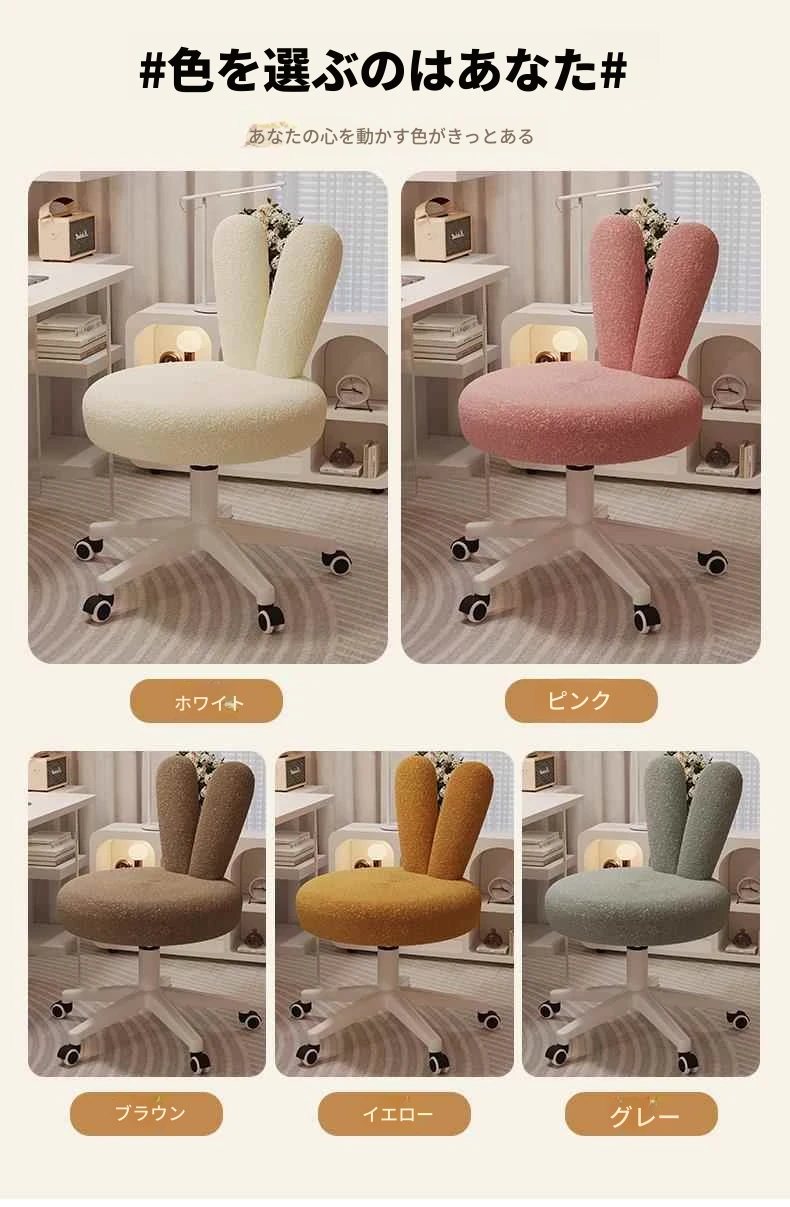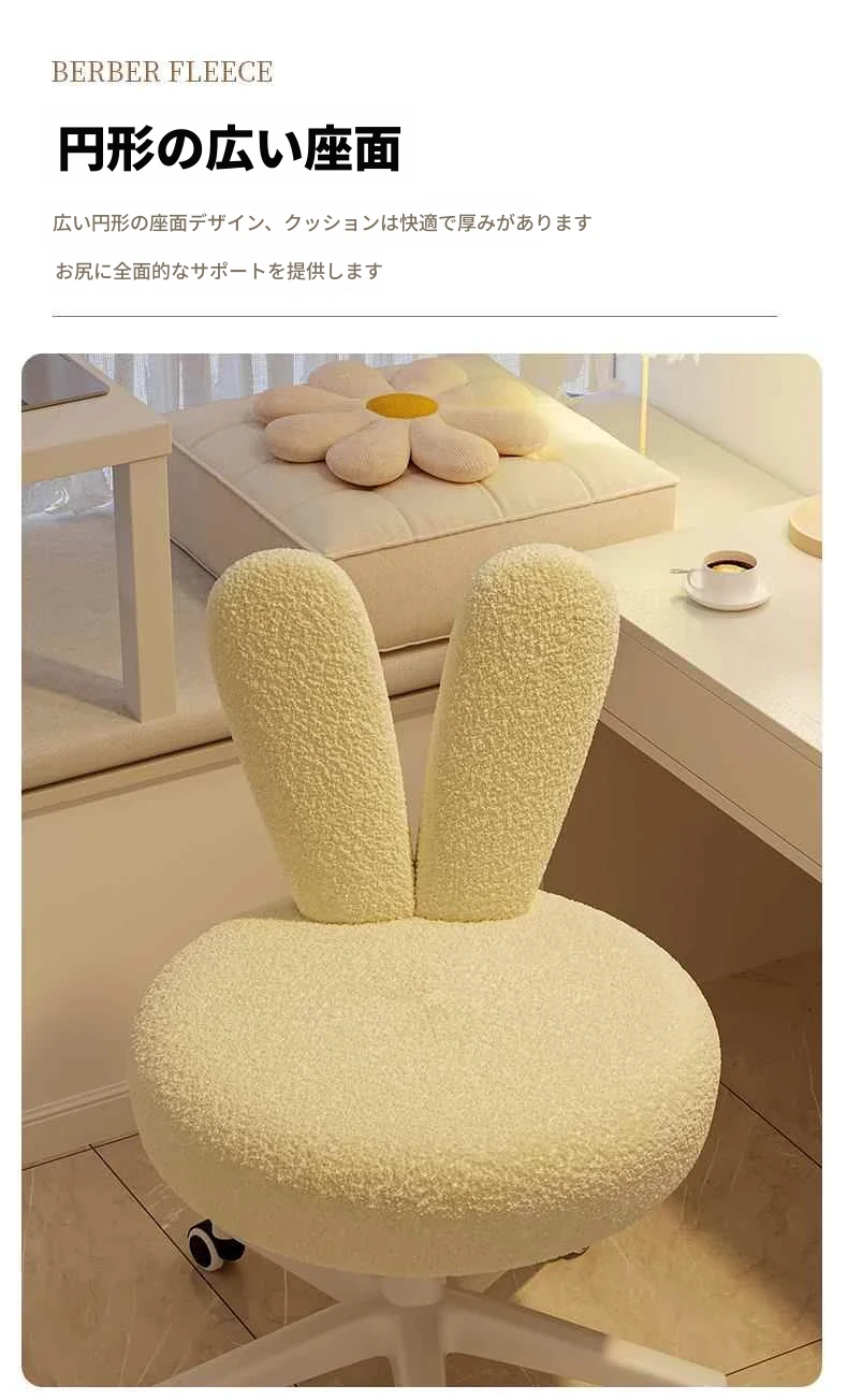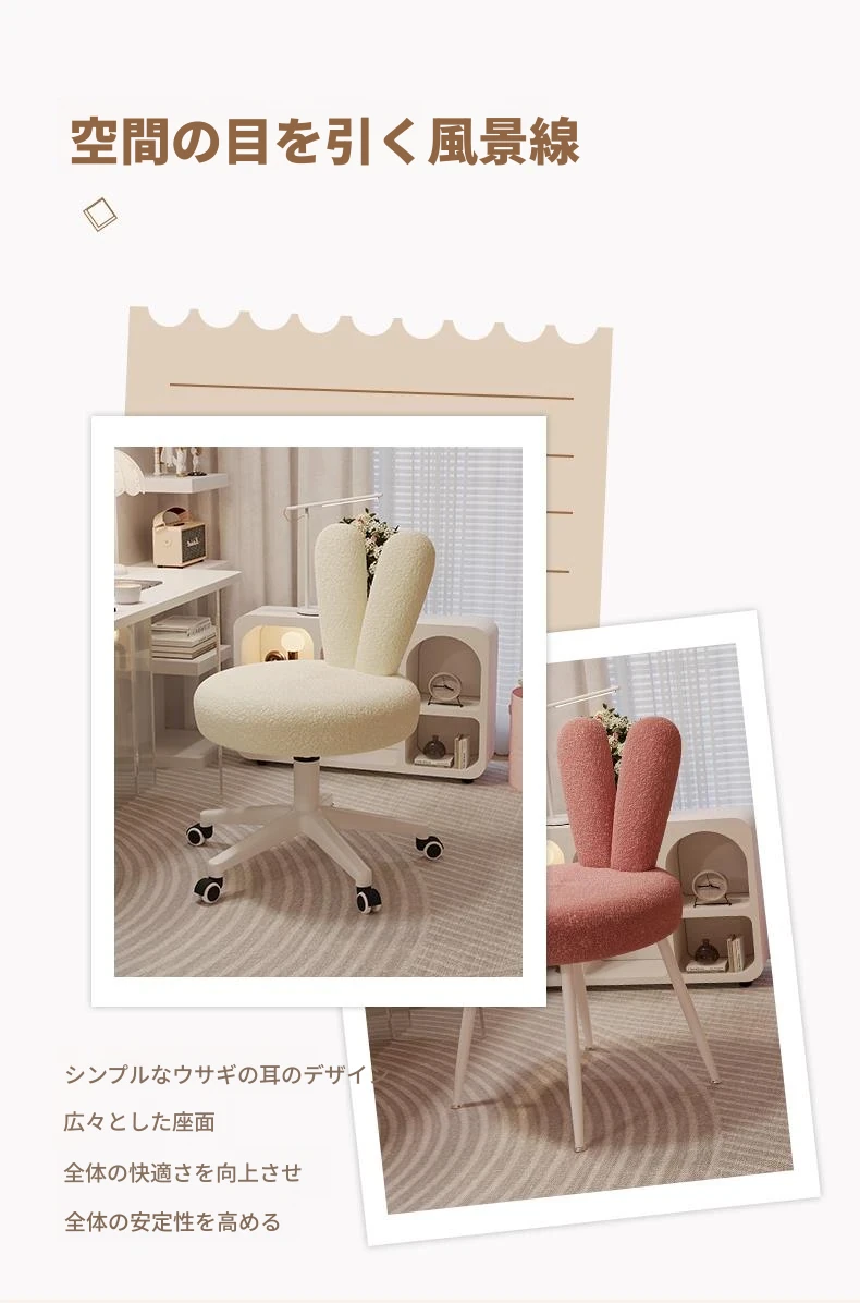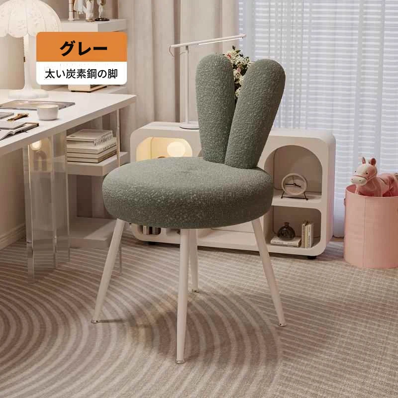 クリームカラーの化粧台椅子 - 女の子の寝室にぴったりな背もたれ付き、軽やかで高級感あふれるデザイン。インスタ映えする美甲ウサギ椅子で、特別なひとときを演出します!