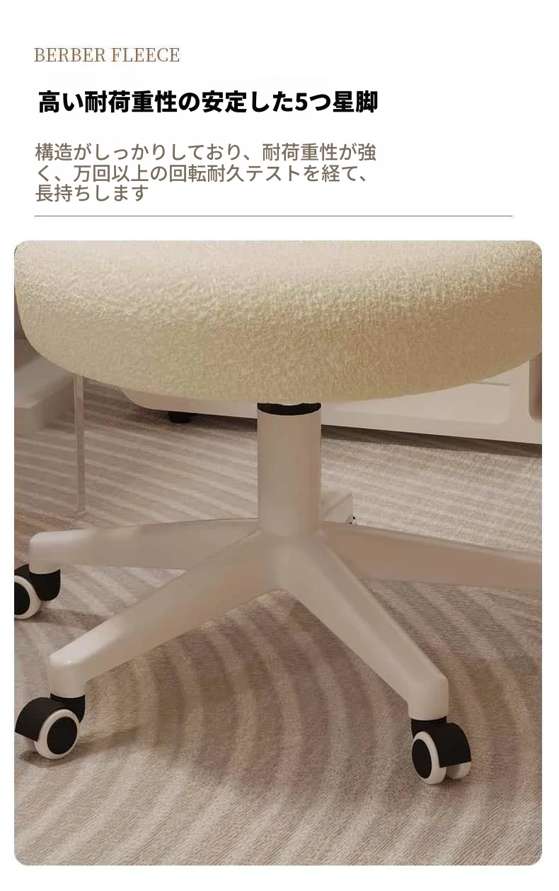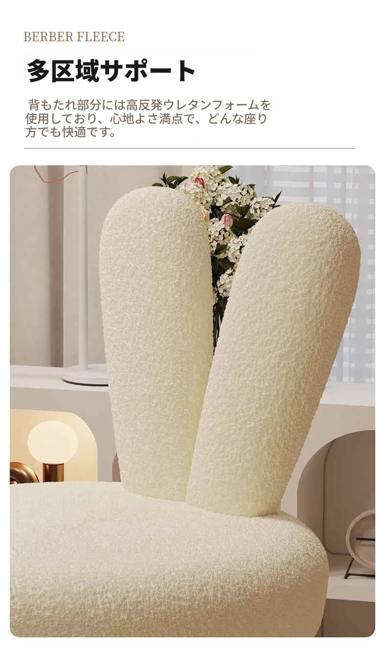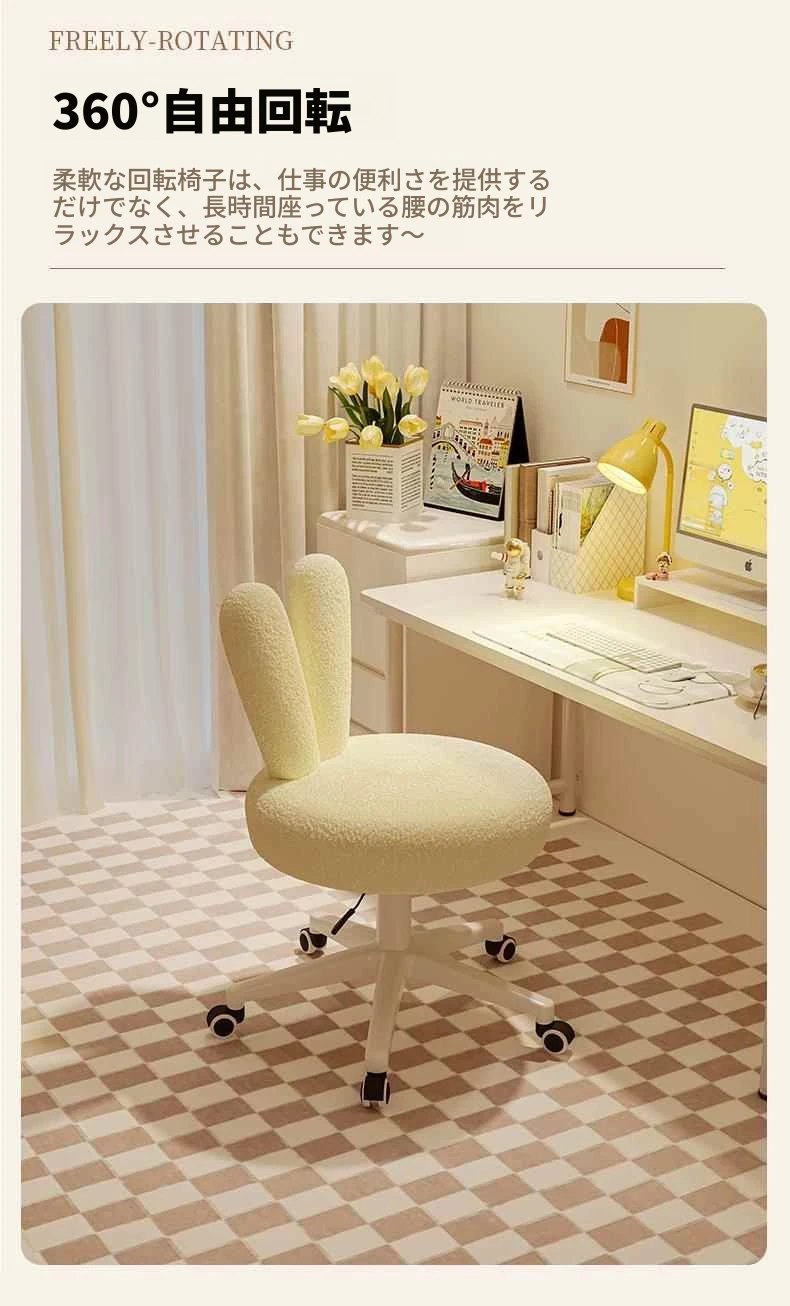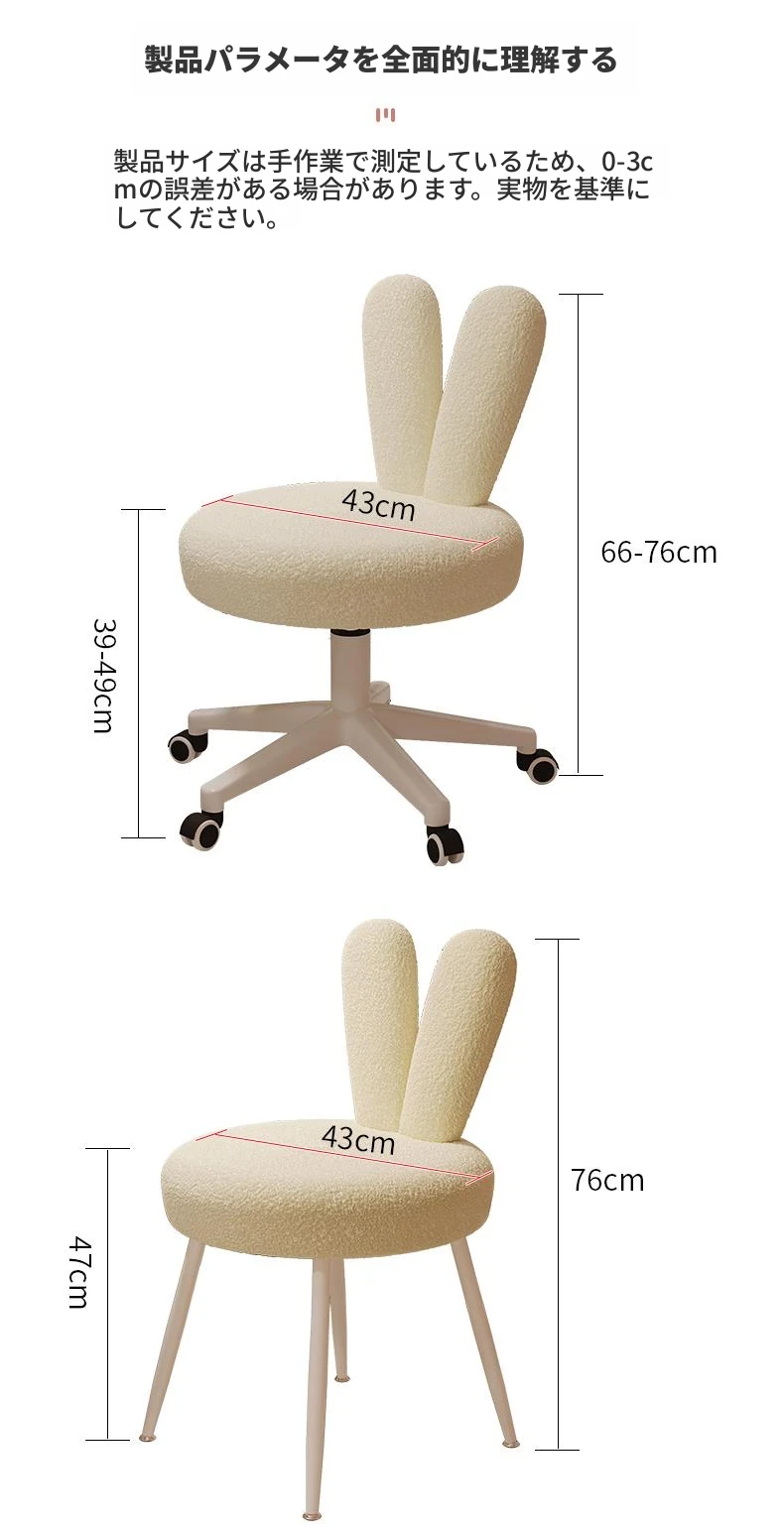 クリームカラーの化粧台椅子 - 女の子の寝室にぴったりな背もたれ付き、軽やかで高級感あふれるデザイン。インスタ映えする美甲ウサギ椅子で、特別なひとときを演出します!