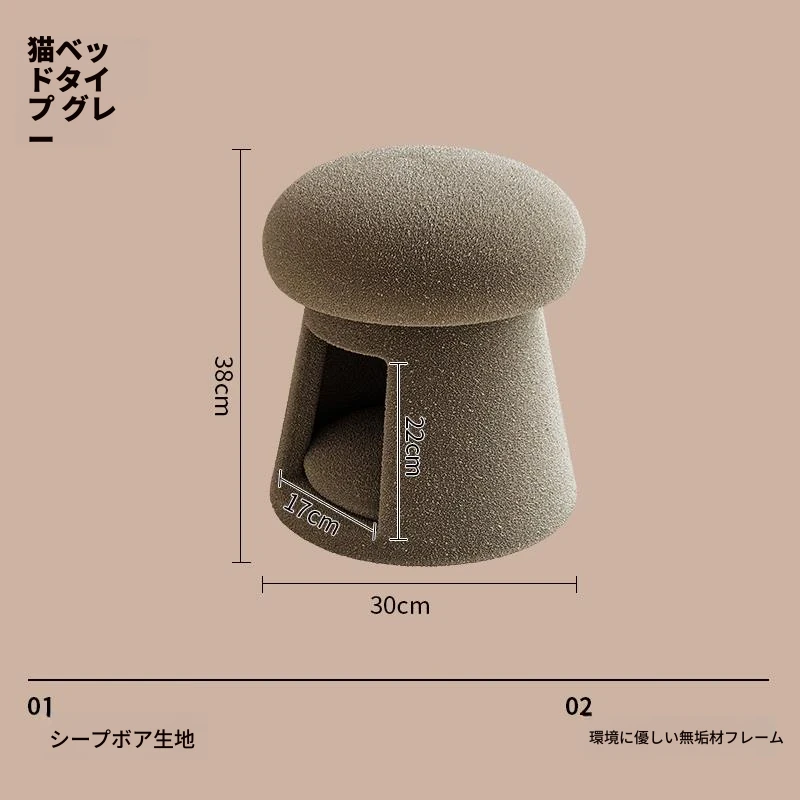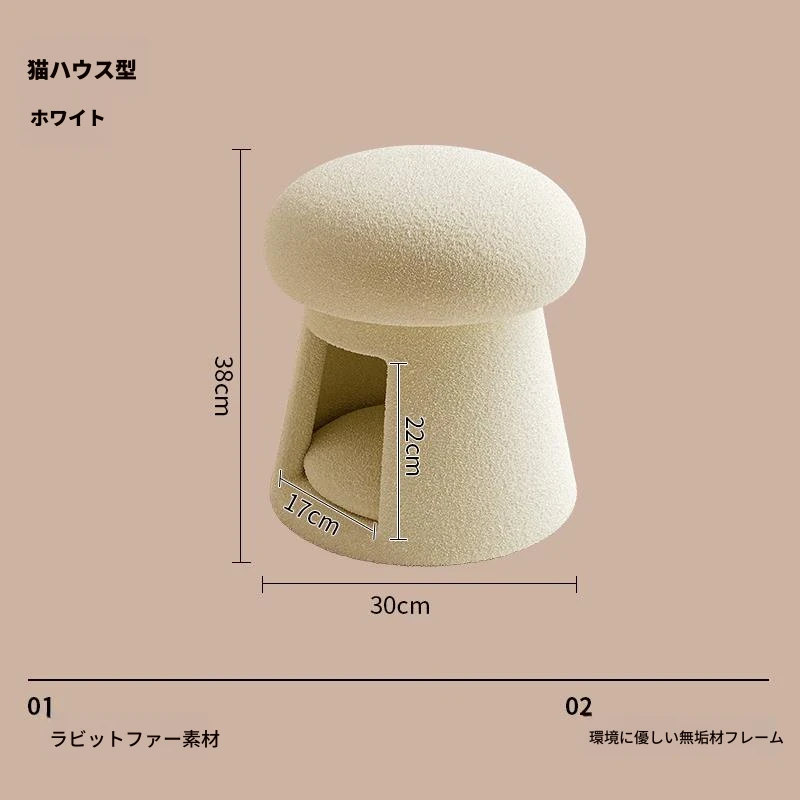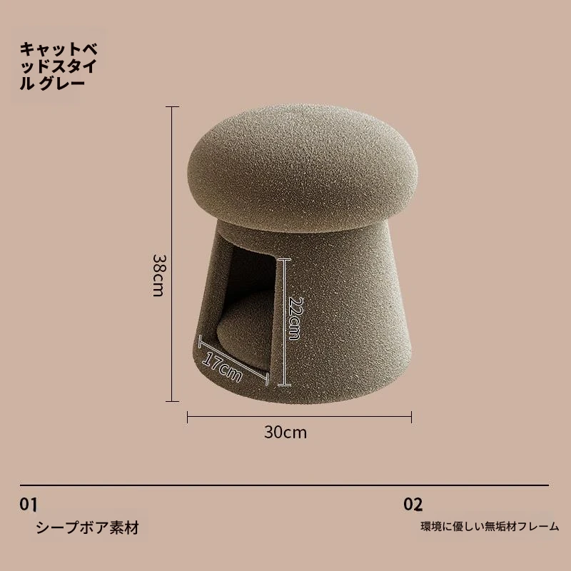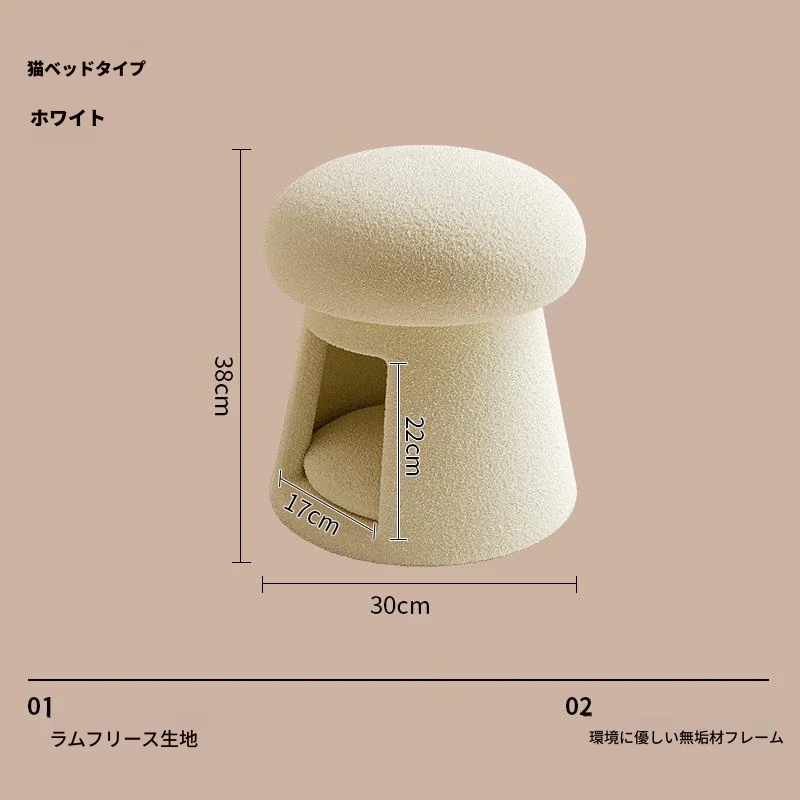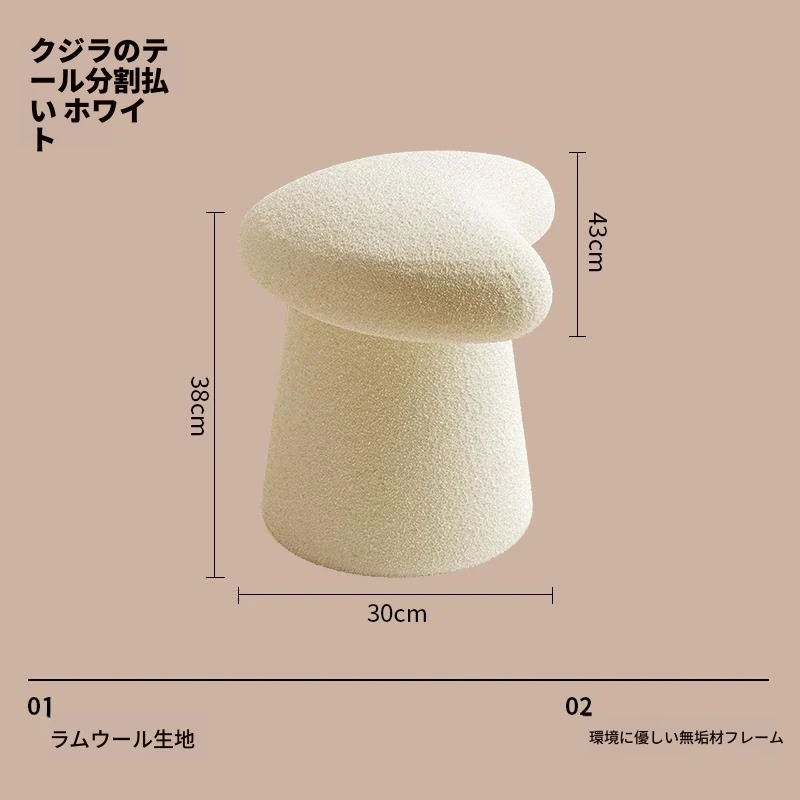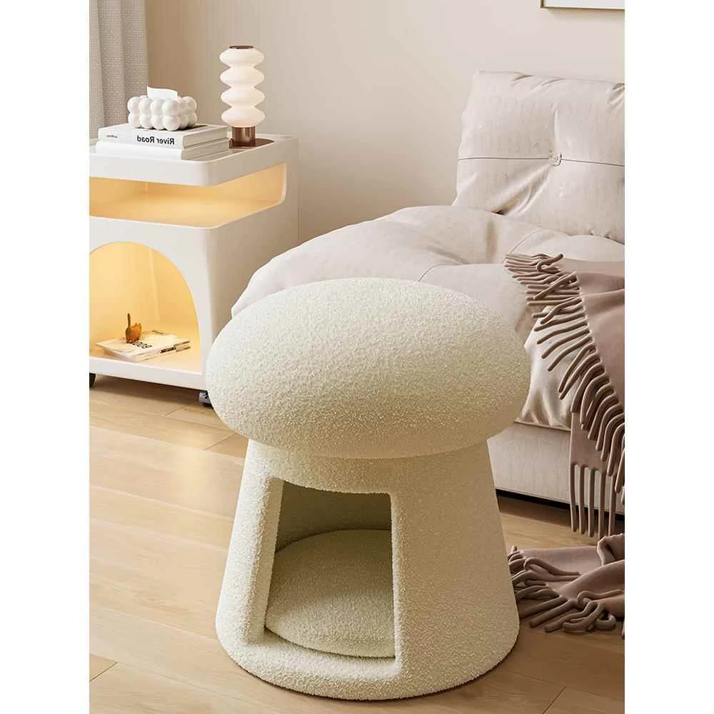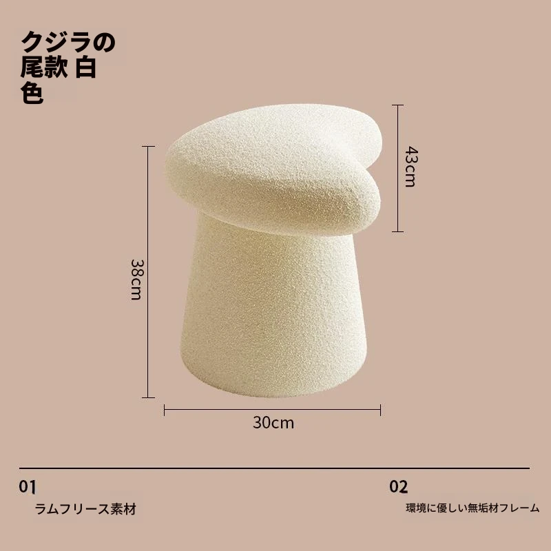 クリーム色の風合いが魅力的な高級メイクアップチェア|主寝室・クローゼットにぴったり!おしゃれ女子におすすめのマッシュルーム型ラウンドスツール|トレンド感満載のアイテムです!